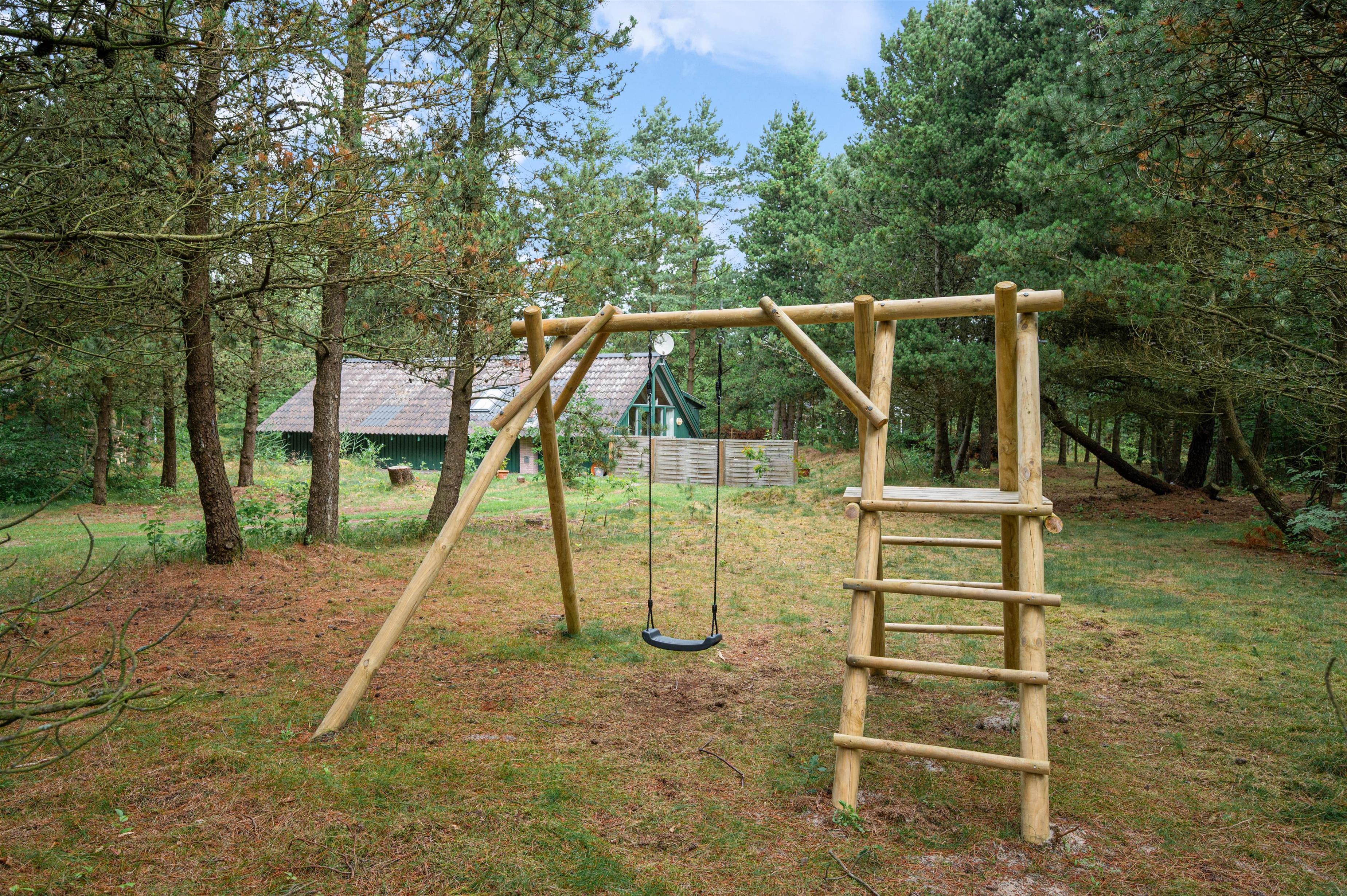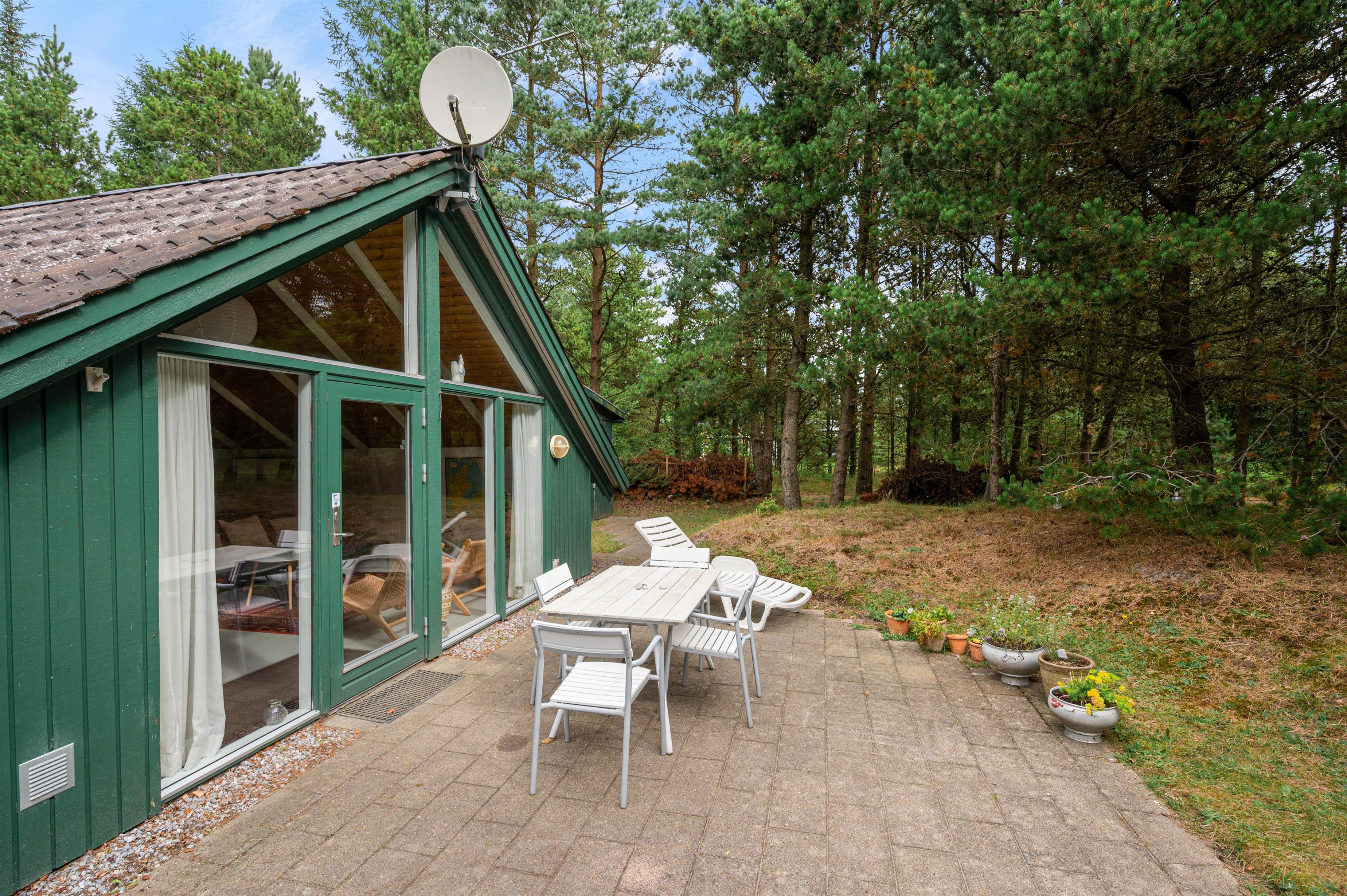 Feriehuset ligger kun 3 km fra det fascinerende Vesterhav og tæt på Nyminde Plantage. Her er alle muligheder for at nyde den vekslende natur med skov og klitlandskab, ligesom der flere steder er legepladser.