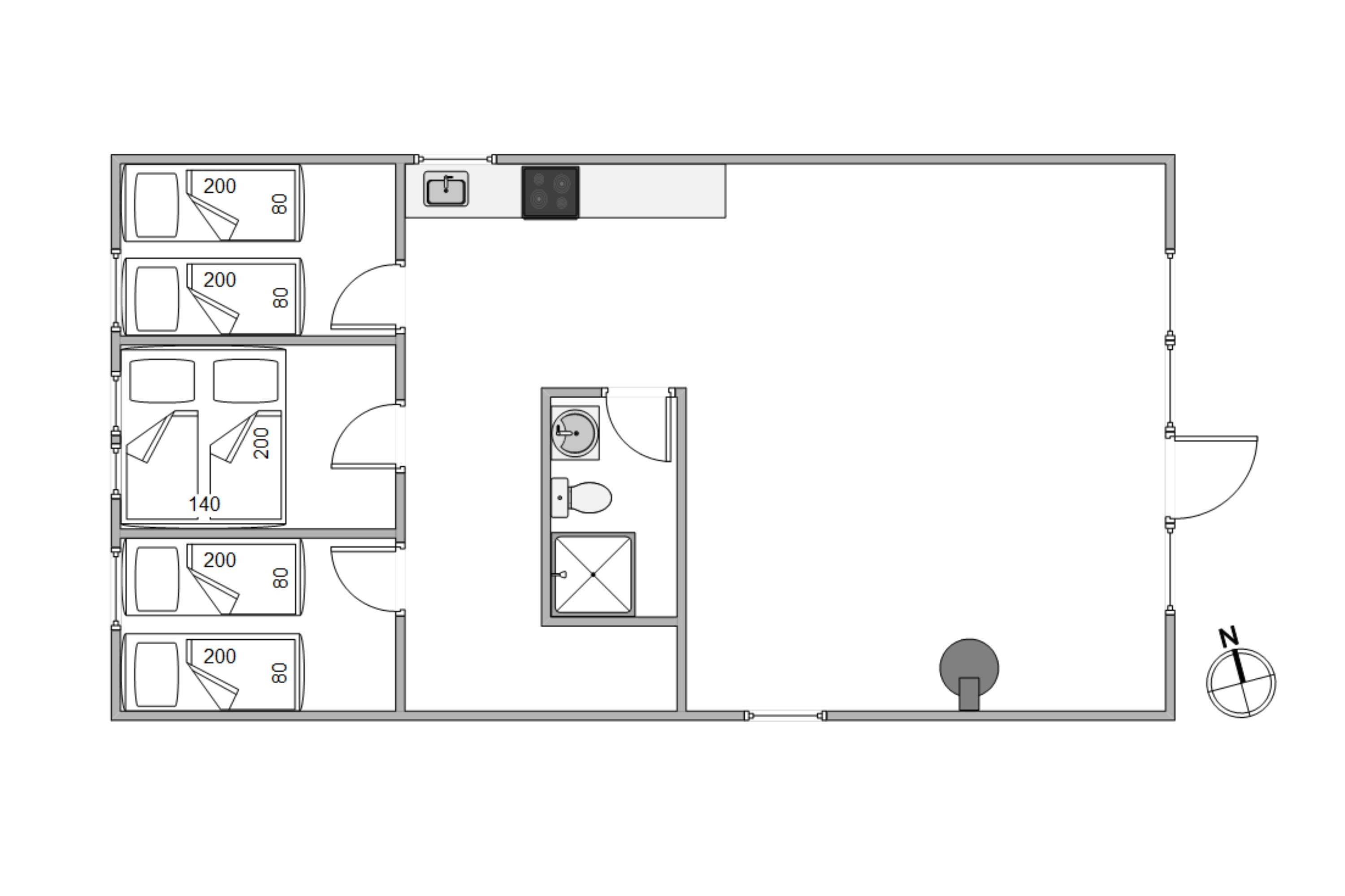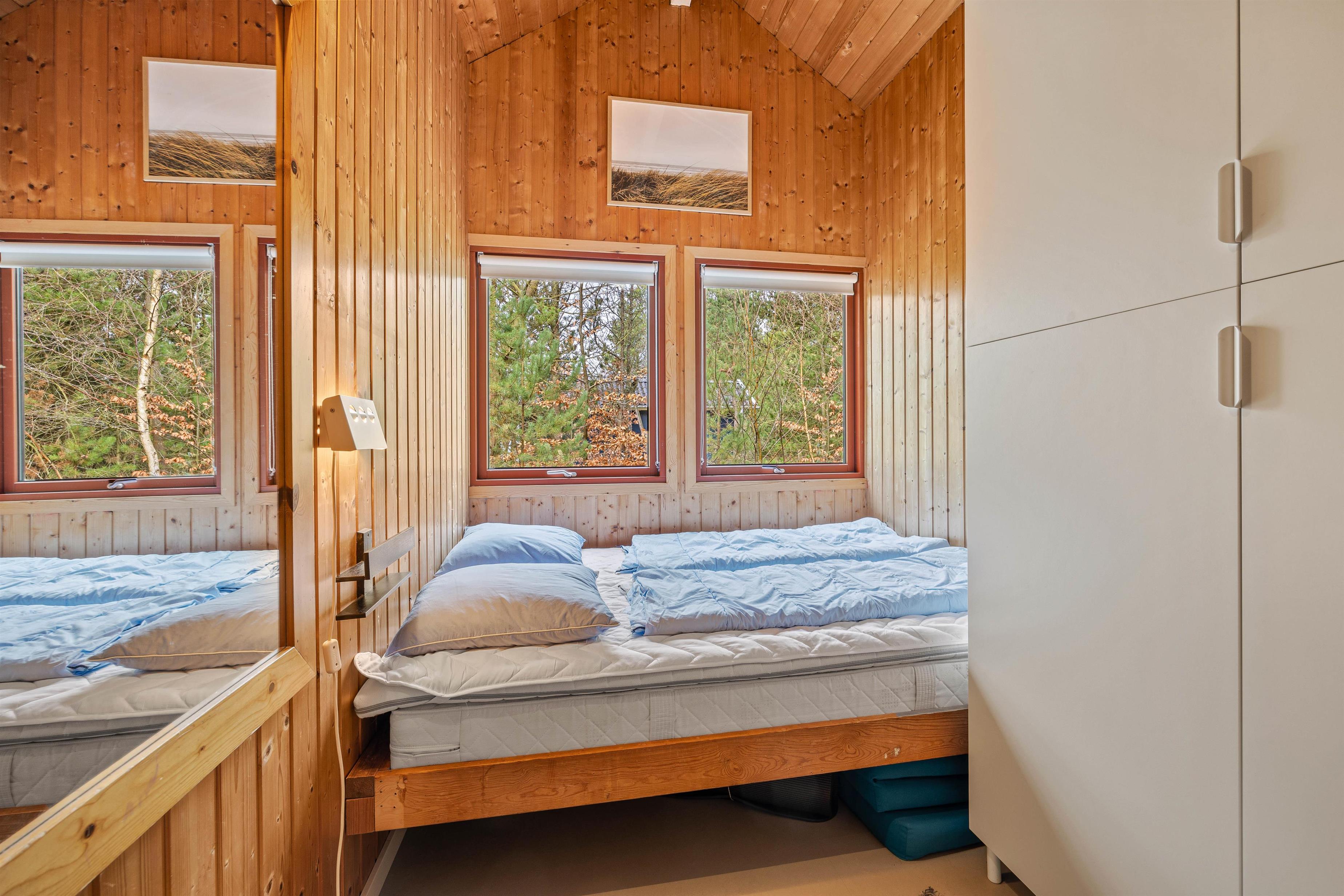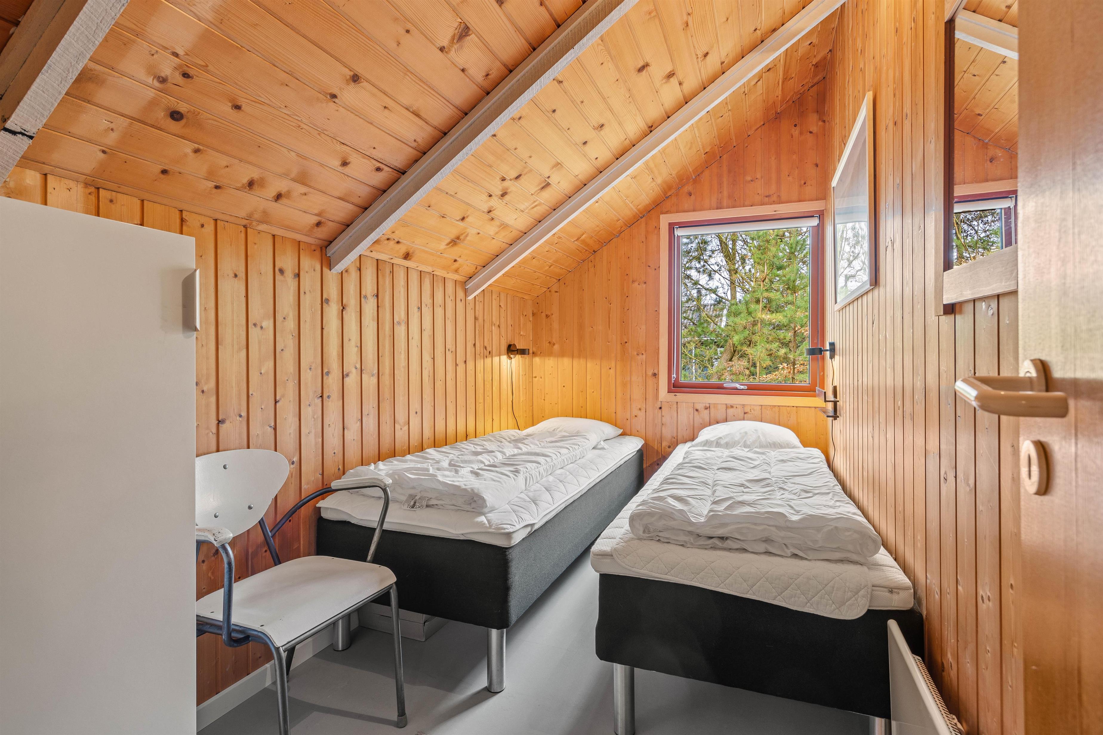 De 6 sovepladser fordeler sig på 3 soverum, 1 med dobbeltseng og 2 med 2 enkeltsenge. En vaskemaskine finder I også i sommerhuset, især praktisk for børnefamilier, der roligt kan lade børnene lege i naturen – tøjet kan bare vaskes.