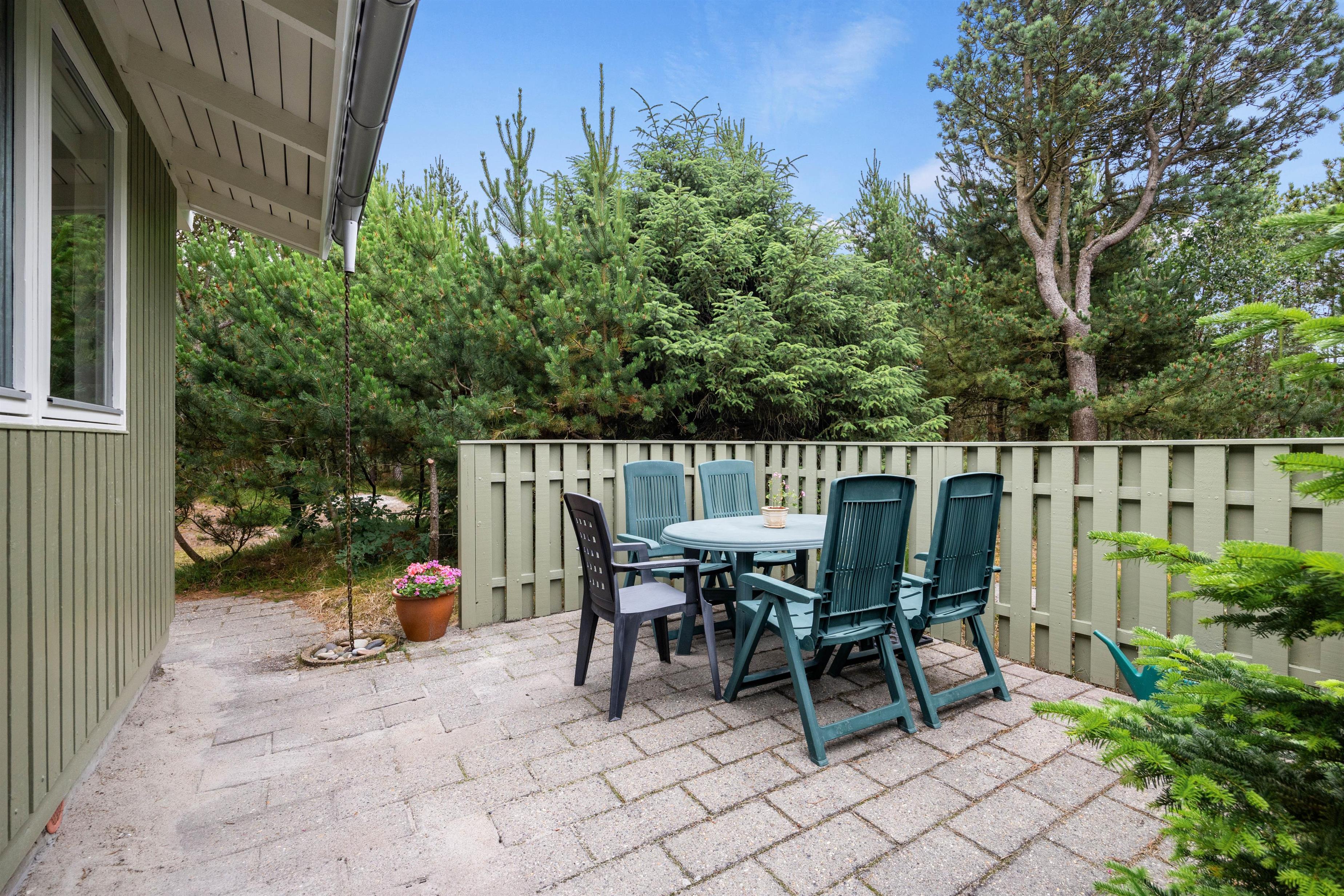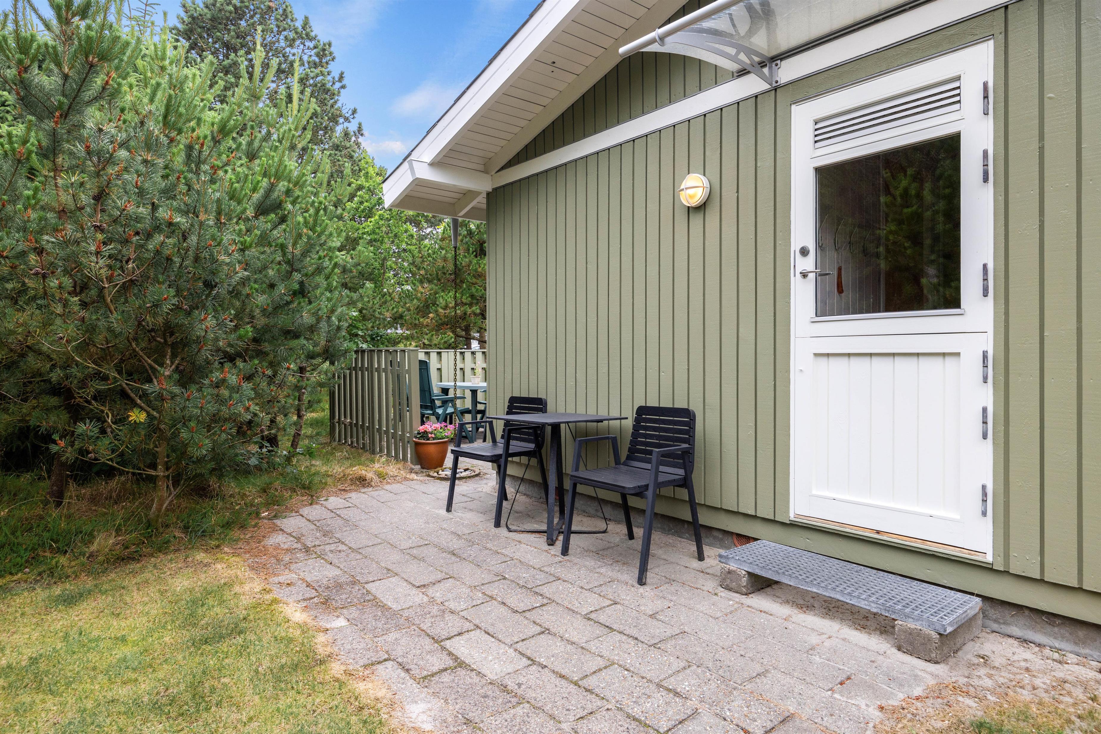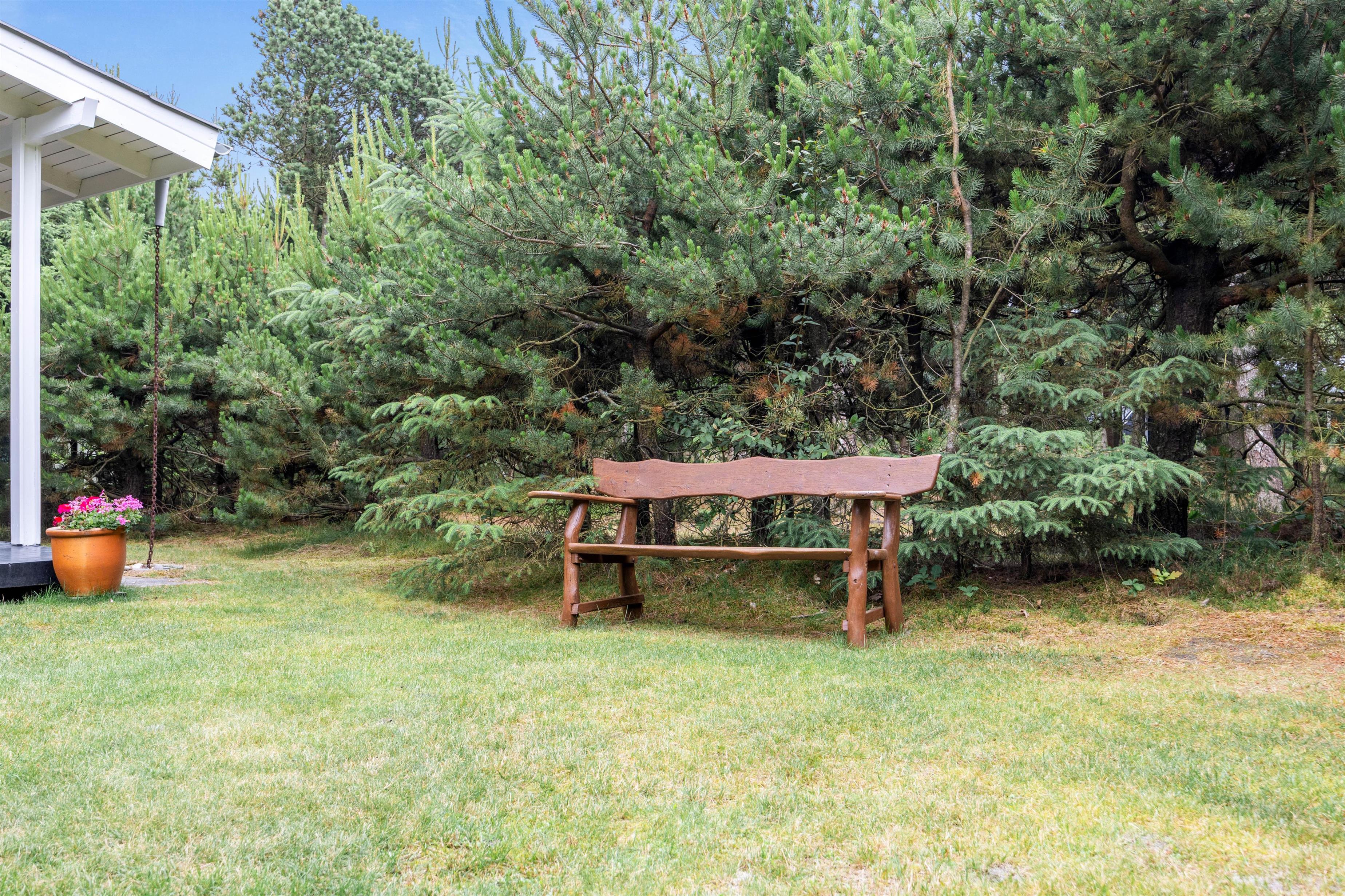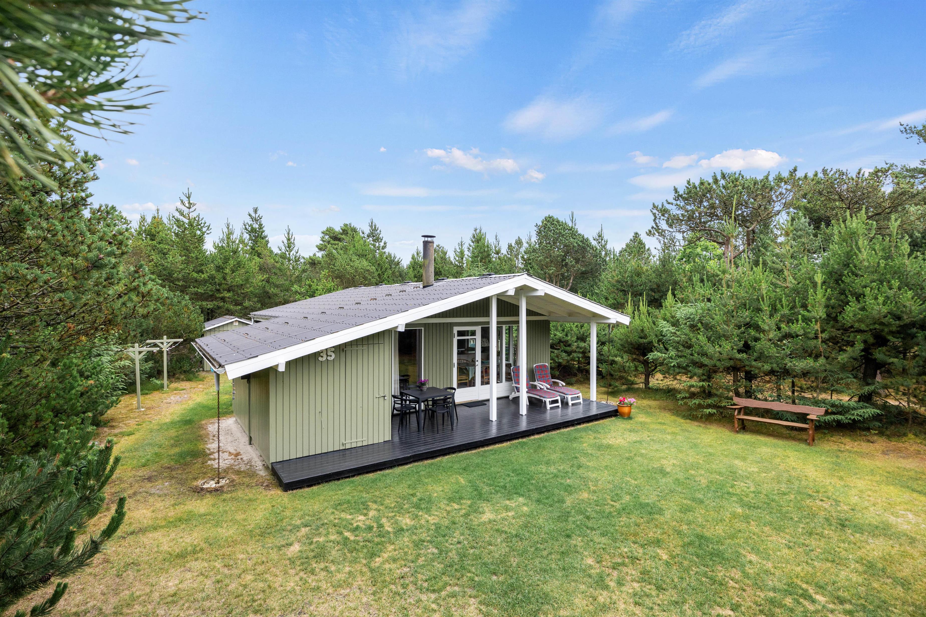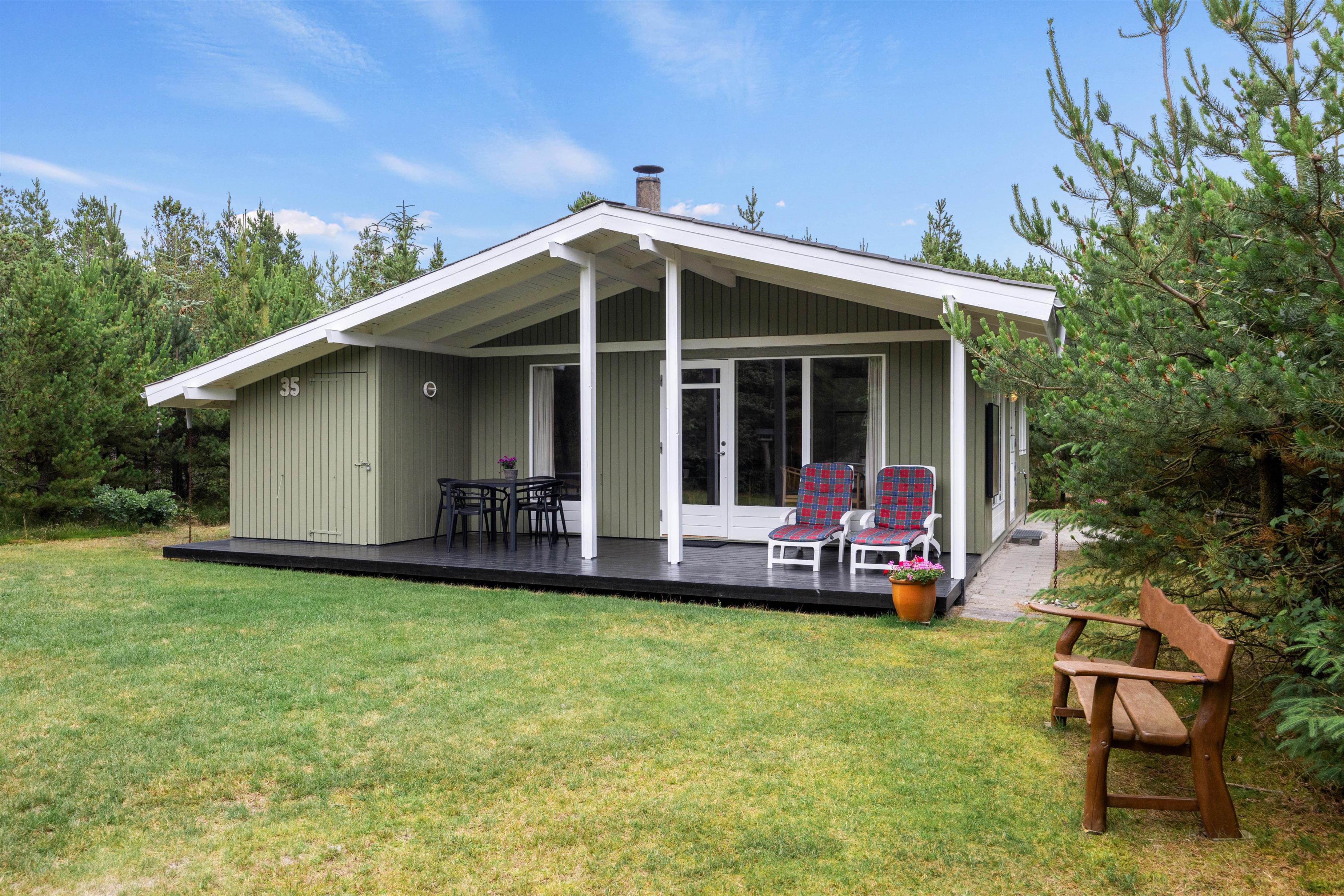 Så snart I kører op i indkørslen på Peder Larsensvej 35, vil I mærke, hvordan feriestemningen sænker sig over jer. De mange træer, der indkranser naturgrunden, giver jer masser af fred og ro, og her kan I helt ugeneret sole jer i havemøblerne eller spise en god frokost i solen.