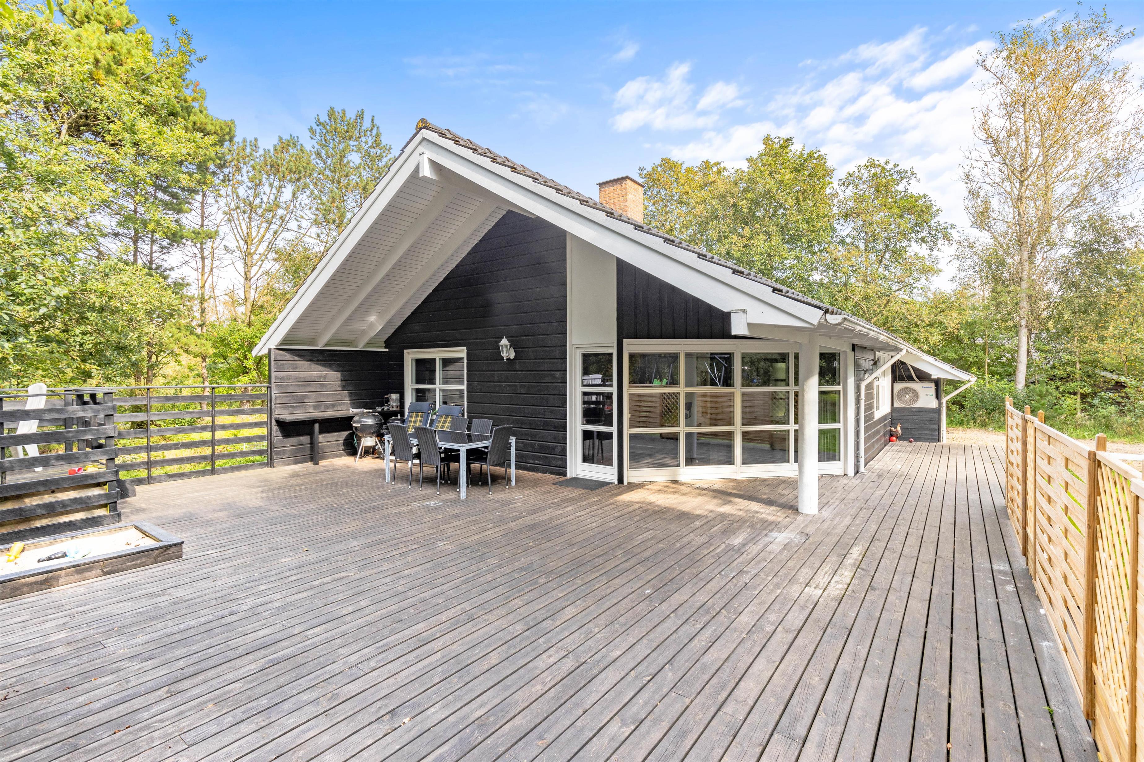 Sommerhuset er 119 kvadratmeter stort fordelt på to planer, så der er masser af plads til hele familien. Du er også velkommen til at tage en eller to hunde med i dette hundevenlige sommerhus.