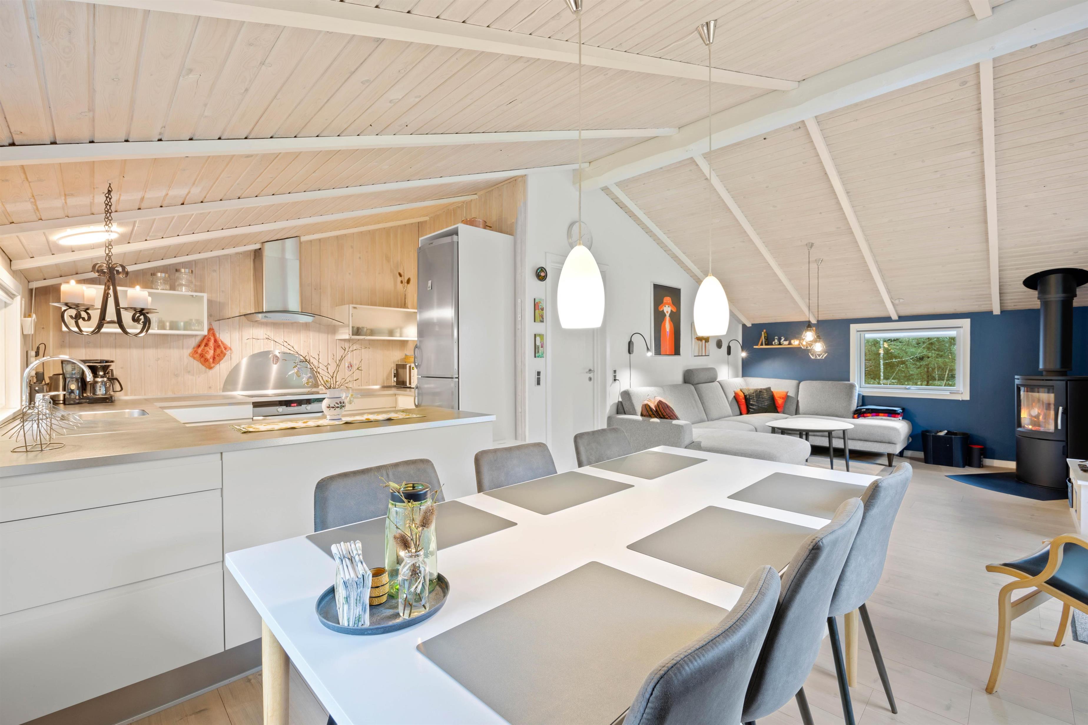 Vil I bo i et rigtig hyggeligt sommerhus og samtidigt ikke gå ned i udstyr, så er dette feriehus perfekt til jer. Her bor I midt i den skønne natur, i et dejligt hus med alle de vigtige hvidevarer som opvaskemaskine, vaskemaskine, tørretumbler og en energisparende varmepumpe.
