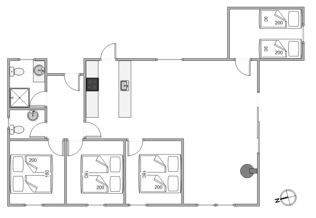Sommerhusets køkken ligger i åben forbindelse med alrummet og stuen, så I kan nyde hinandens nærvær, mens nogle tilbereder lækker mad, og andre slapper af foran brændeovnen eller spiller et brætspil ved bordet. Feriehuset er udstyret med opvaskemaskine, så opvasken er hurtigt klaret, mens I kan fokusere på at hygge foran brændeovnens knitrende flammer og bare nyde varmen og hinanden.
