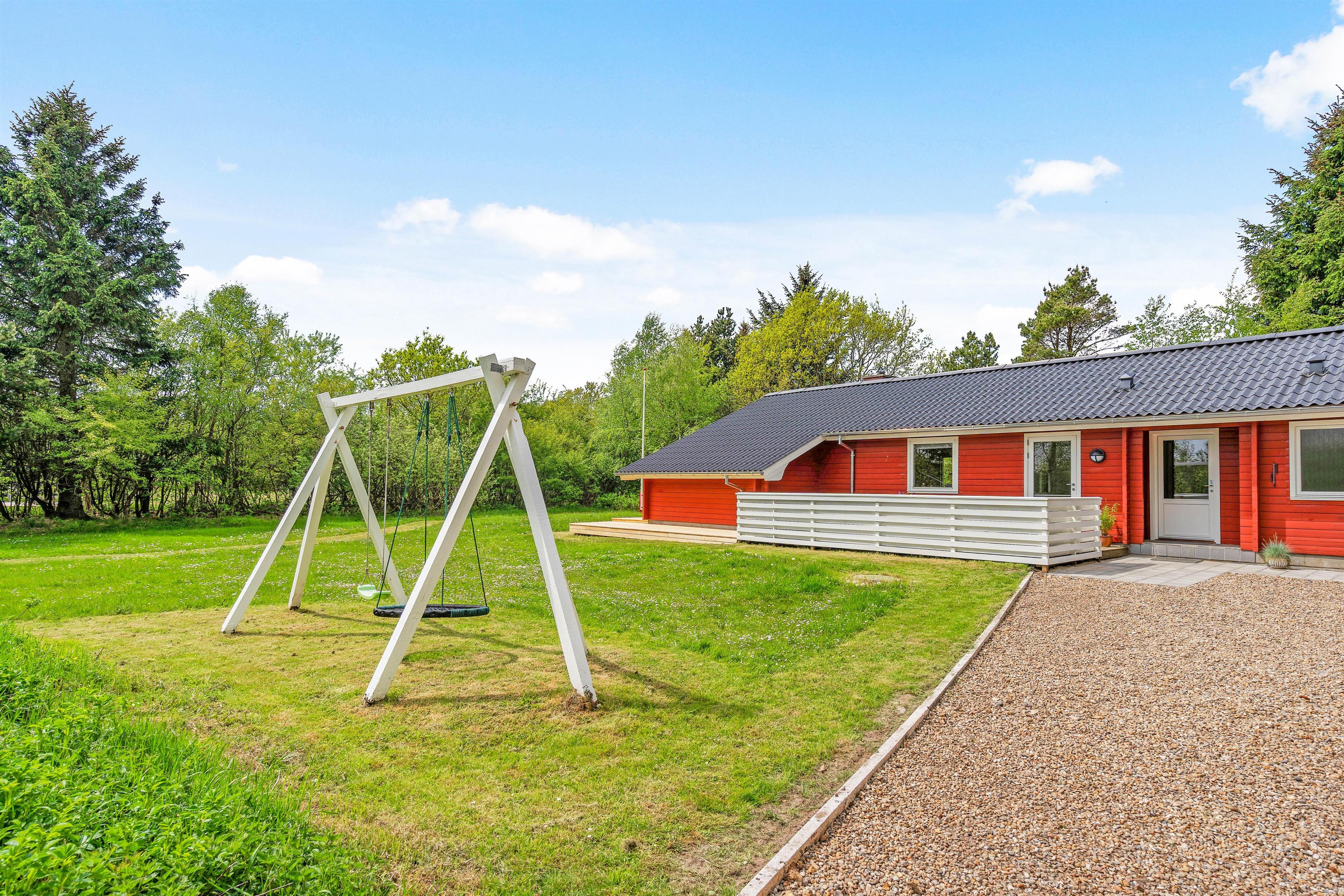 Her på Engvejen 29 har I en naturgrund på hele 2175 m2, hvor I både finder 2 terrasser og gynge til feriens mindste deltagere. Den ene terrasse er åben og delvis overdækket, mens den anden er lukket og afskærmet, så I kan nyde den friske luft, selv når det blæser en smule. Her på terrasserne kan I benytte jer af ferieboligens solvogne, havemøbler og grill, som egentlig er alt, man behøver i haven på en solskinsdag.