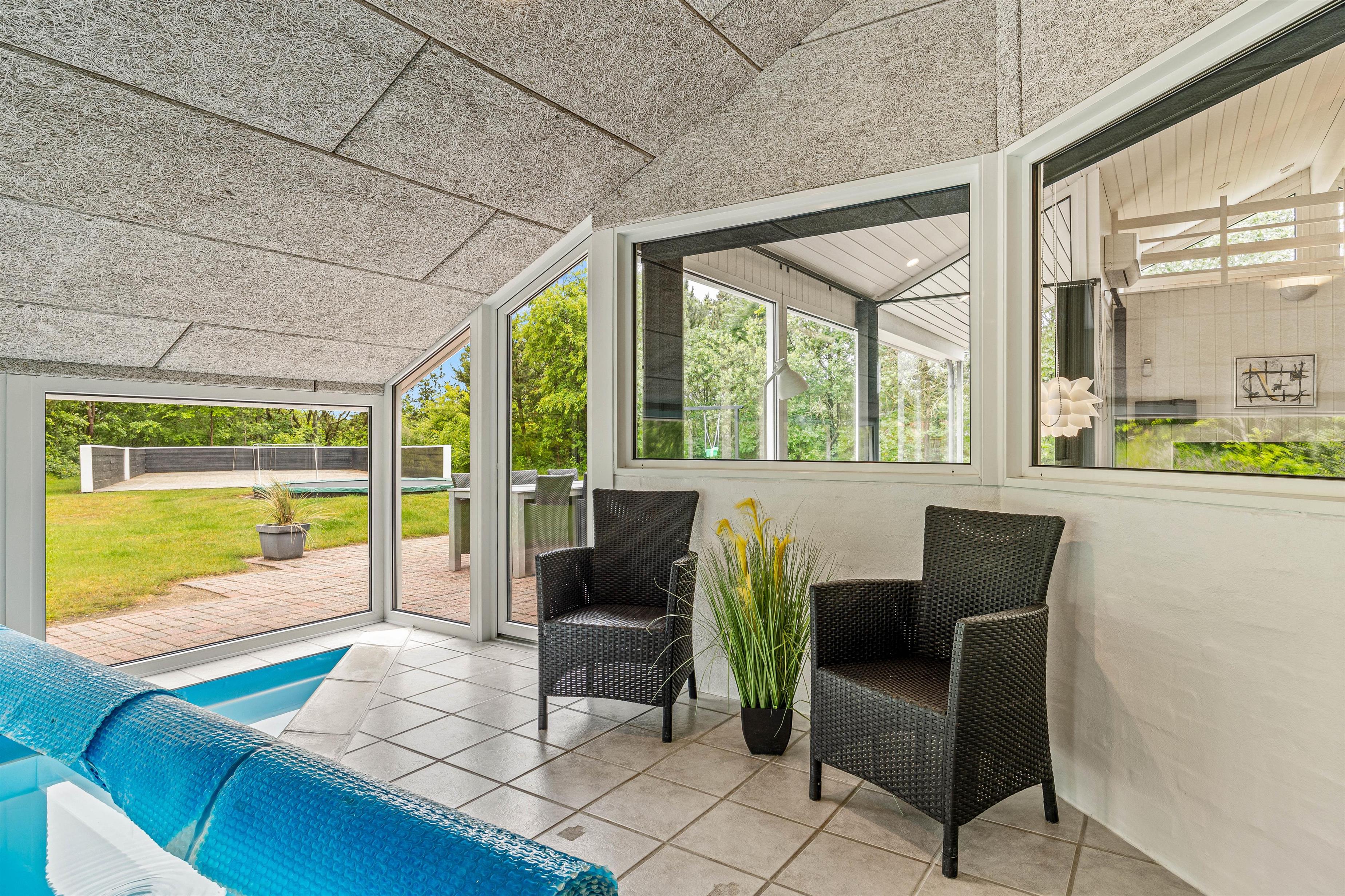 Sommerhuset har to energivenlige varmepumper, en luft-til-luft og en luft-til-vand, som sørger for opvarmning af poolen. Dette sikrer en behagelig og økonomisk opvarmning under hele jeres ophold, så I kan nyde jeres tid fuldt ud uden bekymringer.
