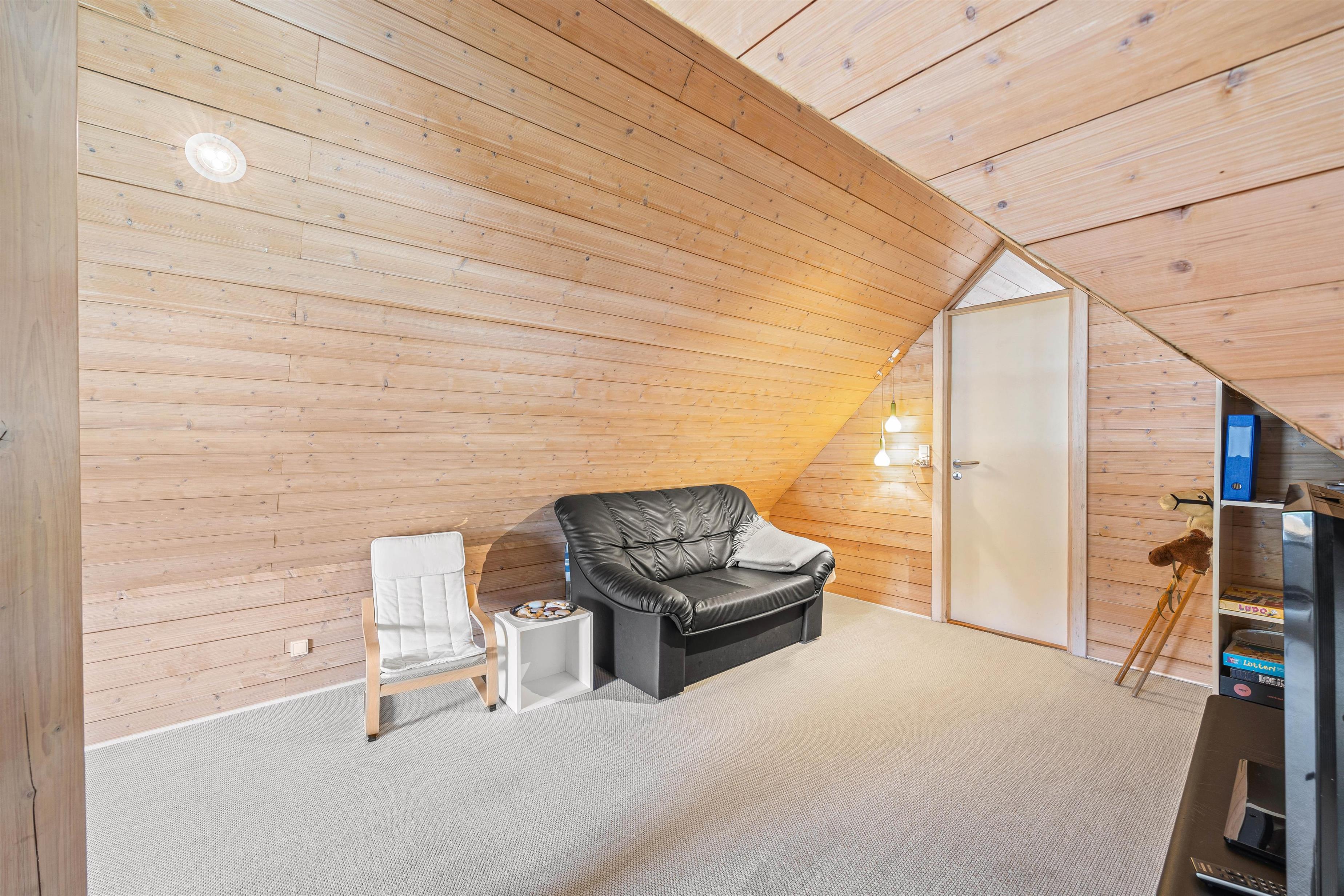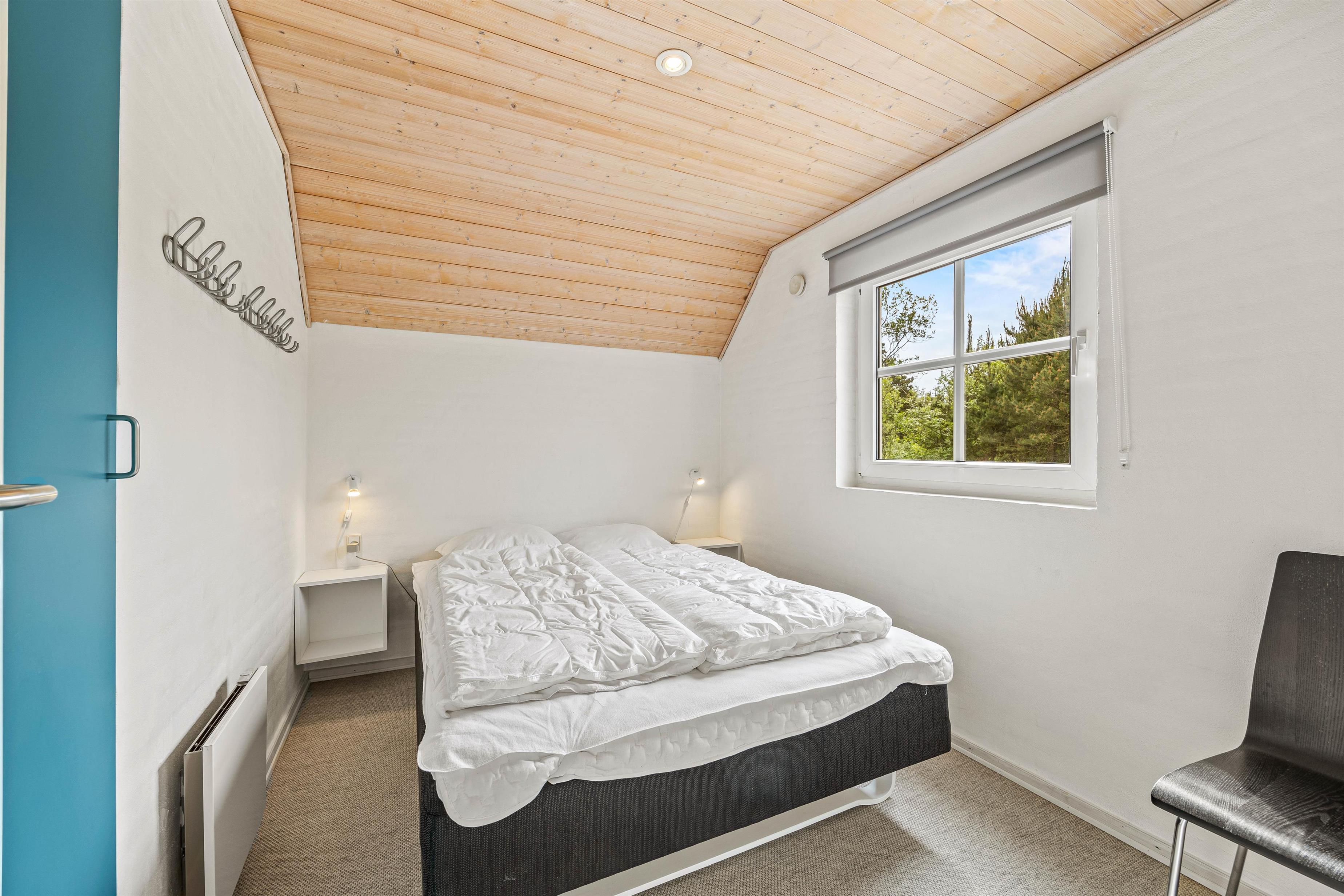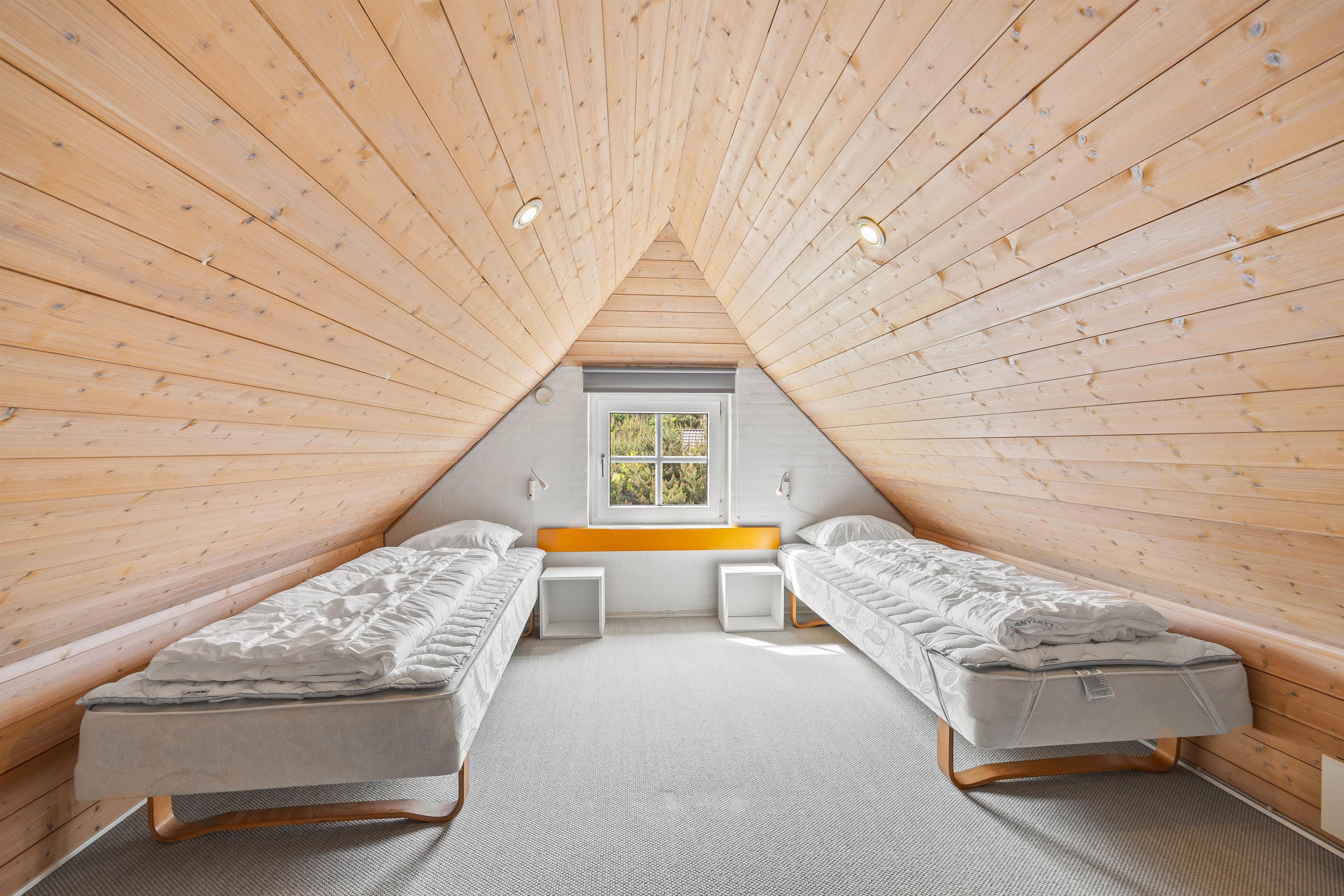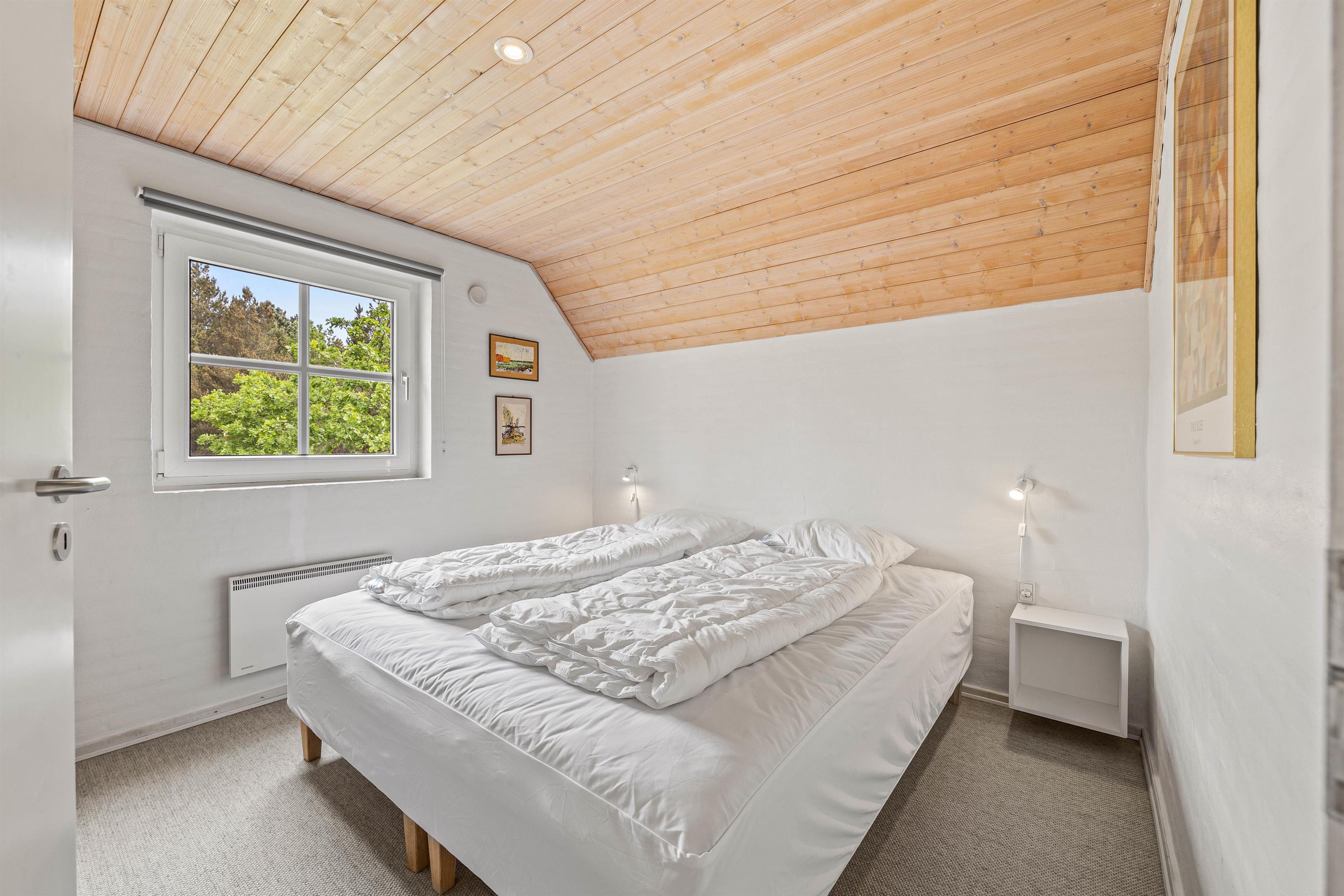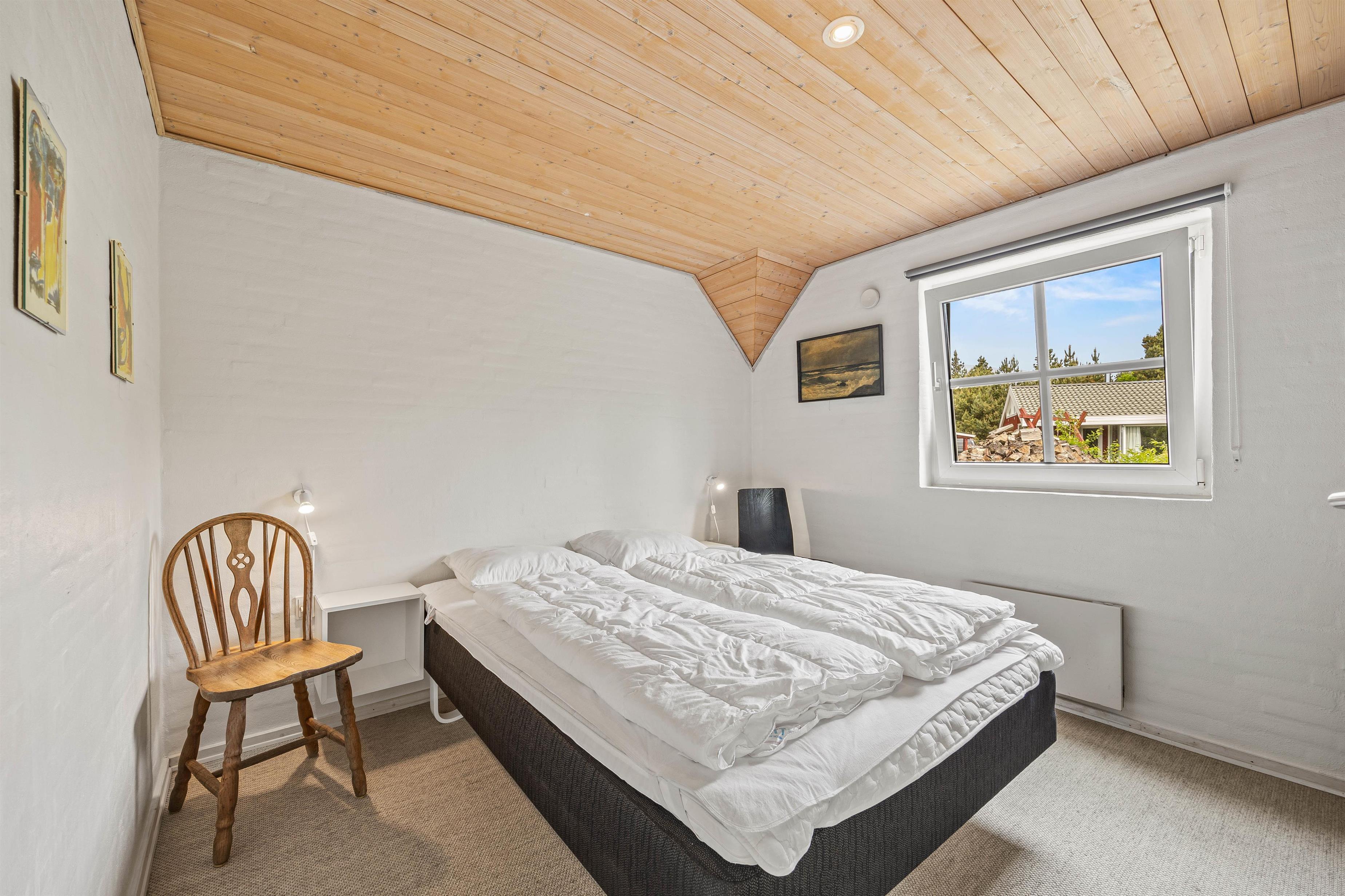 I stuen finder I også et ekstra element af hygge, her er nemlig en brændeovn, som spreder varme og skaber en hyggelig atmosfære på de kolde dage. Feriehuset har 8 sovepladser fordelt på fire værelser. Med tre værelser på stueetagen med 2x90x200 senge og det fjerde på første sal med en 2x90x200 seng, er dette den perfekte værelsesfordeling til familien, som ønsker en opdeling af børn og voksne, eller til vennepar, der ønsker lidt ekstra privatliv.