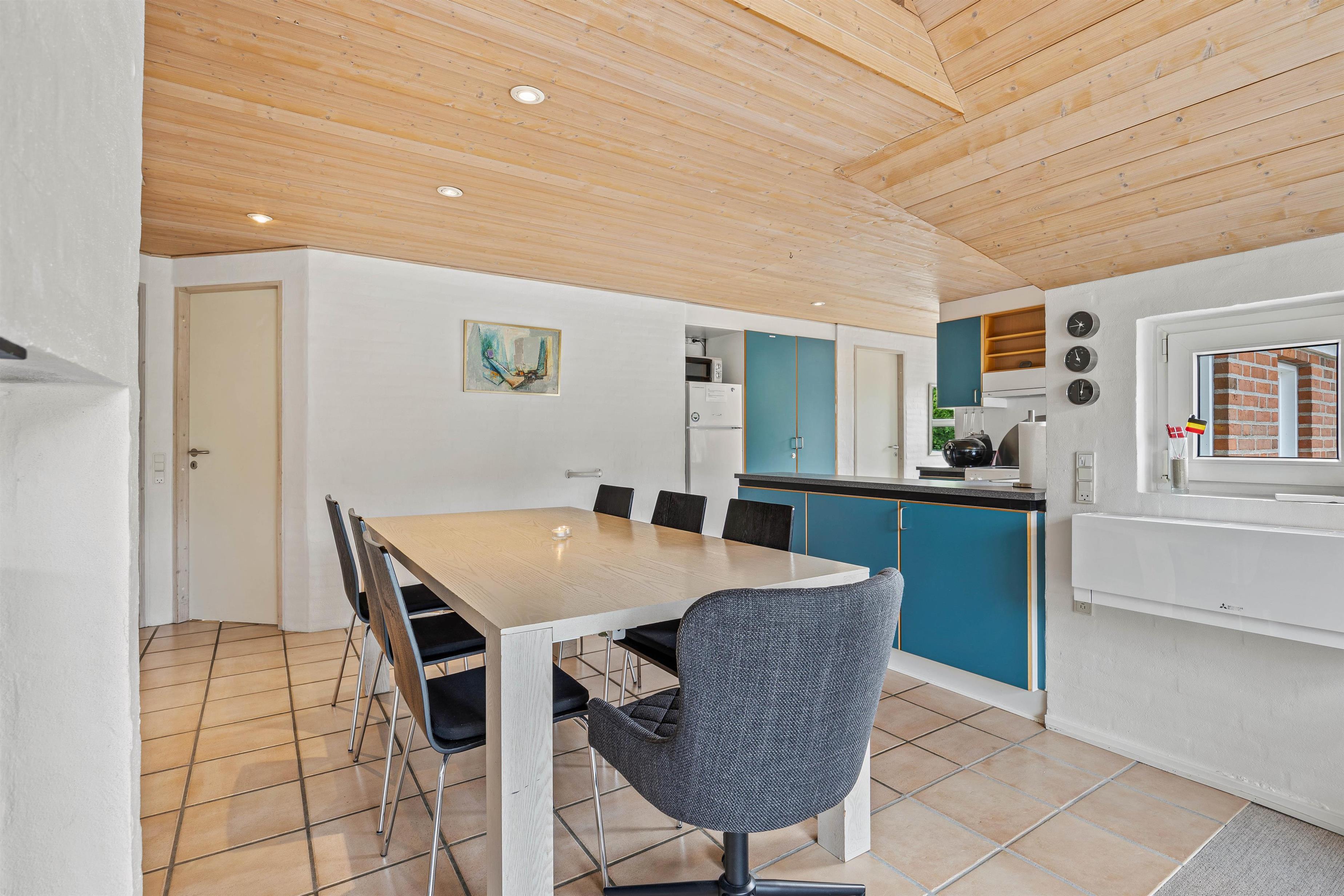 I køkkenet finder I en praktisk opvaskemaskine, så I hurtigt kan komme tilbage til hyggen omkring spisebordet eller aftenens spil i stuen. Køkkenet er et samtalekøkken, hvilket betyder, at I kan holde samtalen kørende med dem i stuen, mens I tilbereder måltider. Dette gør madlavning og oprydning til en leg og sikrer, at ingen går glip af den gode stemning.