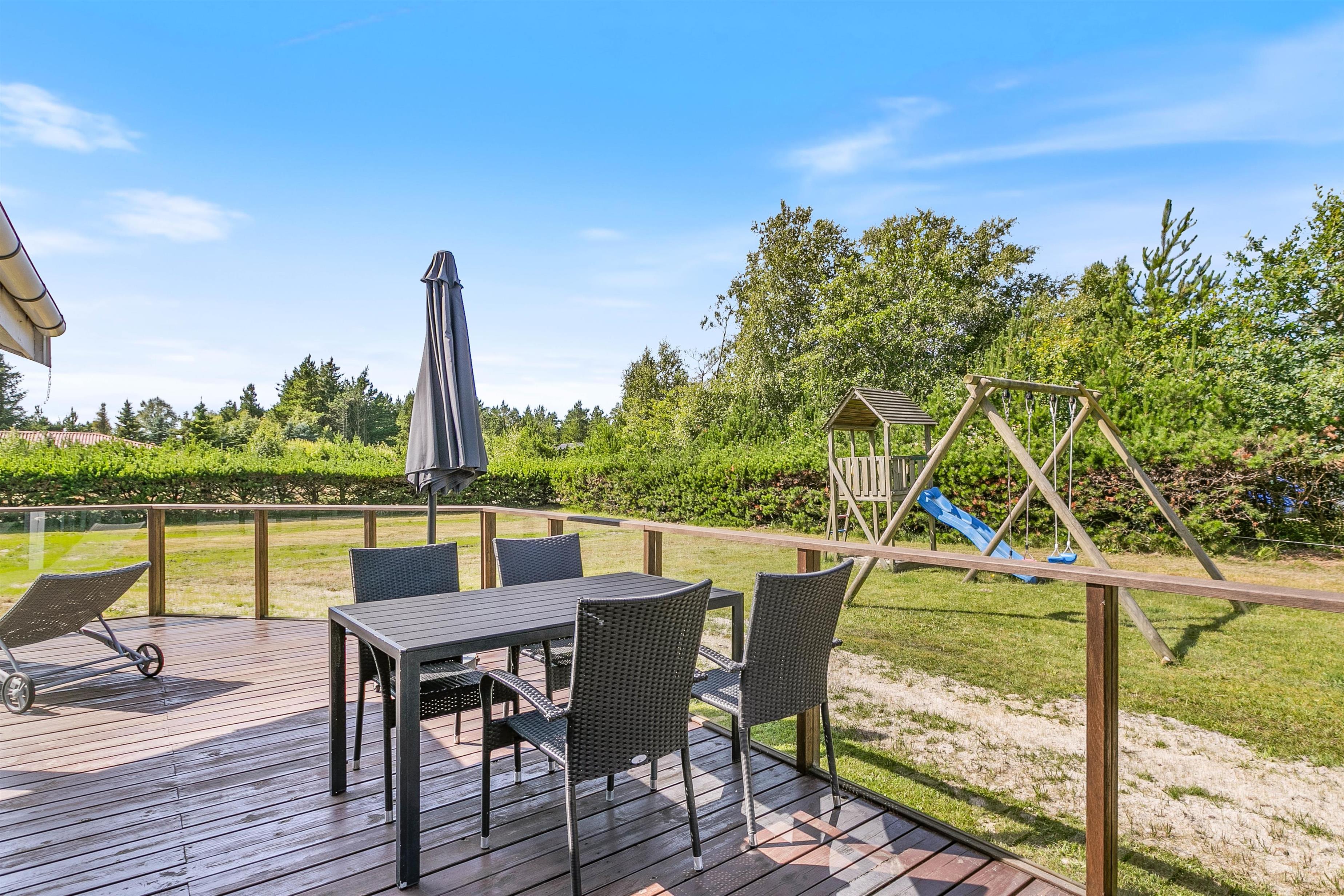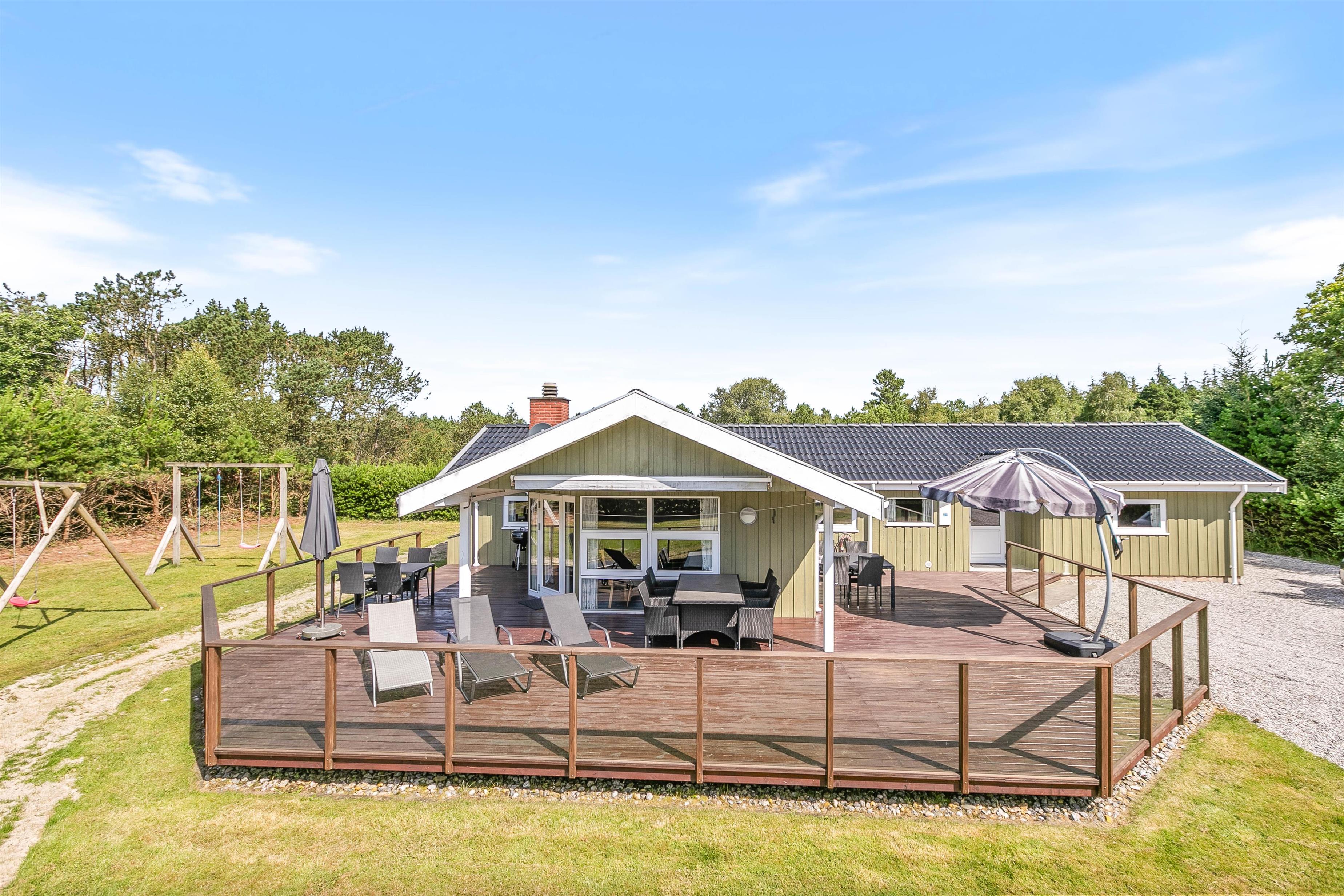 Den store græsplæne bliver et hit blandt både børnene og hunden, som kan få fri leg, mens I slænger jer i liggestolene. Til børnene er der endda en rigtig fin legeplads med både legetårn og sandkasse.