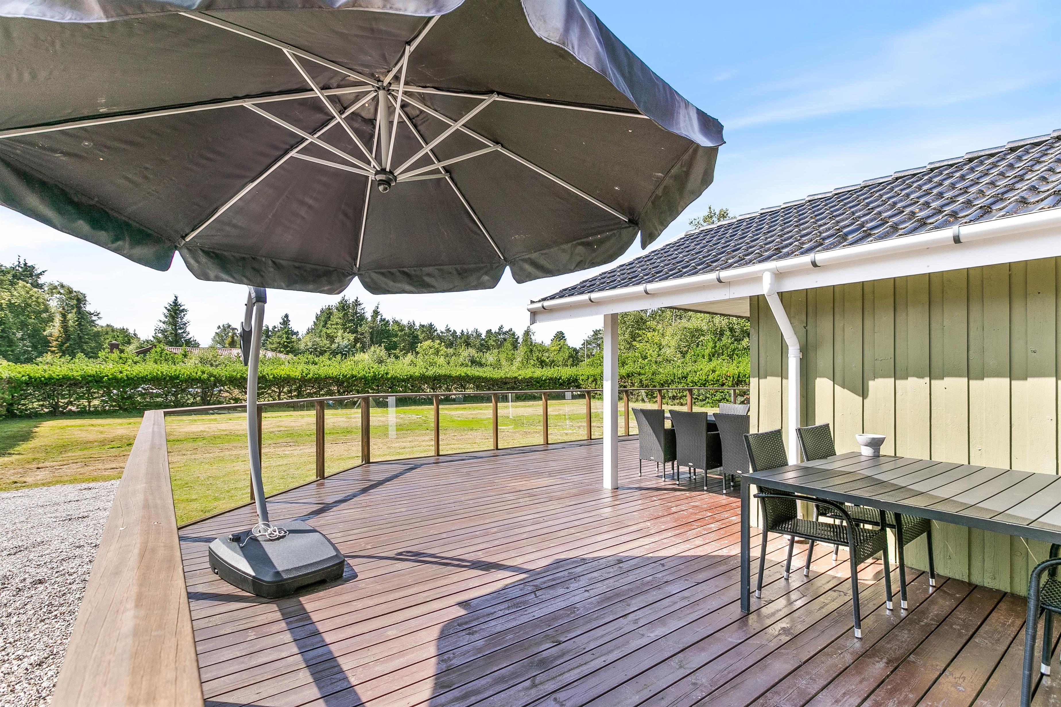 På Hedevang 72 er der skønne forhold udendørs såvel som indendørs. Huset har en herlig stor terrasse, som endda er delvist overdækkede, så de skønne omgivelser kan nydes udenfor i langt det meste slags vejr.