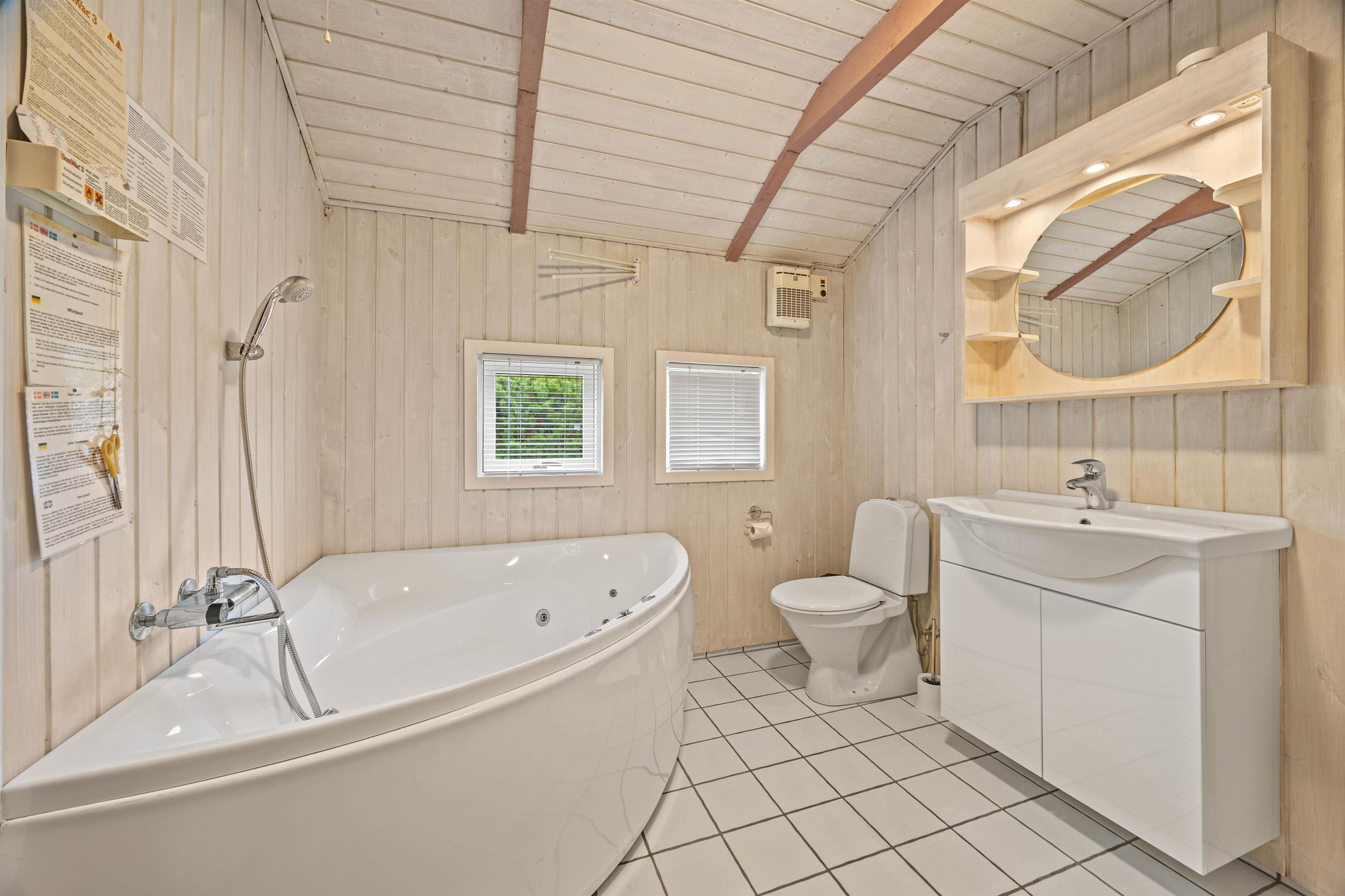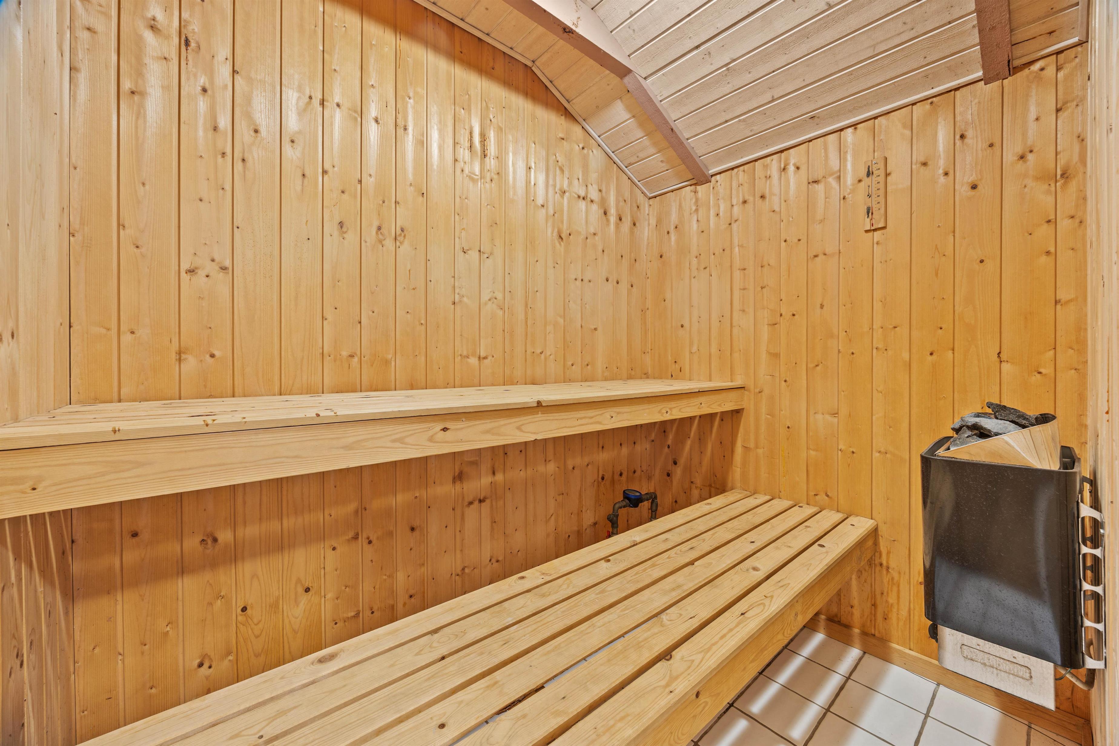 Det største af de 2 badeværelser er indrettet med spabad og sauna, så I kan forkæle jer selv og hinanden lidt ekstra i løbet af ferien, for eksempel efter en lang og dejlig gåtur langs stranden eller i det hyggelige skovområde.
