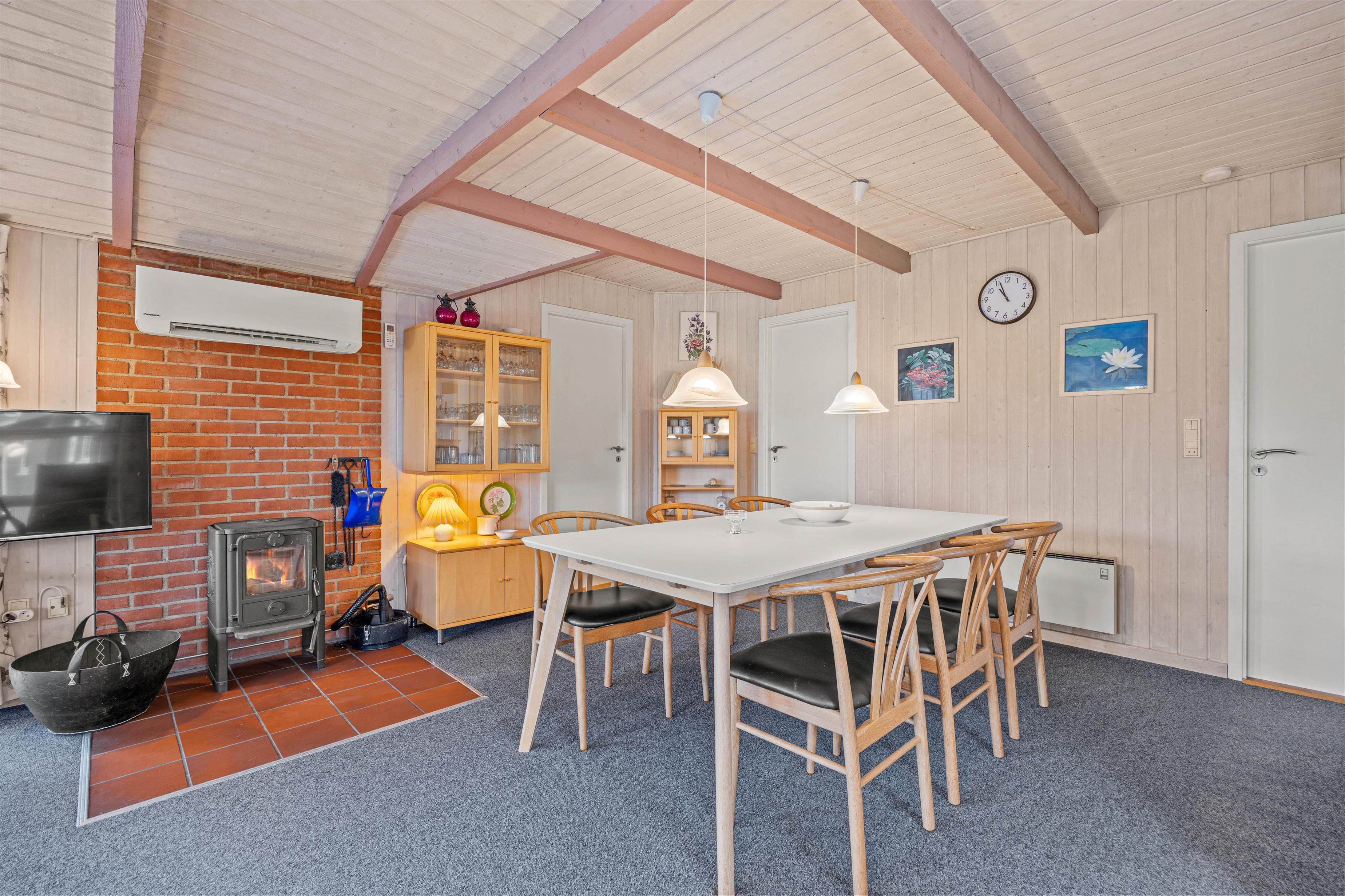 Det fine sommerhus er indrettet i klassisk sommerhusstil, så feriestemningen er lagt helt fra start. I det åbne køkken- og spisestueområde finder I husets hjerte, og her er rammerne sat for en masse hyggelige stunder og gode minder.