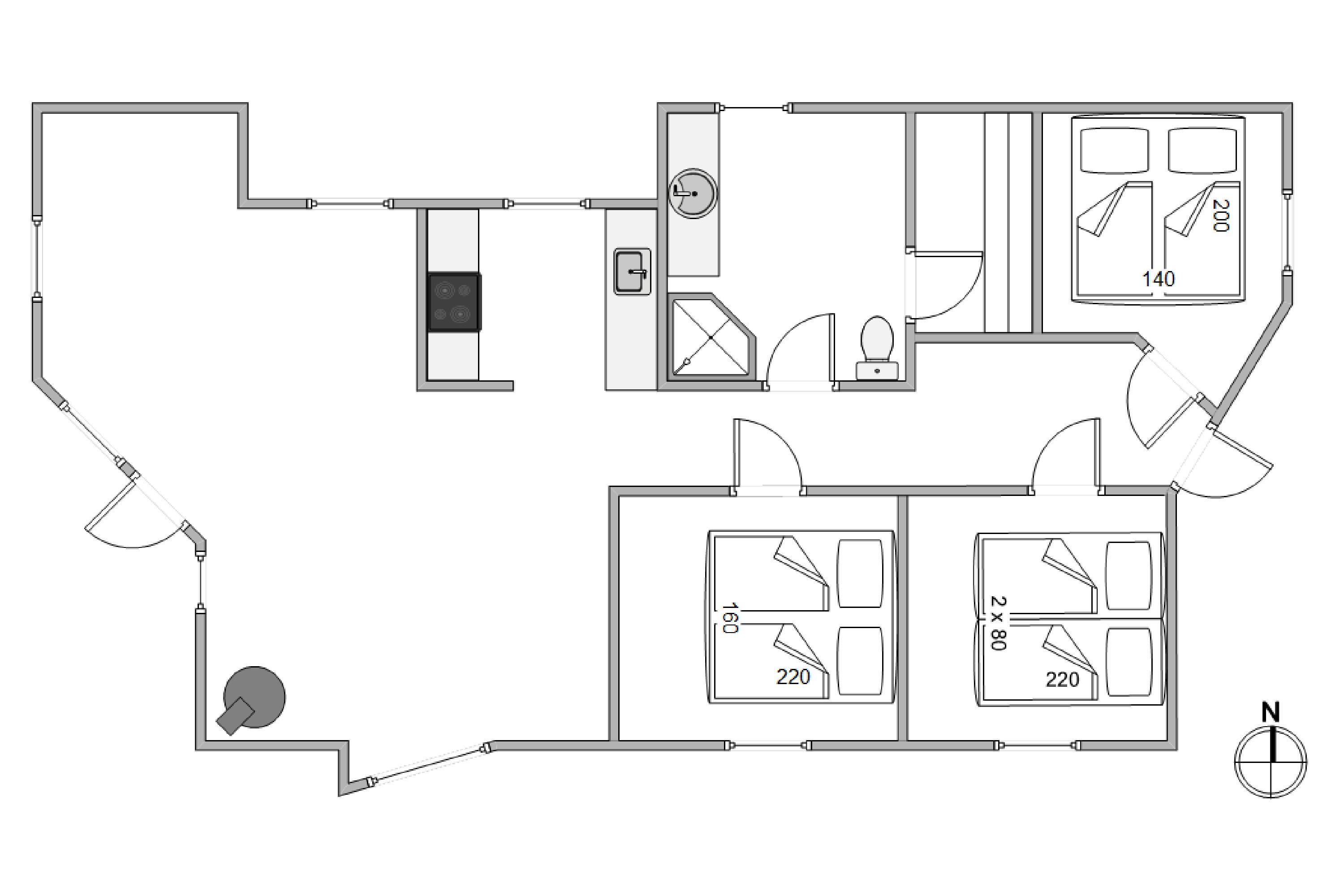 Når du træder ind i sommerhuset, mødes du af en varm og indbydende atmosfære, hvor en hyggelig brændeovn i stuen straks fanger opmærksomheden. De 3 rummelige soveværelser tilbyder overnatning til 6 personer.