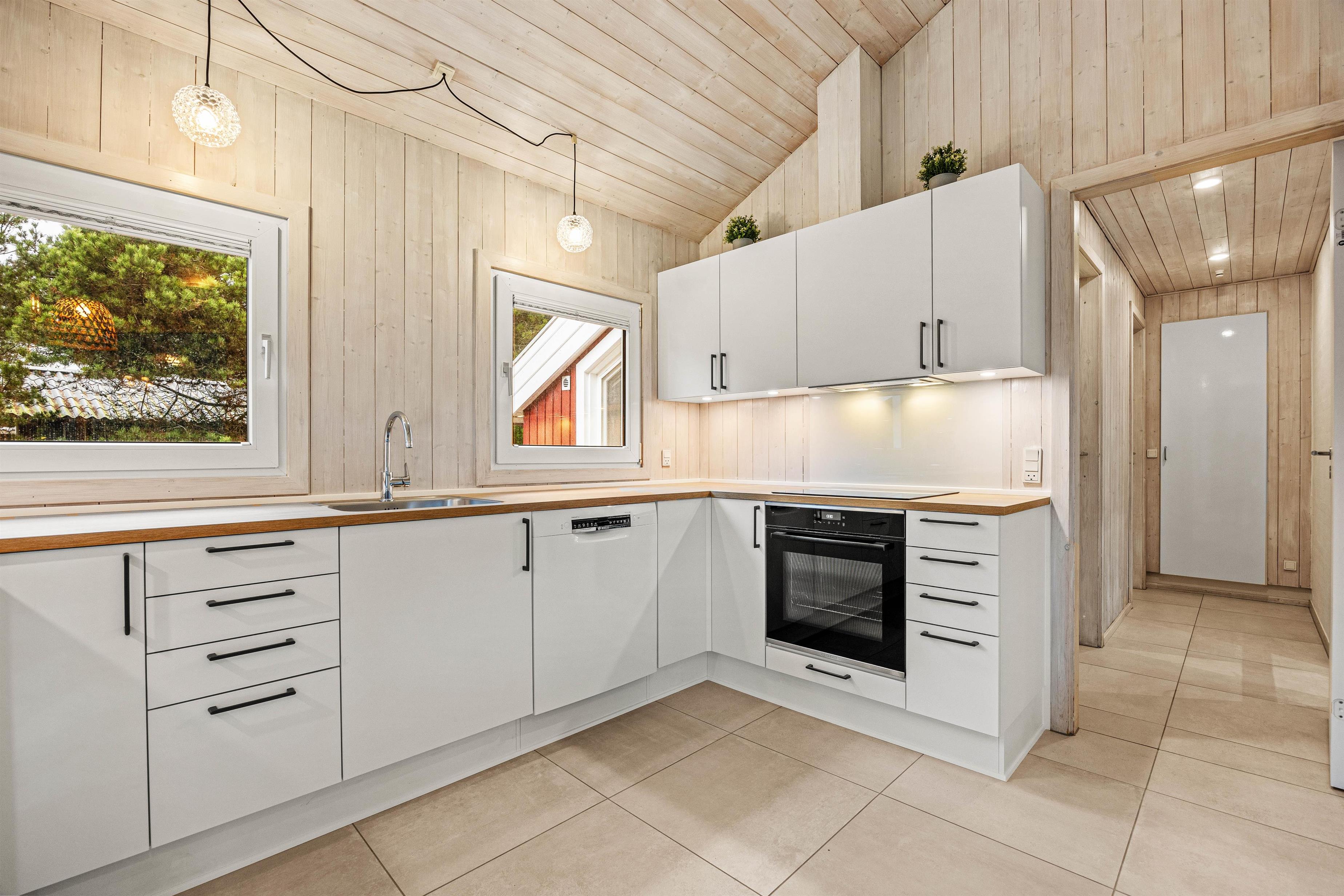Feriehuset varmes op af en energibesparende varmepumpe, så temperaturen altid er perfekt. Dertil er der også en brændeovn, der skaber en hyggelig atmosfære i de sene aftentimer, når mørket falder på.