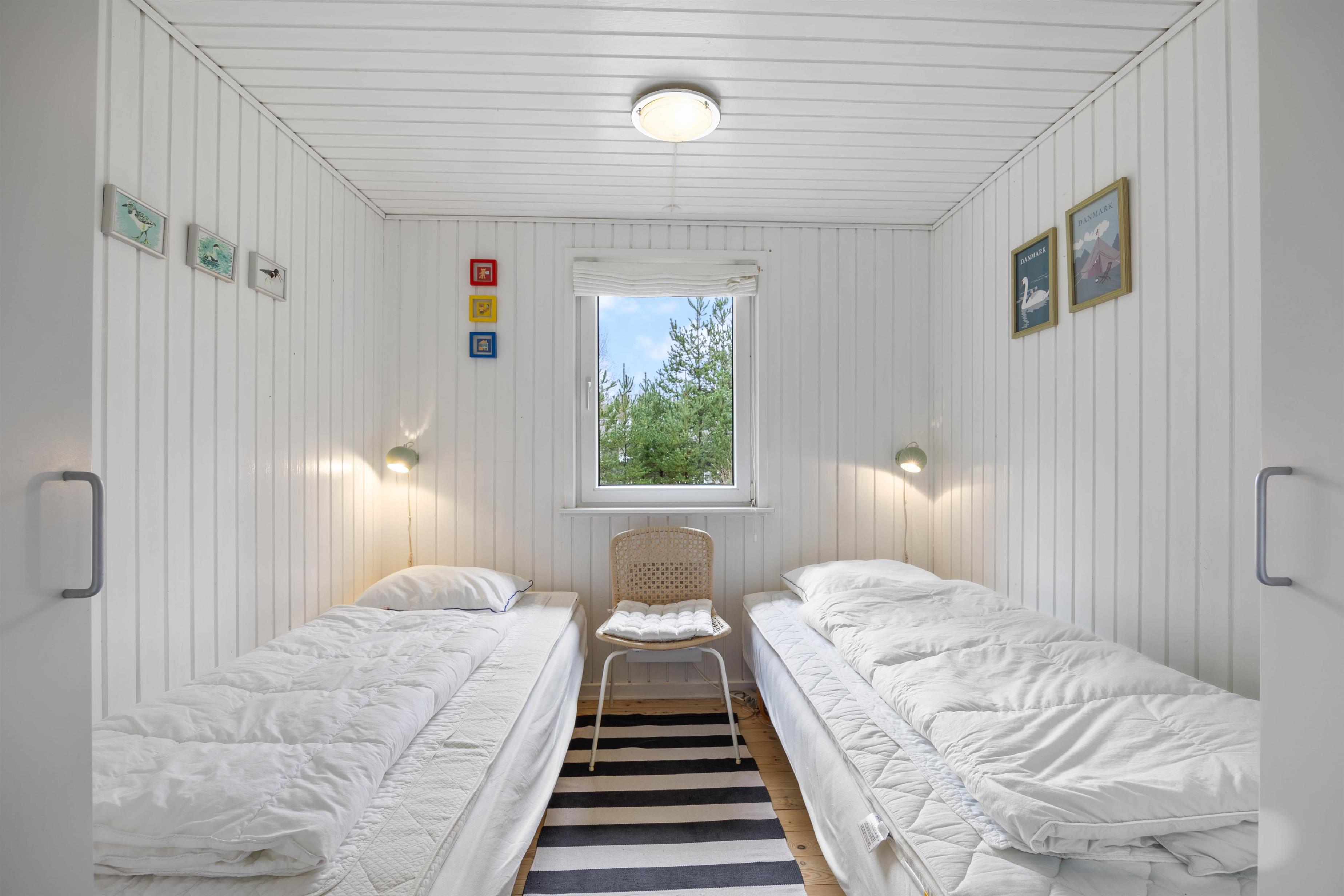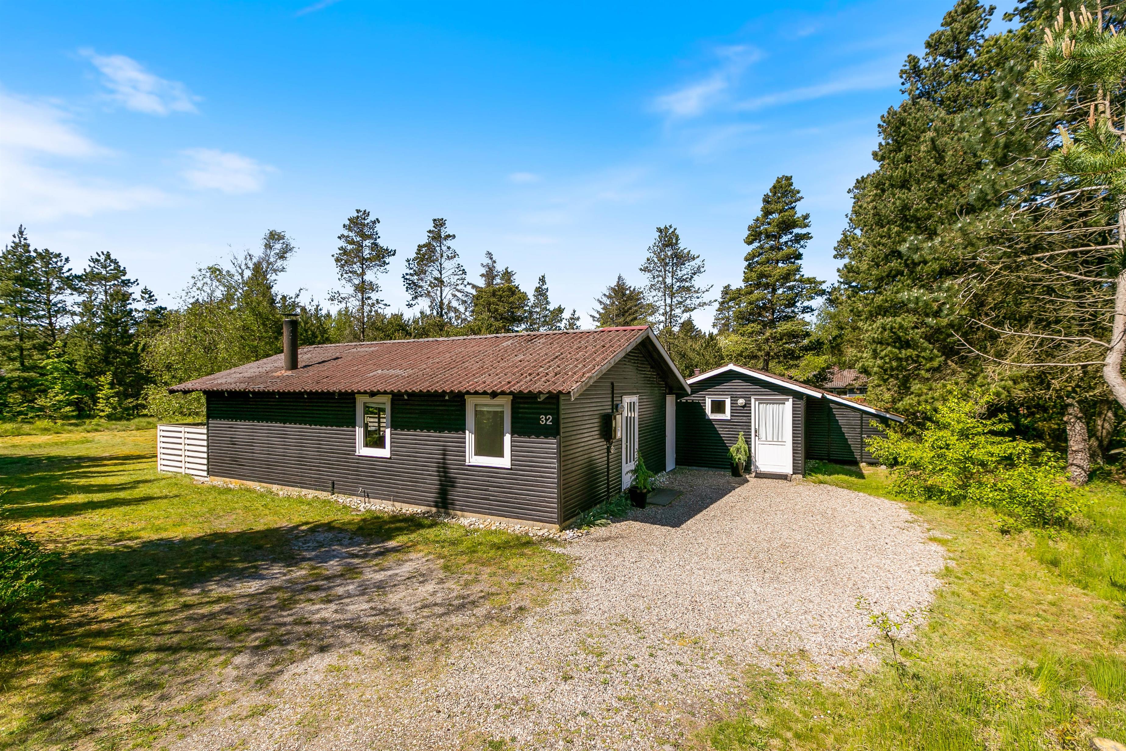 Sommerhuset på Sdr. Skovvej 32 er praktisk og hyggelig og opdelt i 2 afdelinger. Hovedhuset består af 2 soverum og et badeværelse med bruser, køkken og stue-alrum. Ved siden af huset med egen solterrasse og indgang finder I annekset. Her er et godt soverum med dobbeltseng og et ekstra badeværelse.