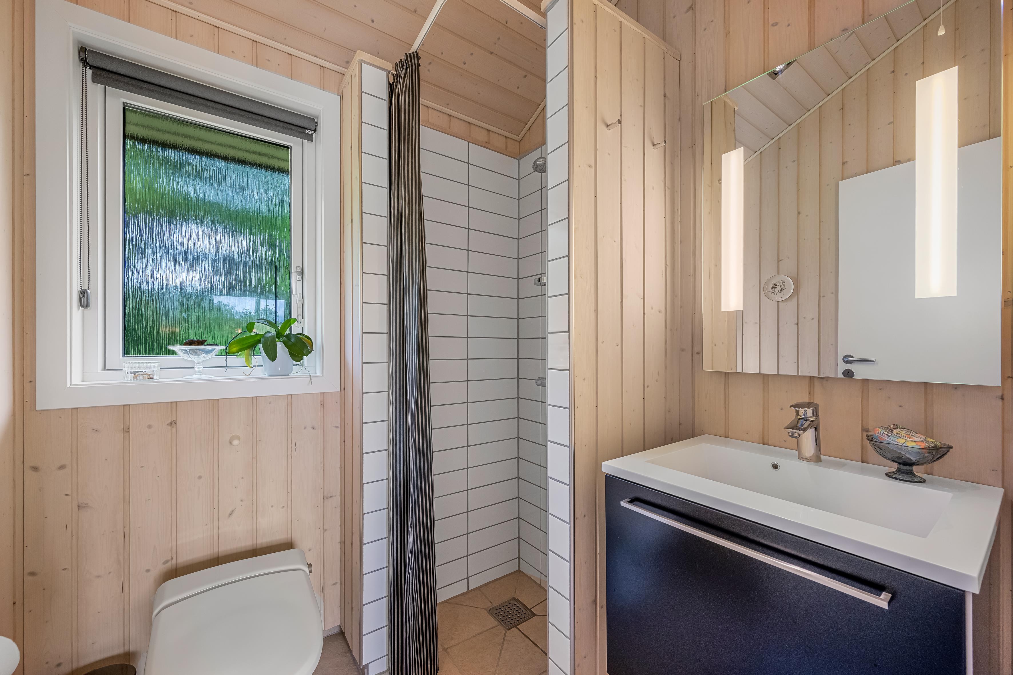 Sommerhuset tilbyder 2 skønne badeværelser med gulvvarme, som sikrer, at I altid har det både varmt og behageligt her. Efter en lang dag med eventyr kan I forkæle jer selv i med en tur i badekaret, hvor I kan blive varmet godt og grundigt igennem. Endnu et plus ved sommerhuset på Engvejen 6 er, at der er en vaskemaskine tilgængelig, hvilket sikrer at I altid har nyvasket tøj til jeres eventyrfyldte feriedage.