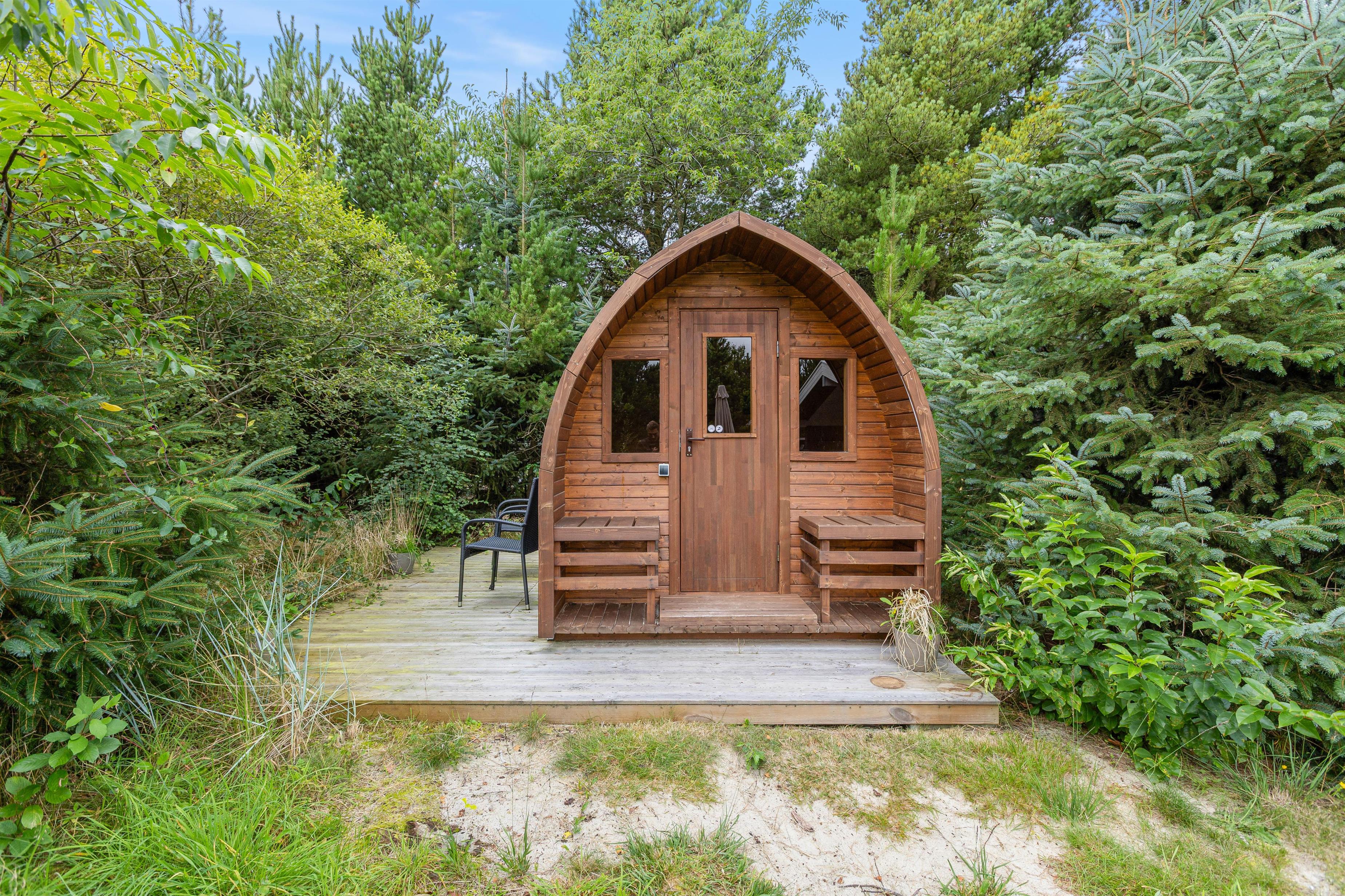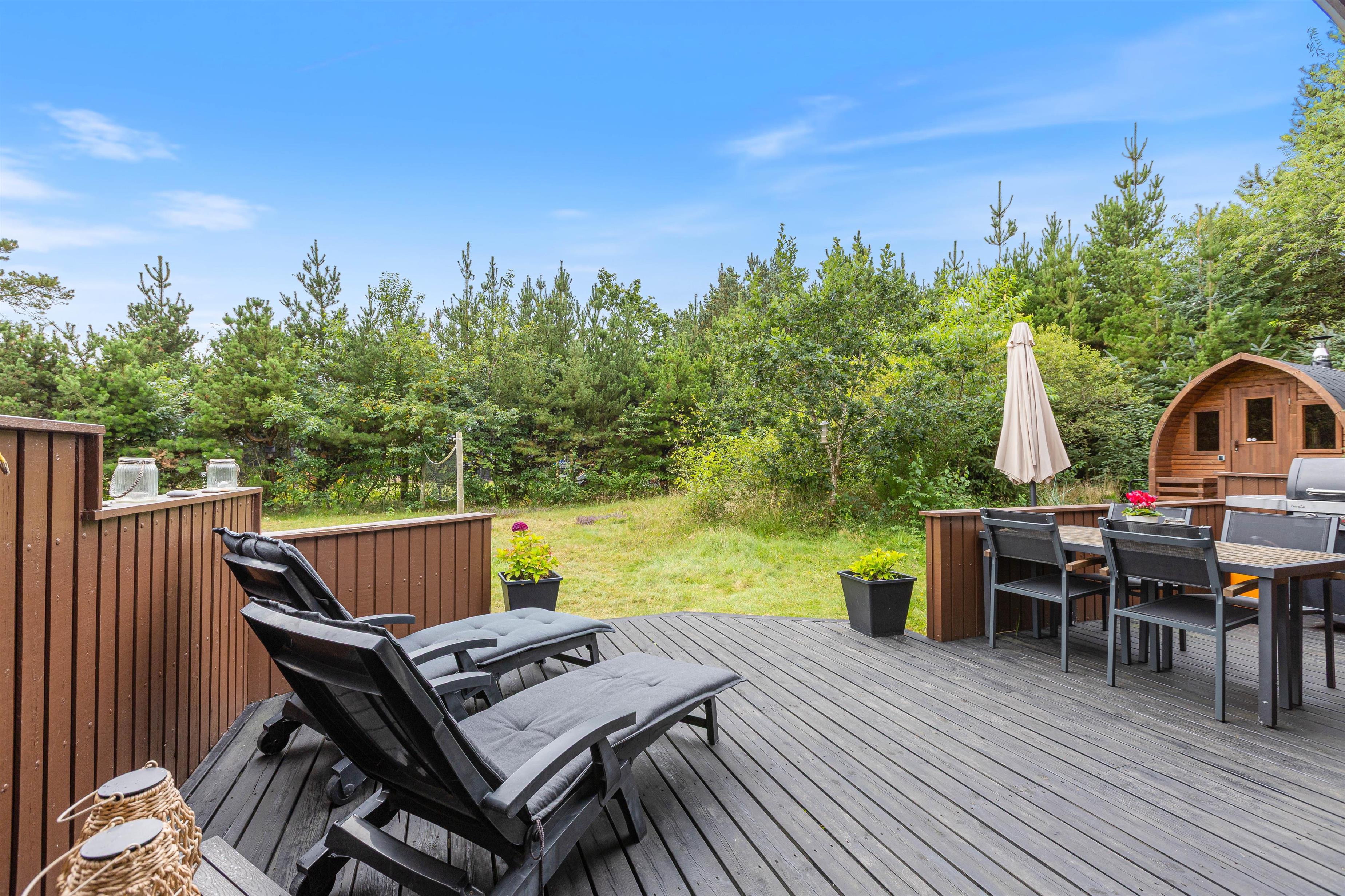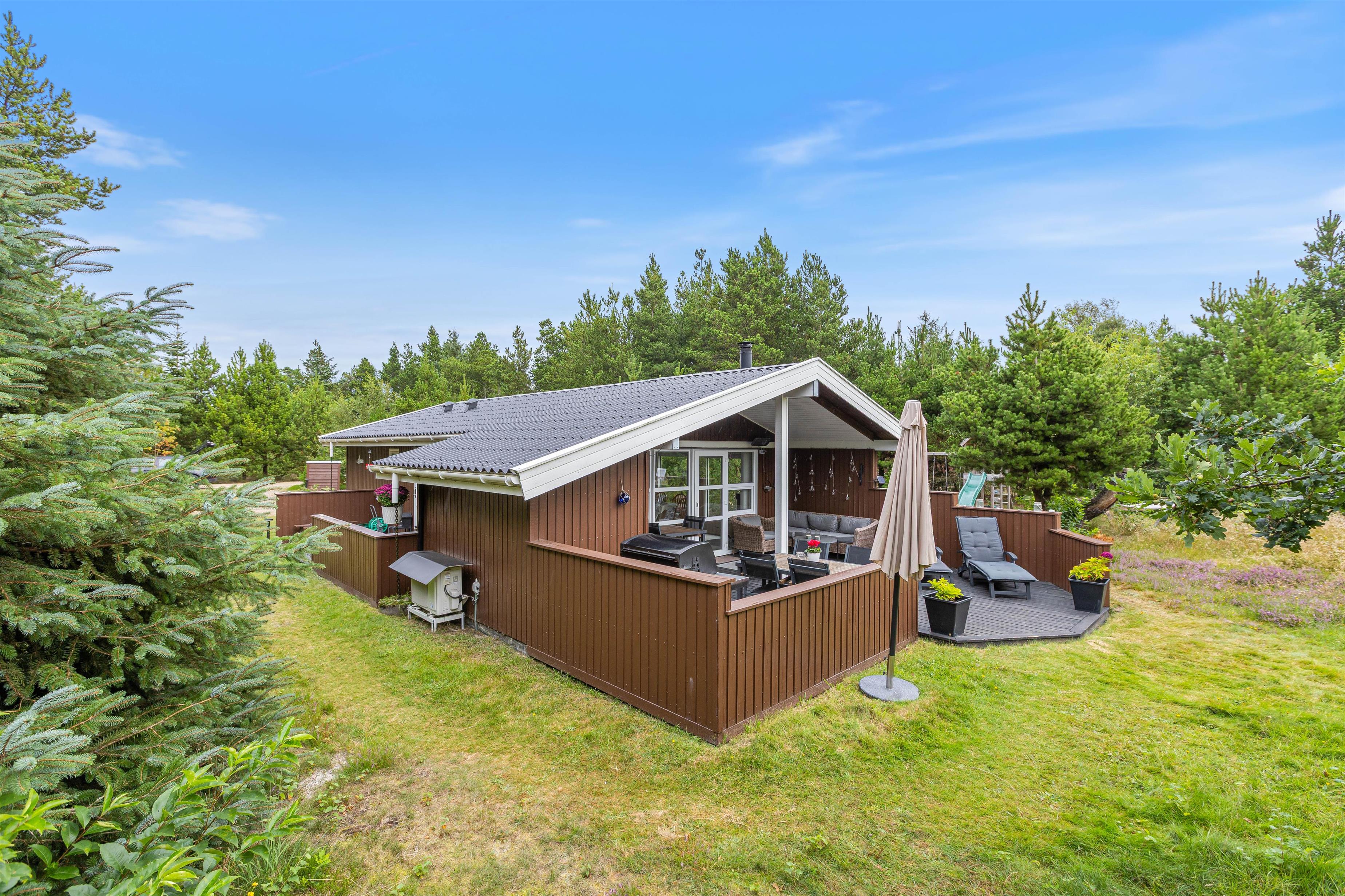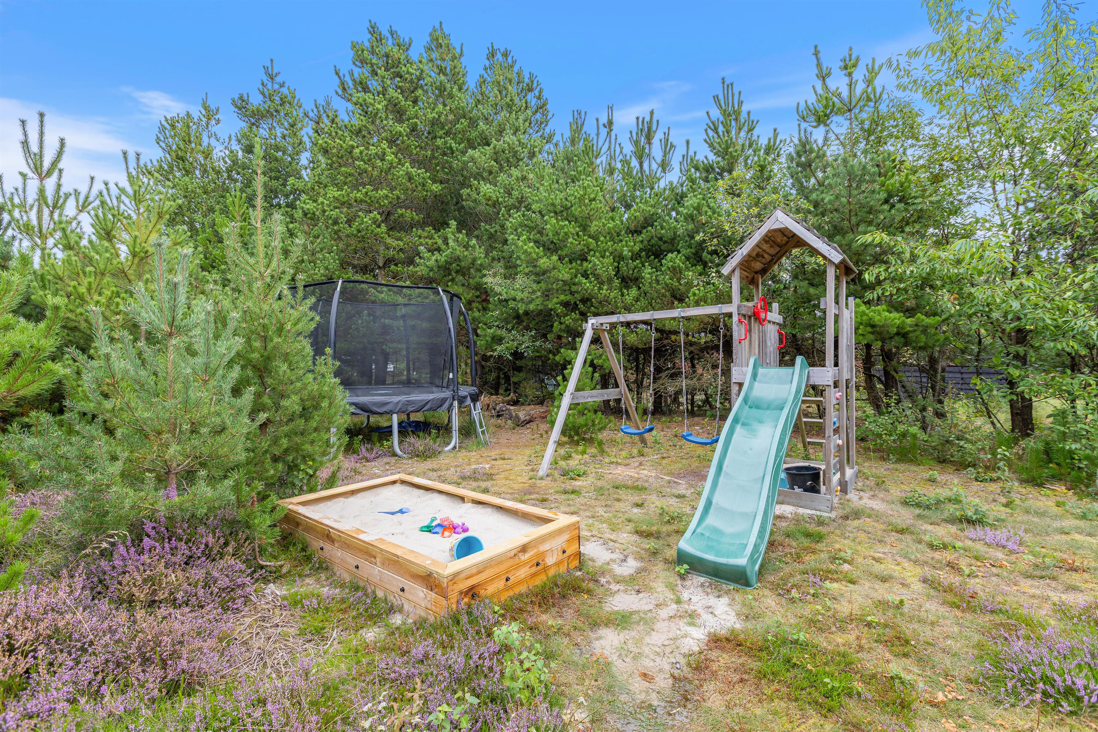 Børnene vil få glæde af haven i mange timer, fordi de her har deres egen legeplads. Der er en gynge, en sandkasse, en trampolin og et klatretårn med rutschebane til børnene. Der er også et badmintonnet samt andre udendørsspil, så I alle har mulighed for at spille sammen. Der er en type 2 lademulighed lige ved siden af ??feriehuset til familiens elbil.