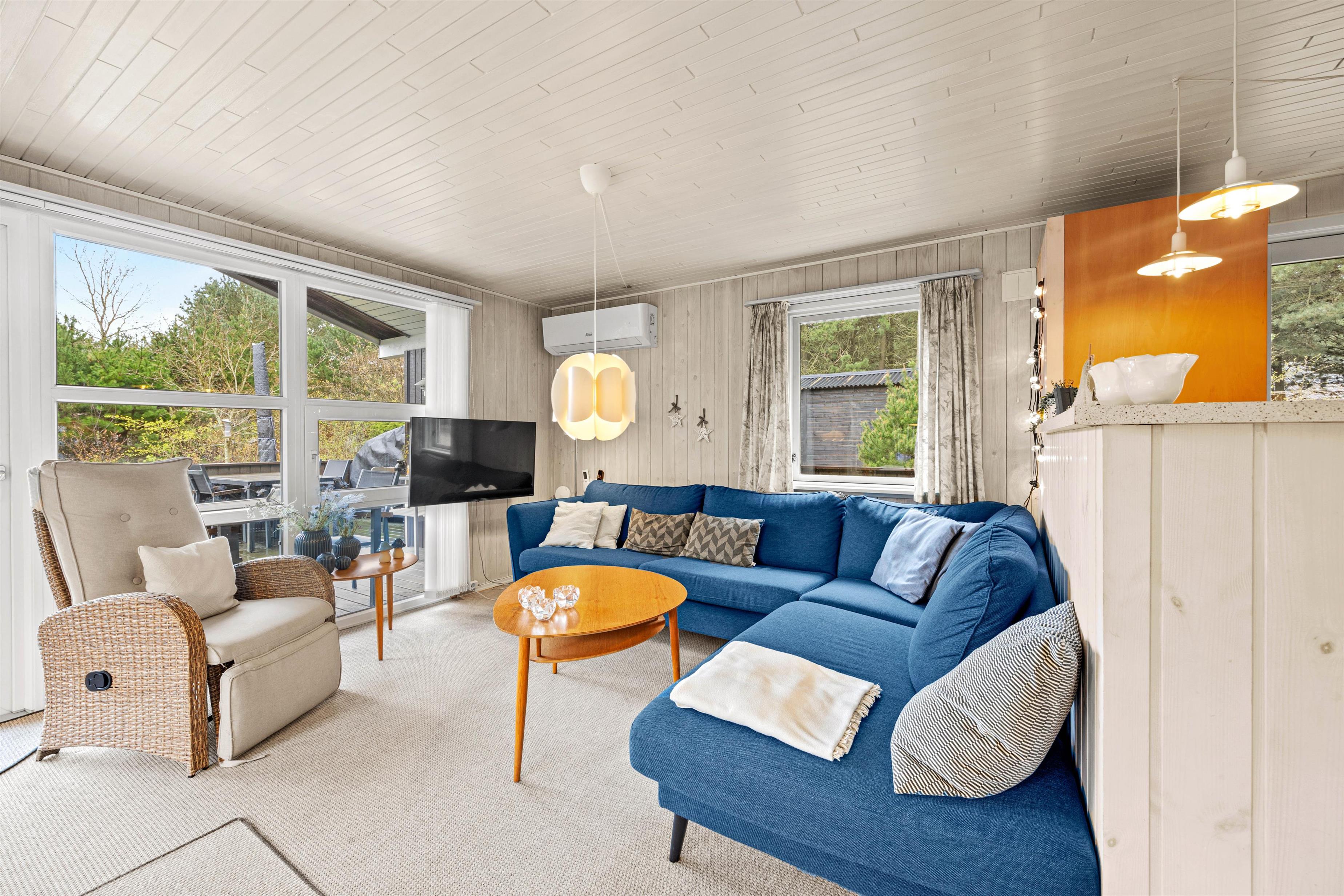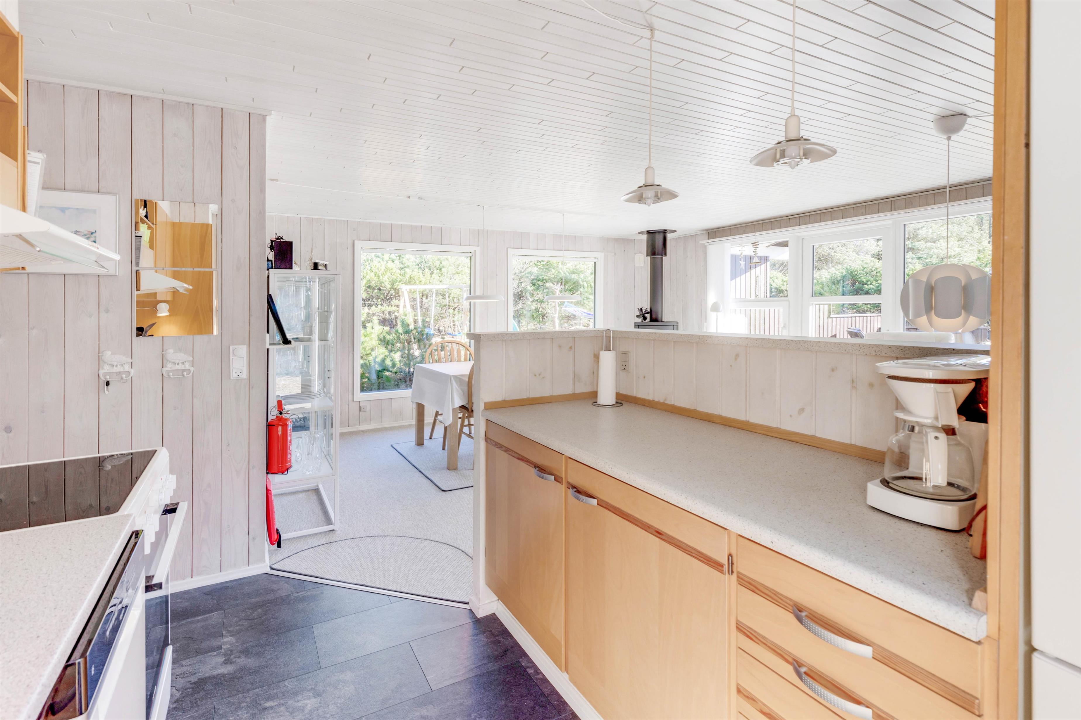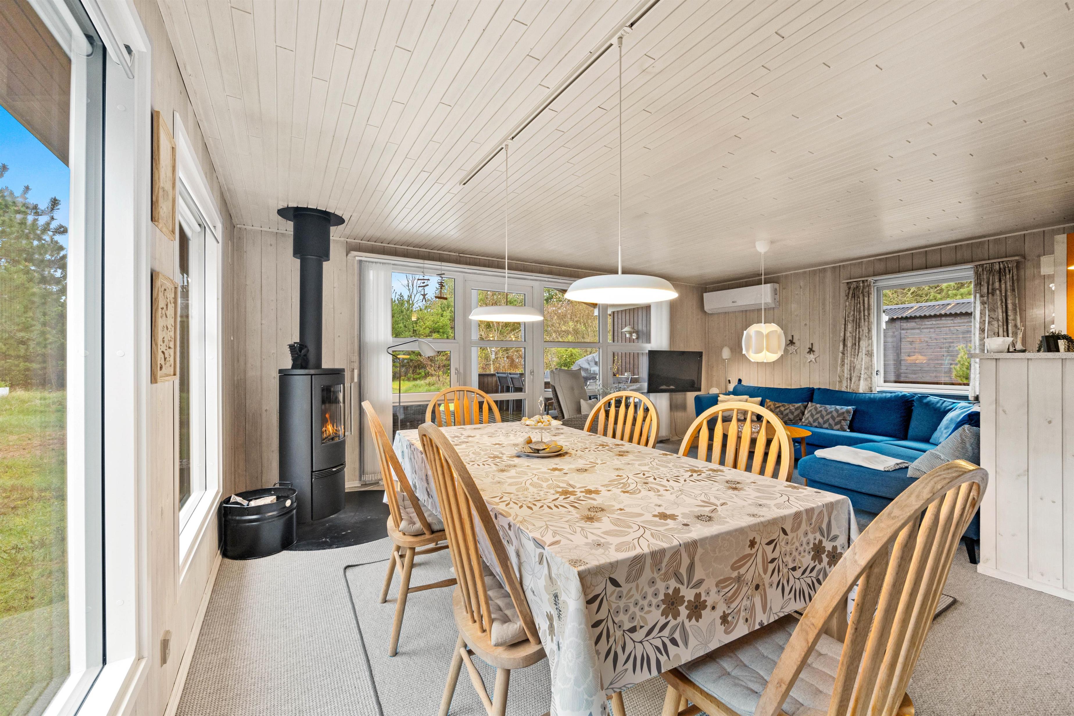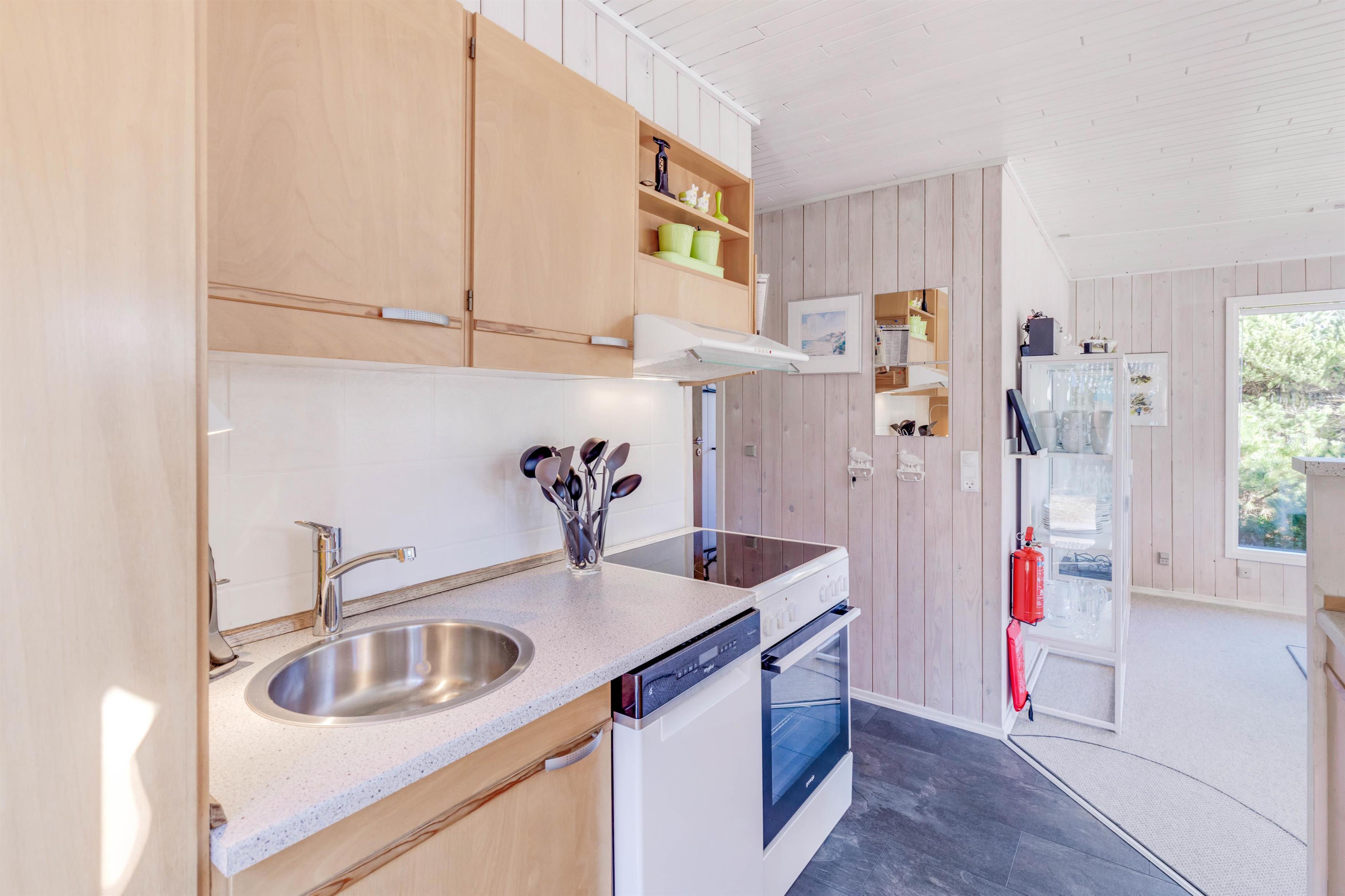 Ferieboligen er udstyret med en hyggelig brændeovn, og sådan en må selvfølgelig ikke mangle i et typisk dansk sommerhus, da flammernes varme og knitren skaber ægte hyggestemning. Alternativt kan I benytte den moderne varmepumpe for at sikre behagelige temperaturer. En opvaskemaskine, vaskemaskine og tørretumbler er også tilgængelige, hvilket især er praktisk til et længere ophold.