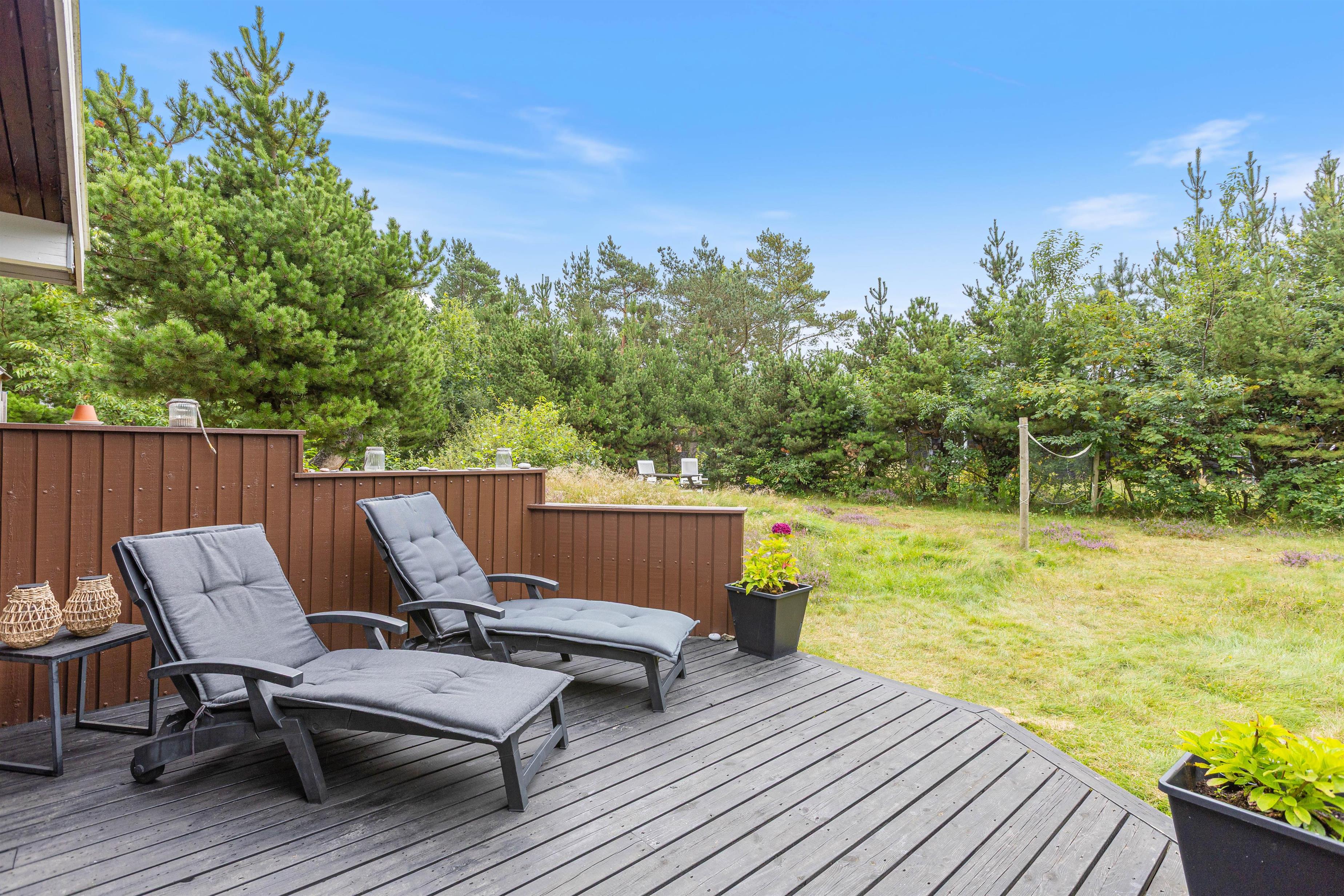 På Kirkeflod 3 kan I nyde solen lige fra morgen til aften, da solen vil være at finde på alle Feriehusets terasser. I har den store terasse som vender mod syd, her vil I have rig mulighed for at nyde solen fra i står op oghelt til aften. På den lille terasse der er vestvendt, vil I kunne nyde solen om eftermiddagen og sidst men ikke mindst, vil I kunne nyde aftensolen på den lille flisebelagte terasse som I finder i det sydøst vendte hjørne af haven. På den østvendte terrasse kan I nyde morgensolen, og om sommeren er den perfekt til at nyde den friske luft og solskin til morgenmaden.