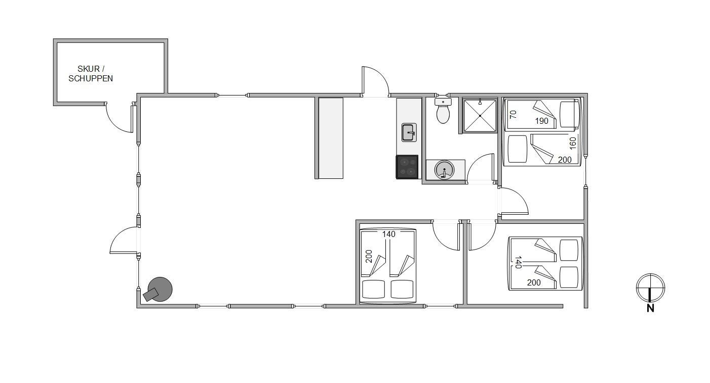 Selve feriehuset har plads til op til 6 personer. De 3 soveværelser har hver en dobbeltseng (140x200 eller 160x200). Derfor er sommerhuset også velegnet til en ferie med dine bedste venner eller flere par.