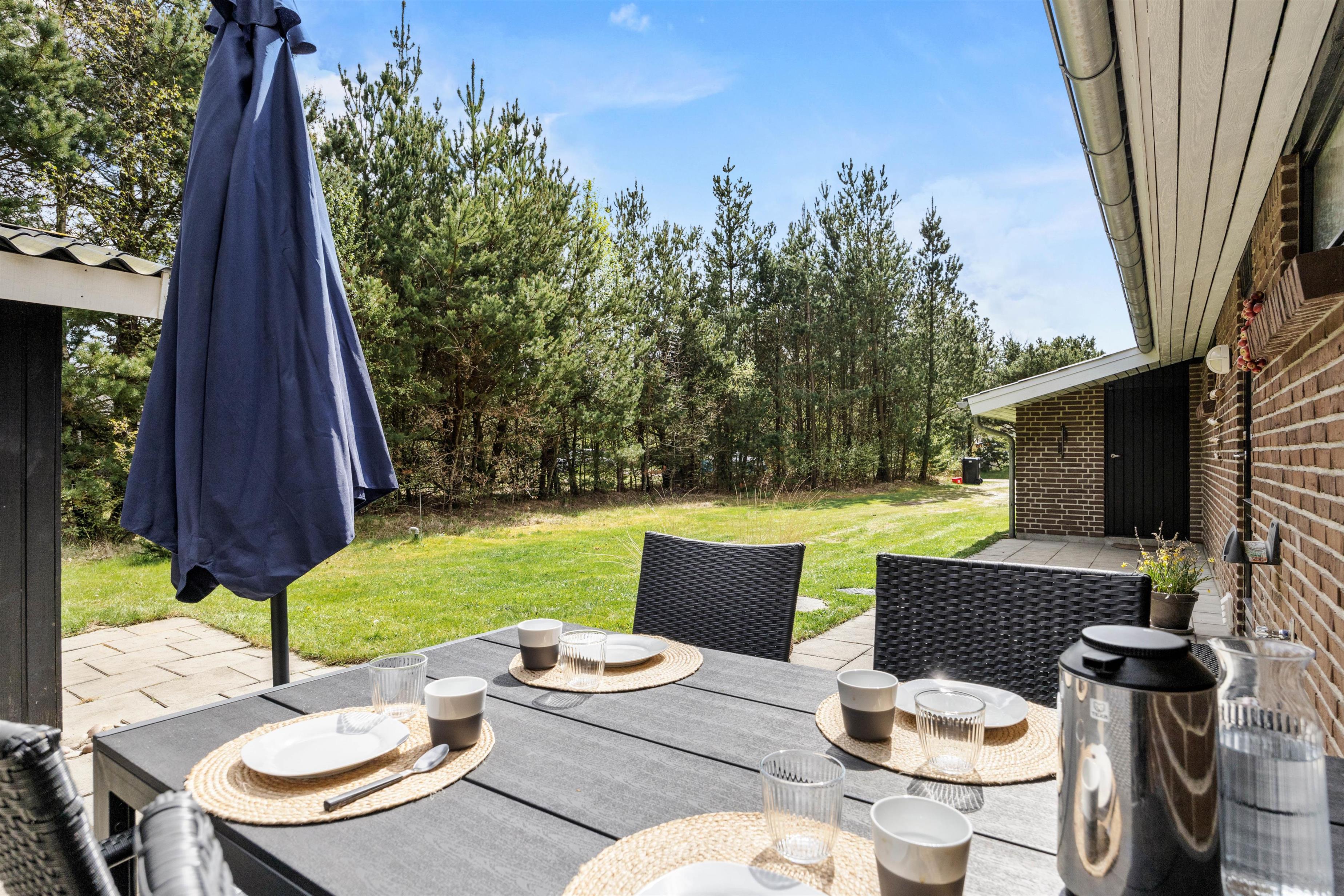Udearealet ved sommerhuset er perfekt til skønne aftner og aktiviteter for alle aldre. Den overdækkede terrasse giver jer muligheden for at nyde jeres måltider med udsigt over den skønne natur, uanset vejret. Tænd op i grillen og glæd jer til at tilberede lækre måltider, mens duftene fra maden fylder luften og vækker appetitten.