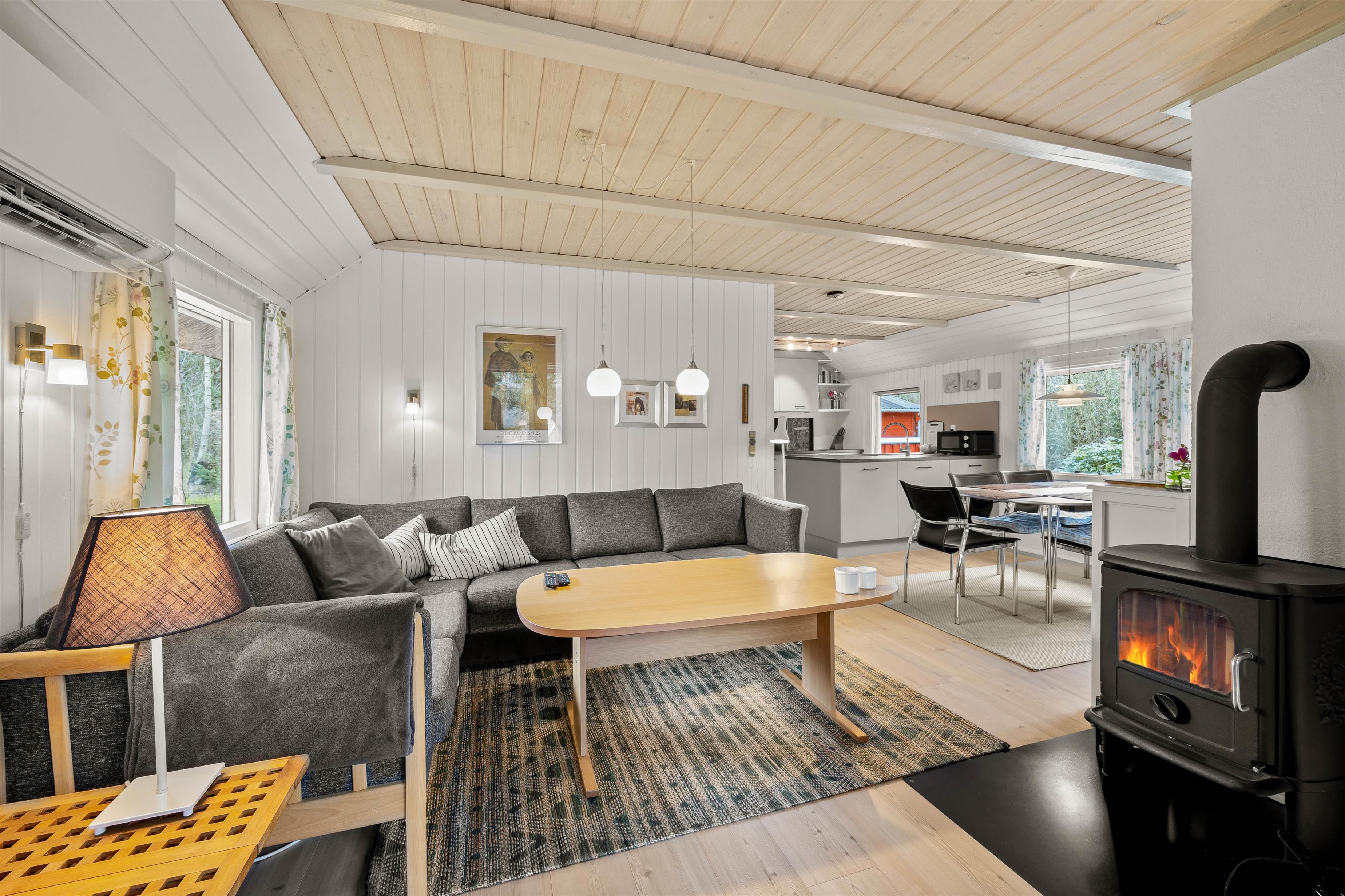 Den åbne stue- og spiseafdeling ligger i forbindelse med det veludstyrede køkken, hvor dagens måltider uden besvær kan blive tilberedt. I den hyggelige sofaafdeling står brændeovnen klar til at sprede varme og feriestemning, specielt i den kolde vintertid.