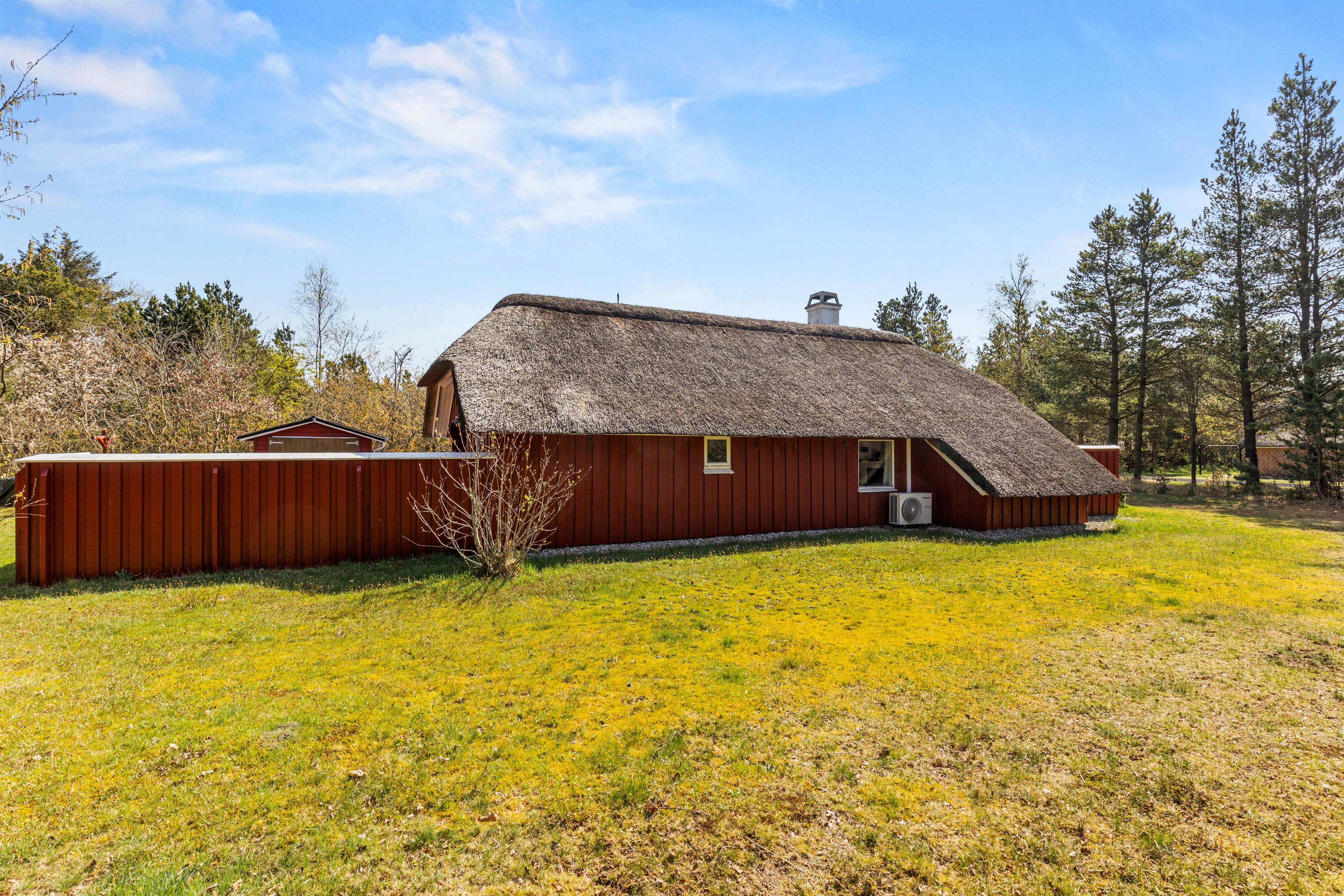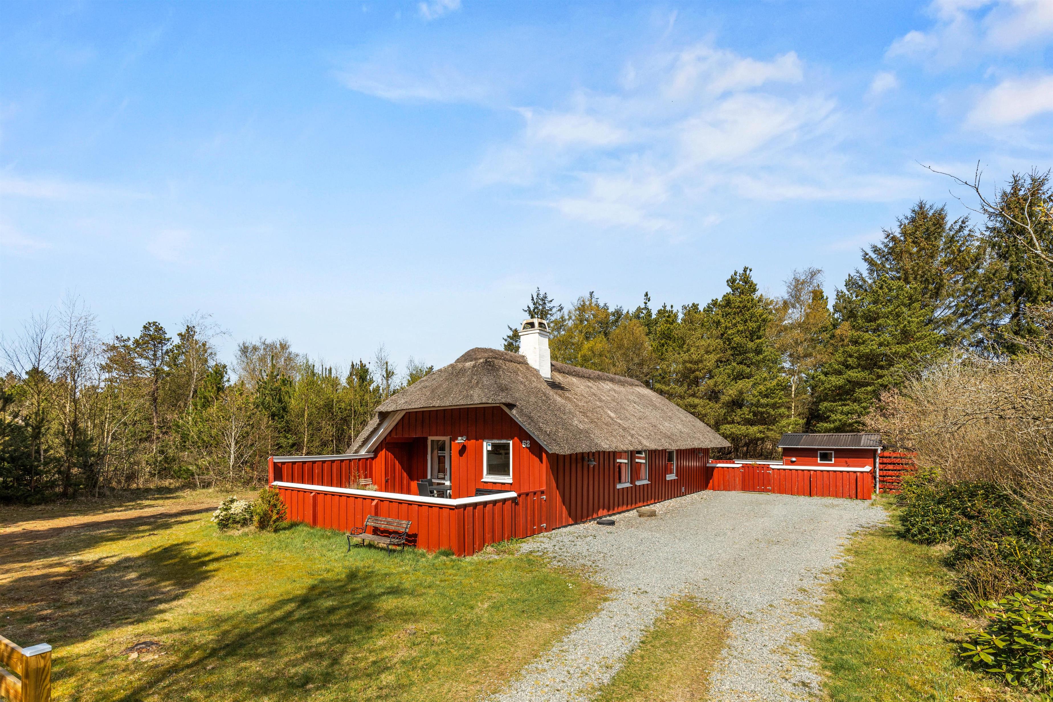 I en varm rød farve byder dette hyggelige stråtagshus jer velkommen i dets grønne omgivelser. Her kan I holde en dejlig ferie med op til 6 personer. Brændeovn og sauna sørger for ekstra wellness og afslapning.