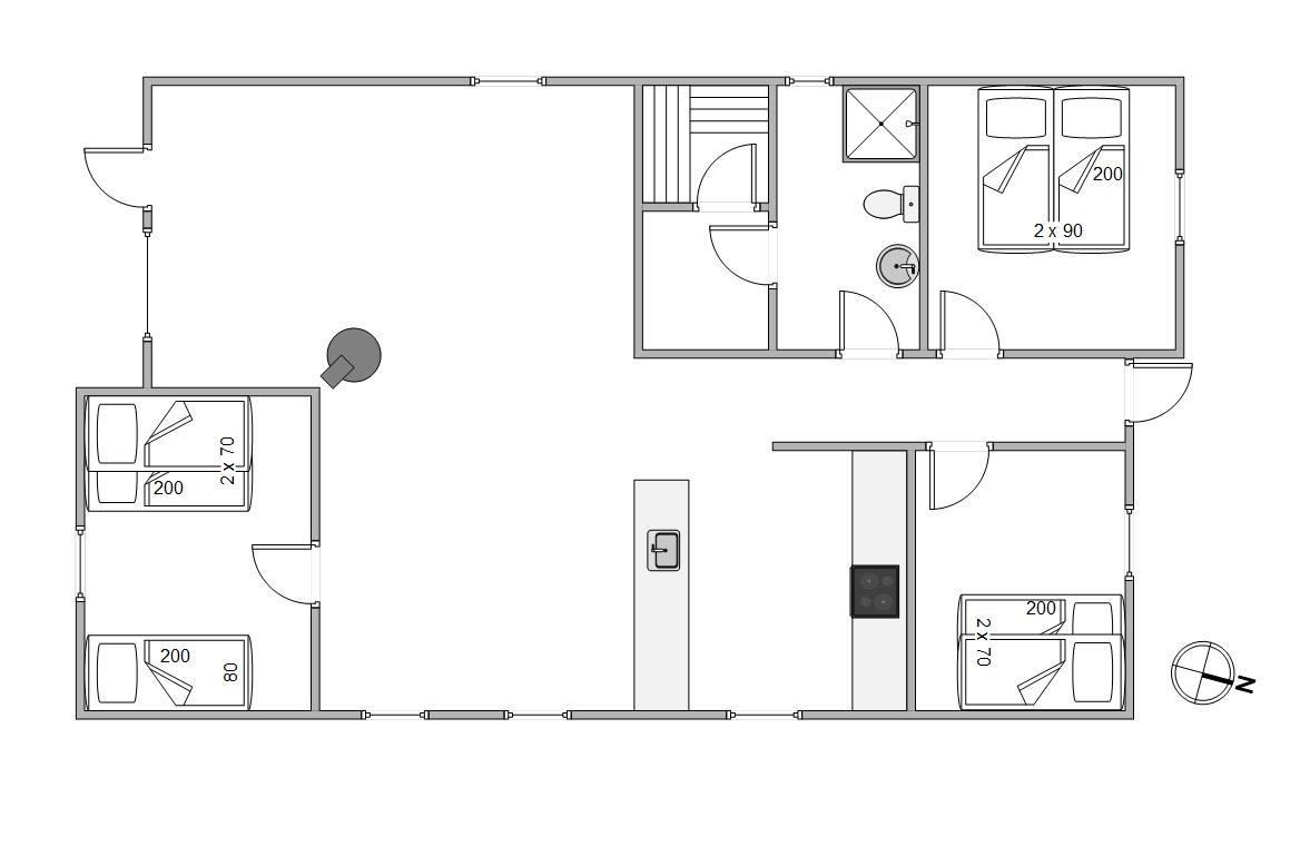 2. soverum/sengestørrelser2x70x200 + 80x200