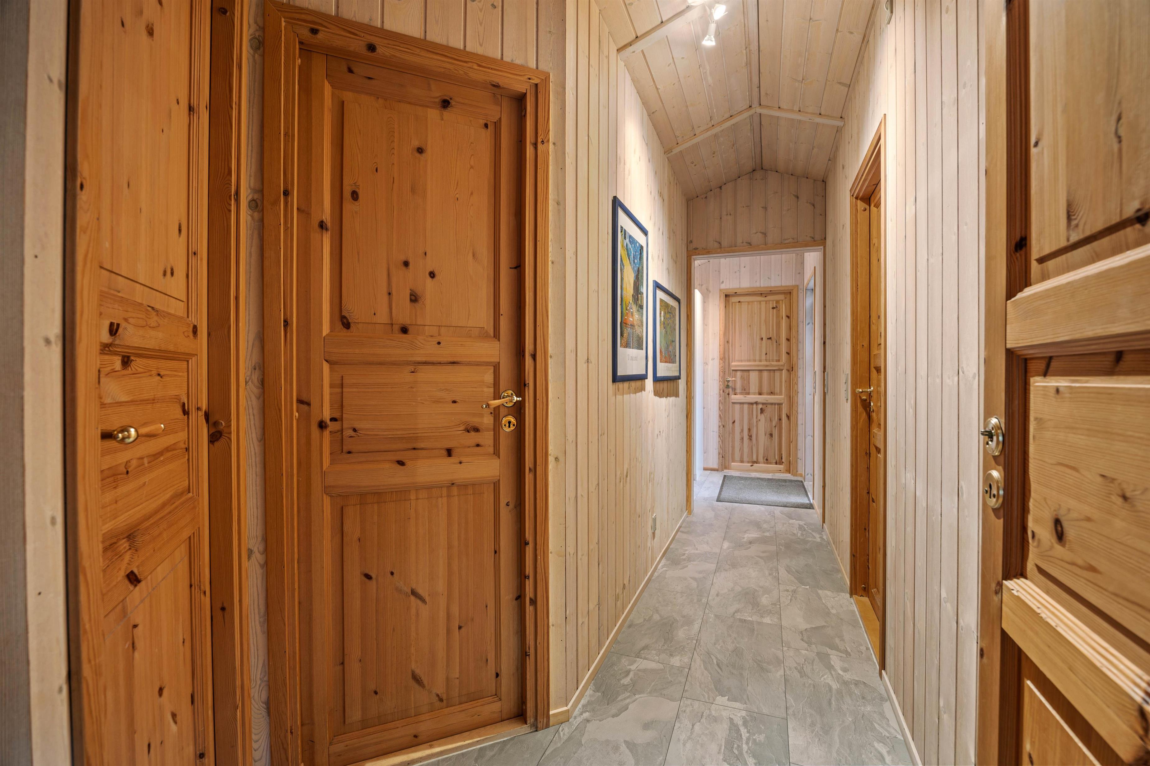 Ved ankomsten mødes I af en indbydende entre, hvor en praktisk tørretumbler og vaskemaskine står klar til at lette jeres ophold. Her kan I nemt holde tøjet rent og tørt, selv under længere ferier.
