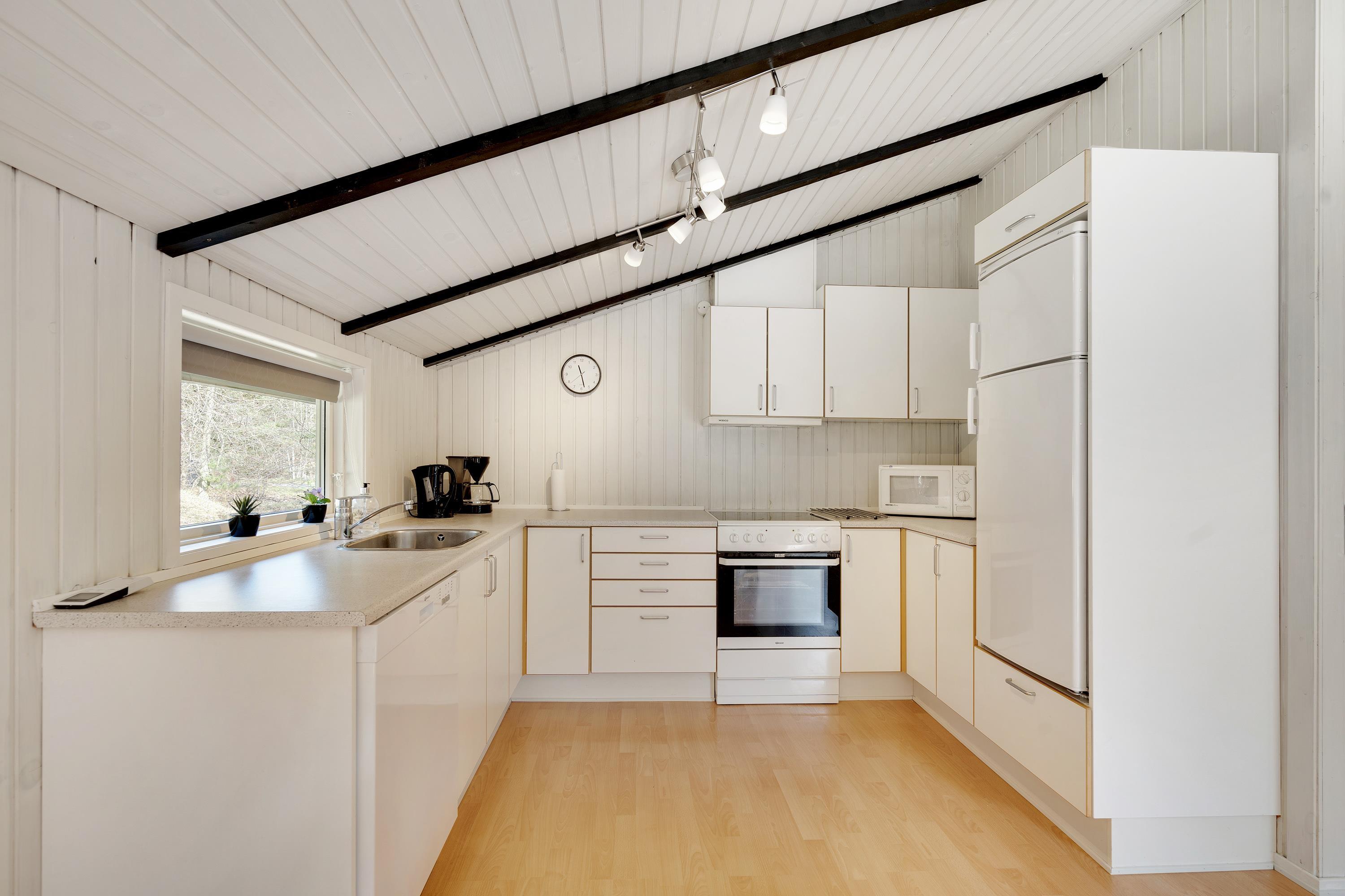 Kirkeflod 68 er et hyggeligt indrettet feriehus til 6 personer. Der er 2 soverum med dobbeltsenge og 1 med 2 enkeltsenge, badeværelset er med bruser. I køkkenet er der opvaskemaskine, så der er mere tid til de vigtige ting, som familiespil ved det store spisebord eller at slappe af på den store bekvemme sofa med en god film i fjernsynet. Lyse vægge med bjælkeværk og den klassiske brændeovn sørger for en moderne men stadig varm og hyggelig stemning, og med luft-til-luft varmepumpe kan I med god samvittighed have det dejligt varmt i huset.