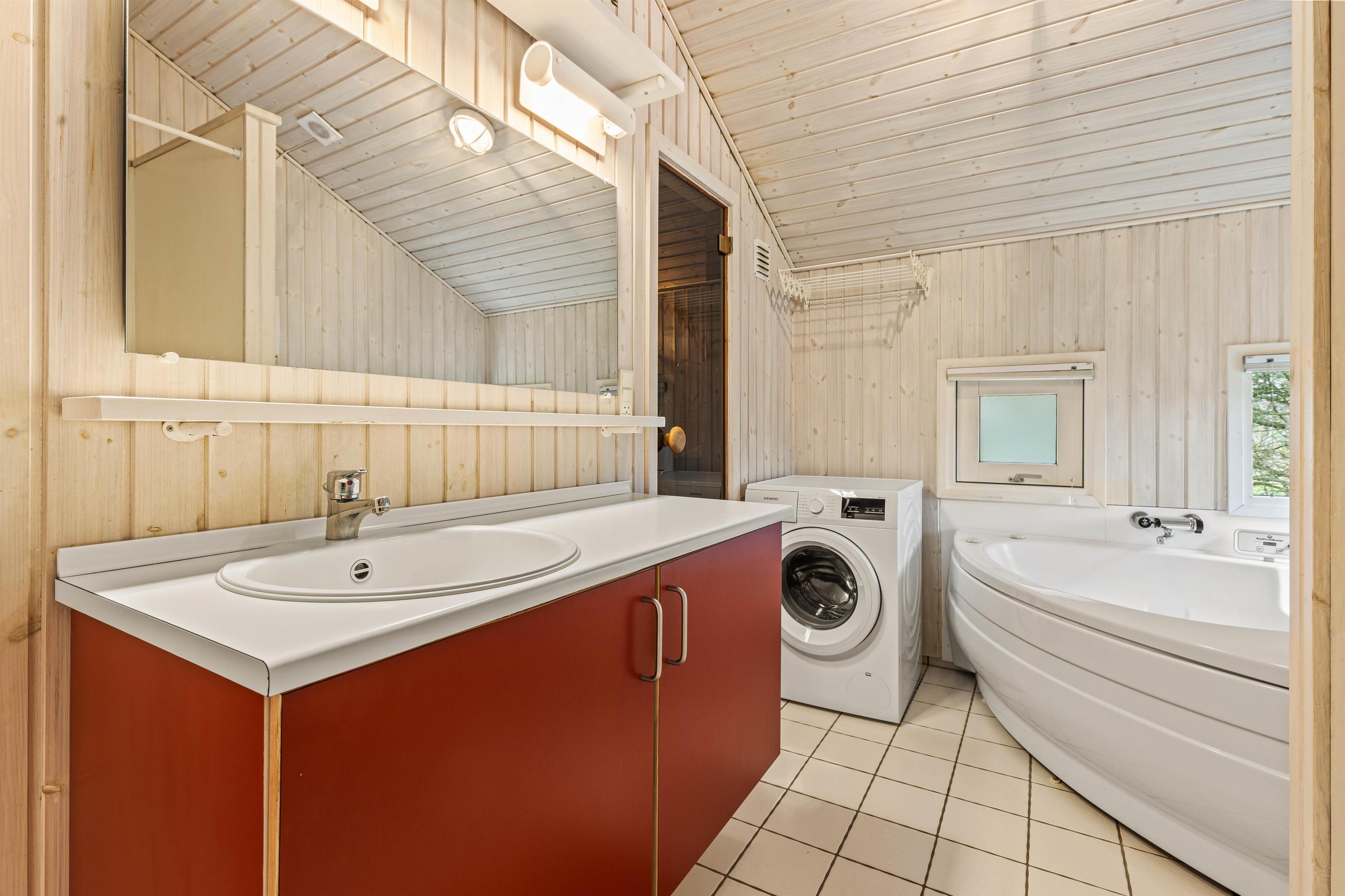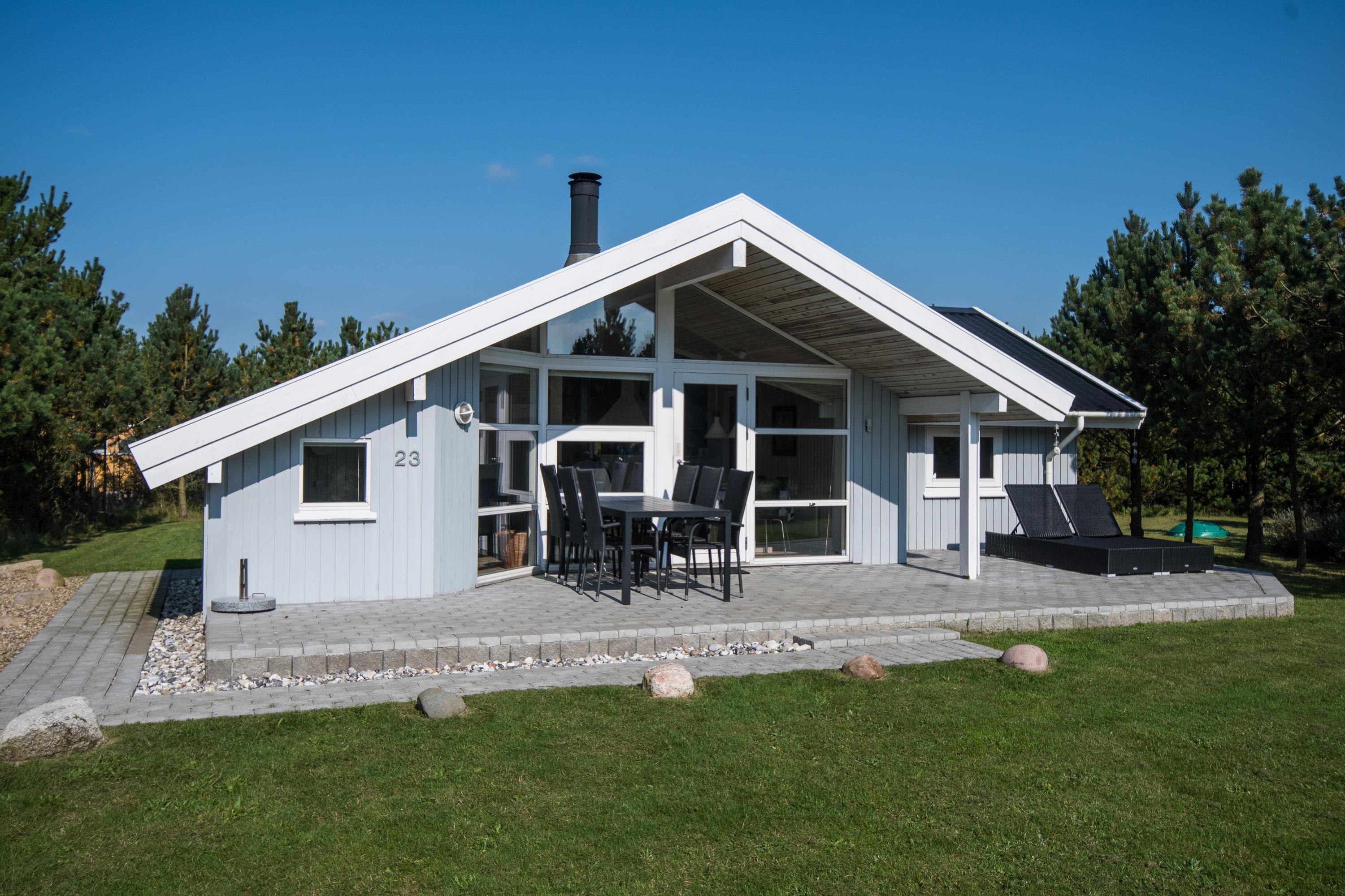 Det hyggelige ikke-ryger hus står skønt indrammet af skovens grønne træer på Skovvang 23 og emmer af ægte sommerhusferie. Her er det perfekte hjem for ferien - både med sauna og spabad, og endda med plads til hundene.