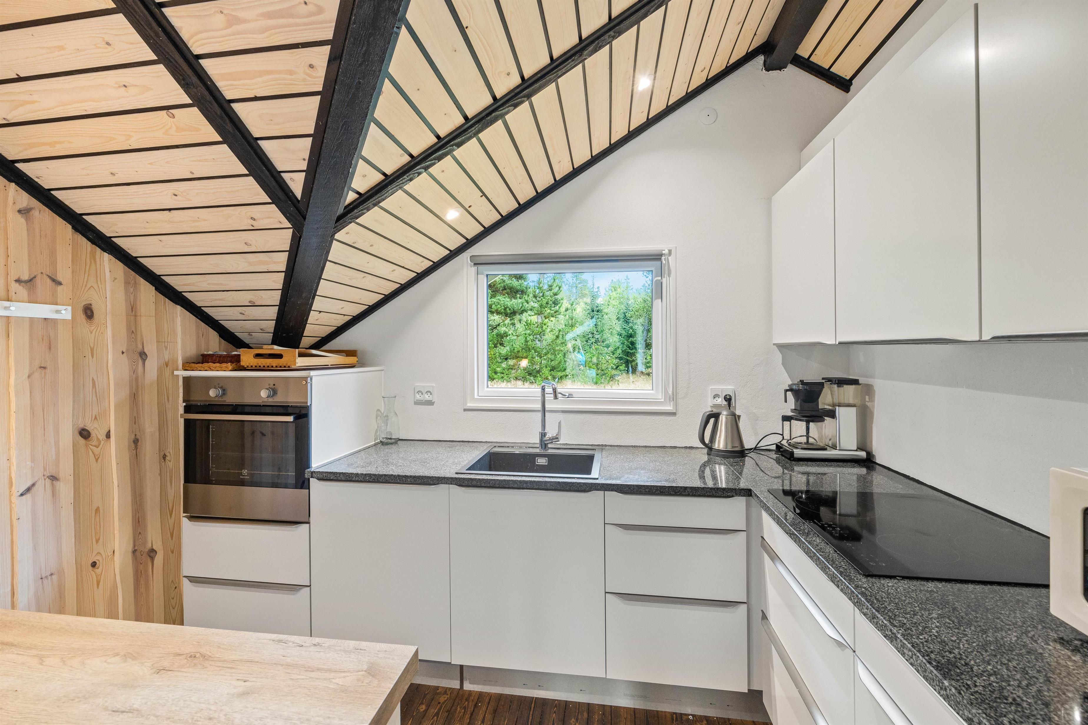 Ferieboligen, der tilbyder plads til 5 personer er indrettet med 3 soveværelser, køkken, opholdsrum med spiseplads og hyggekrog med brændeovn, hvor I kan nyde aftentimerne foran de knitrende flammer og mærke den dejlige varme. Sommerhuset opvarmes udover brændeovnen med en energibesparende varmepumpe.