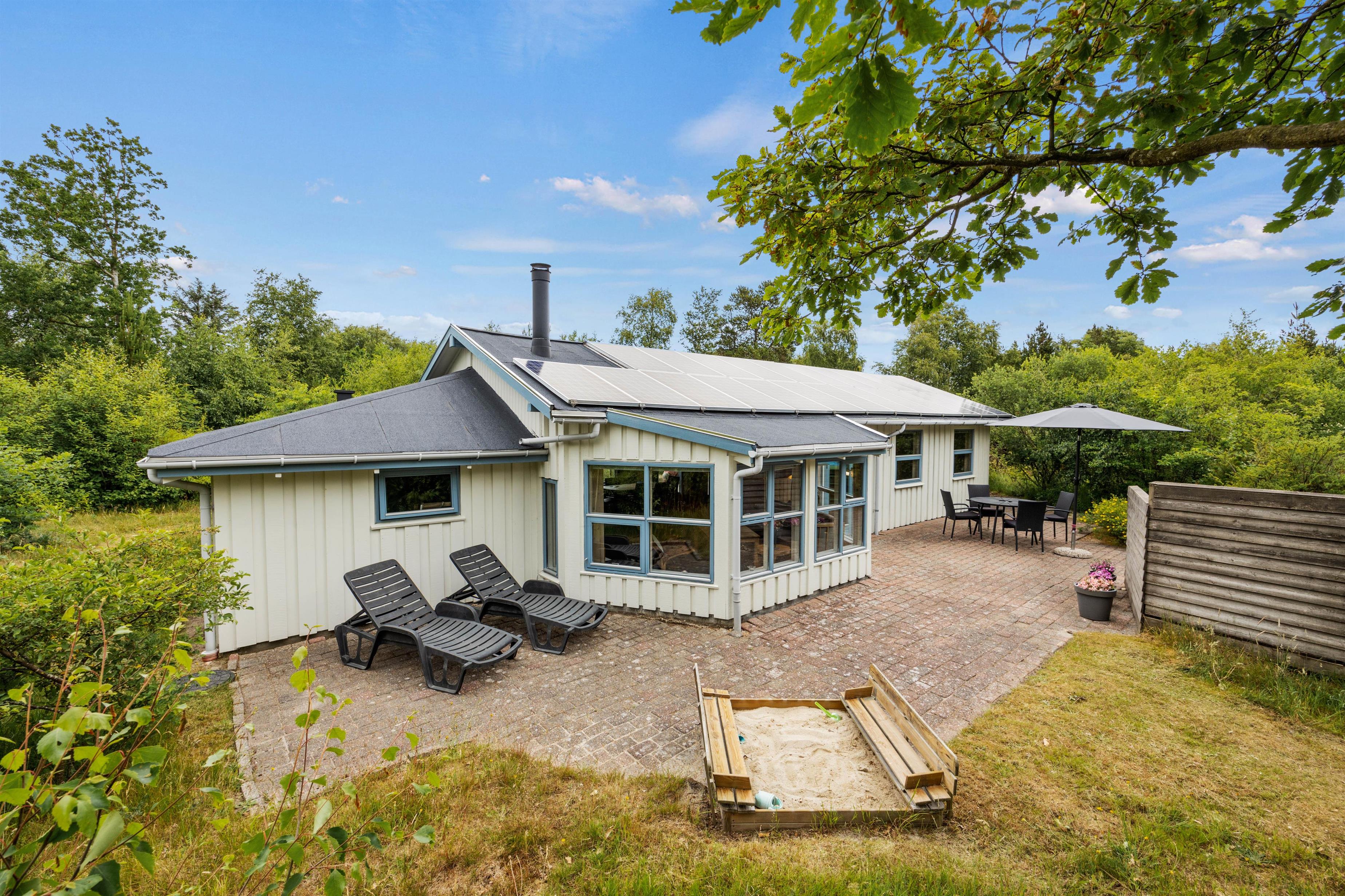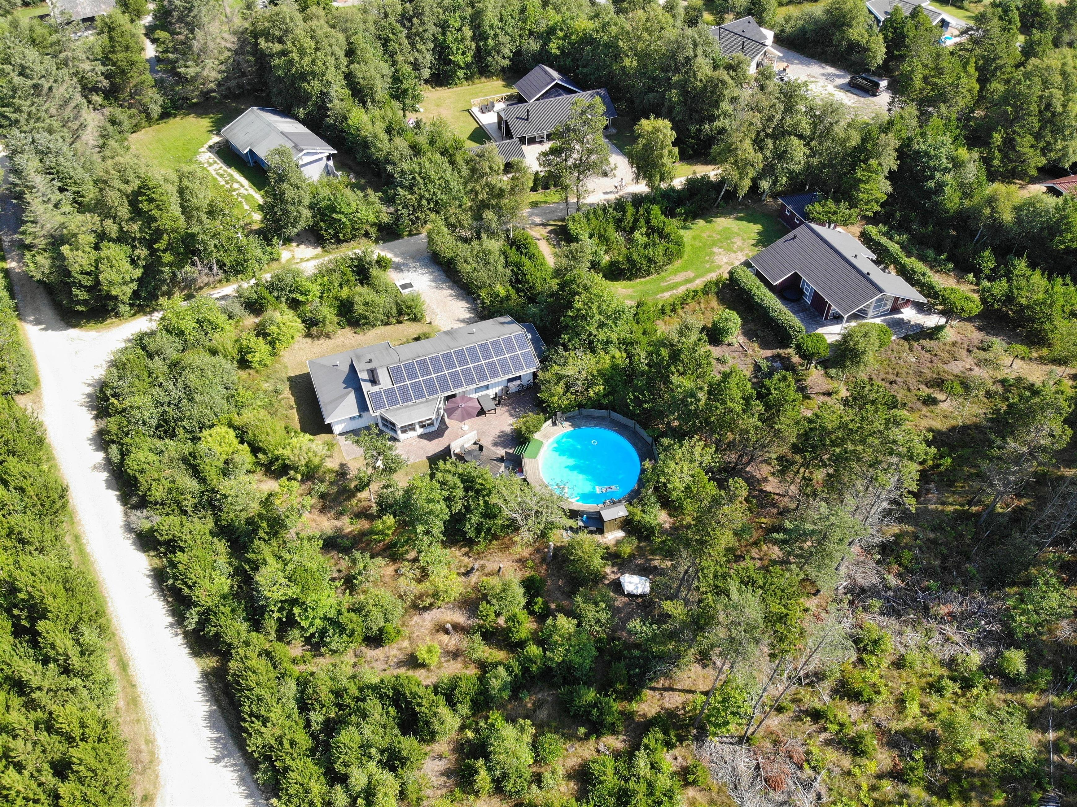 Omgivet af skovens træer, blandt brændestabler og stier, finder I dette hyggelige poolhus - med udendørs svømmebassin, som kan benyttes i hovedsæsonen (30.5.-29.8.2026). Sommerhuset ligger skønt med få minutters gang til indkøbsmulighed og få minutters kørsel fra stranden, og det har ikke kun plads til hele familien, men også familiens hund.