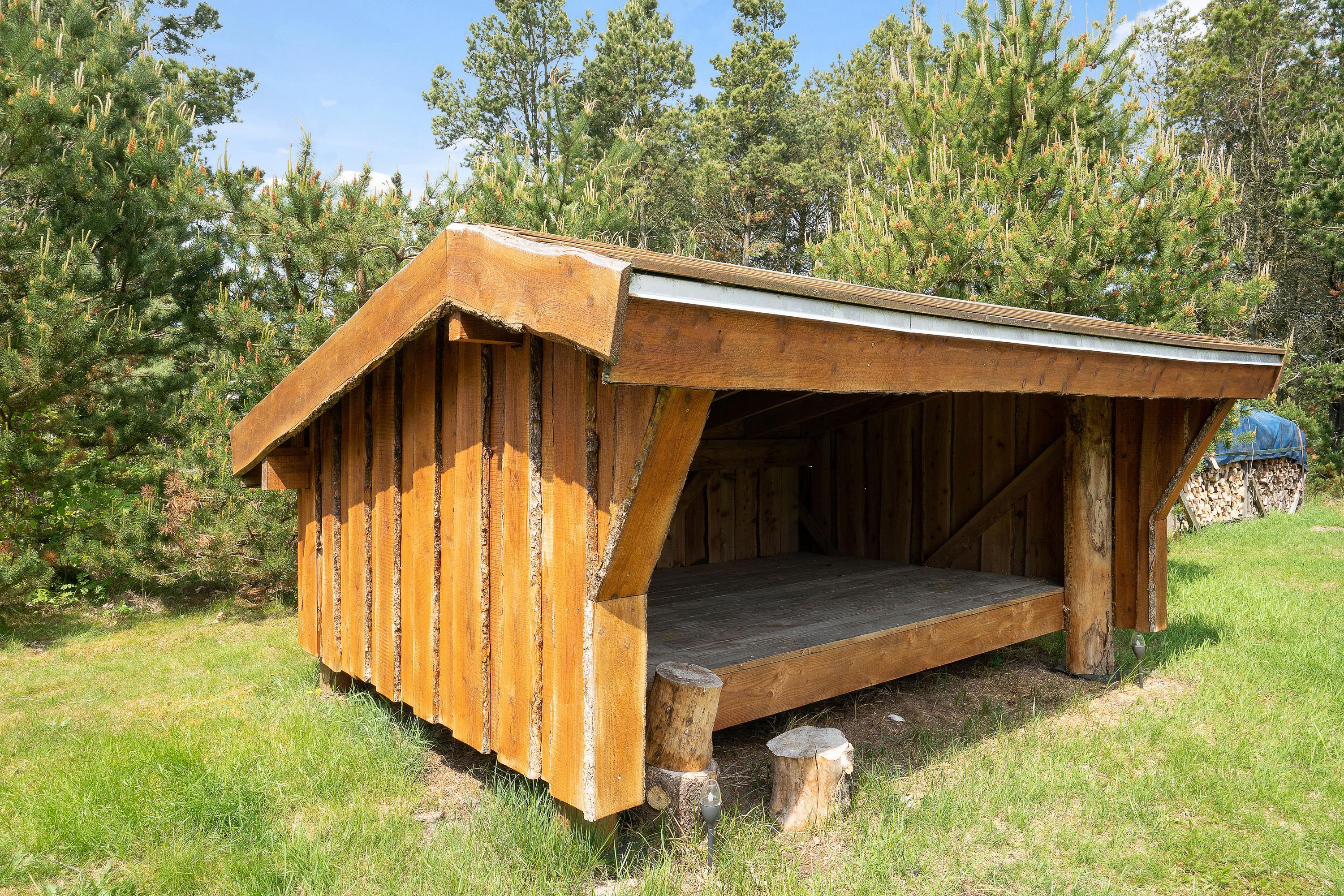 Kunne du tænke dig at bruge en nat udendørs, men har slet ikke lyst til camping og telte? Her i Houstrup på Jens Thomsensvej 2 kan du prøve den mere behagelige variant. Et shelter er ikke kun et godt sted for børnene at lege, men også til overnatninger i det fri. Skulle det blive for køligt i løbet af natten, kan I være tilbage i huset med bare et par skridt og hoppe tilbage i den lune seng.