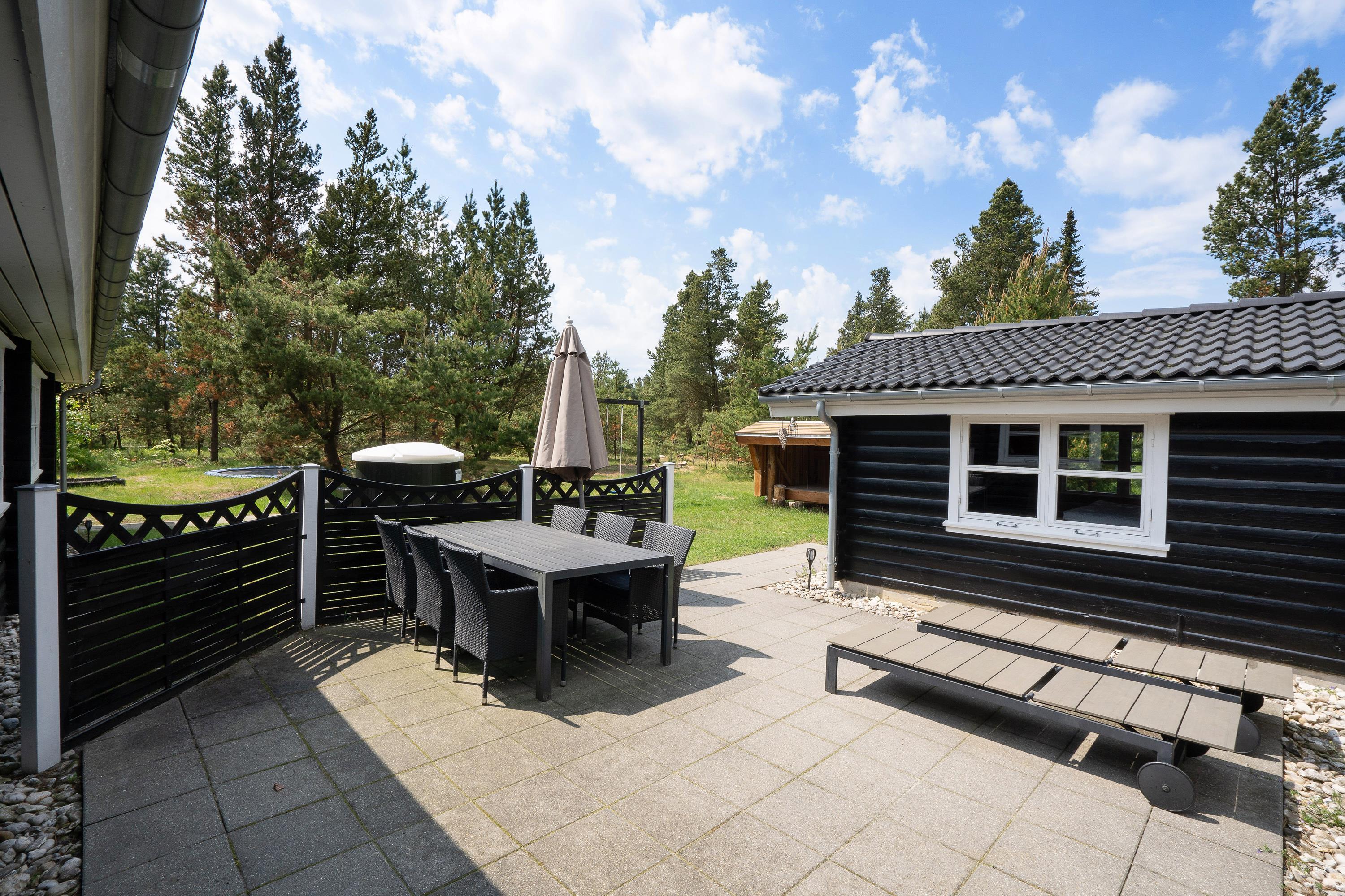 Der er flere terrasser omkring det flotte feriehus, hvor I kan finde både solrige og skyggefulde steder, hvilket især er en fordel på de varme sommerdage. I træerne og buskene, der omgiver ejendommen, vil de mange forskellige skovfugle kvidre jer en sang. Ræve, kaniner og andre af skovens dyr har også hjemme her.