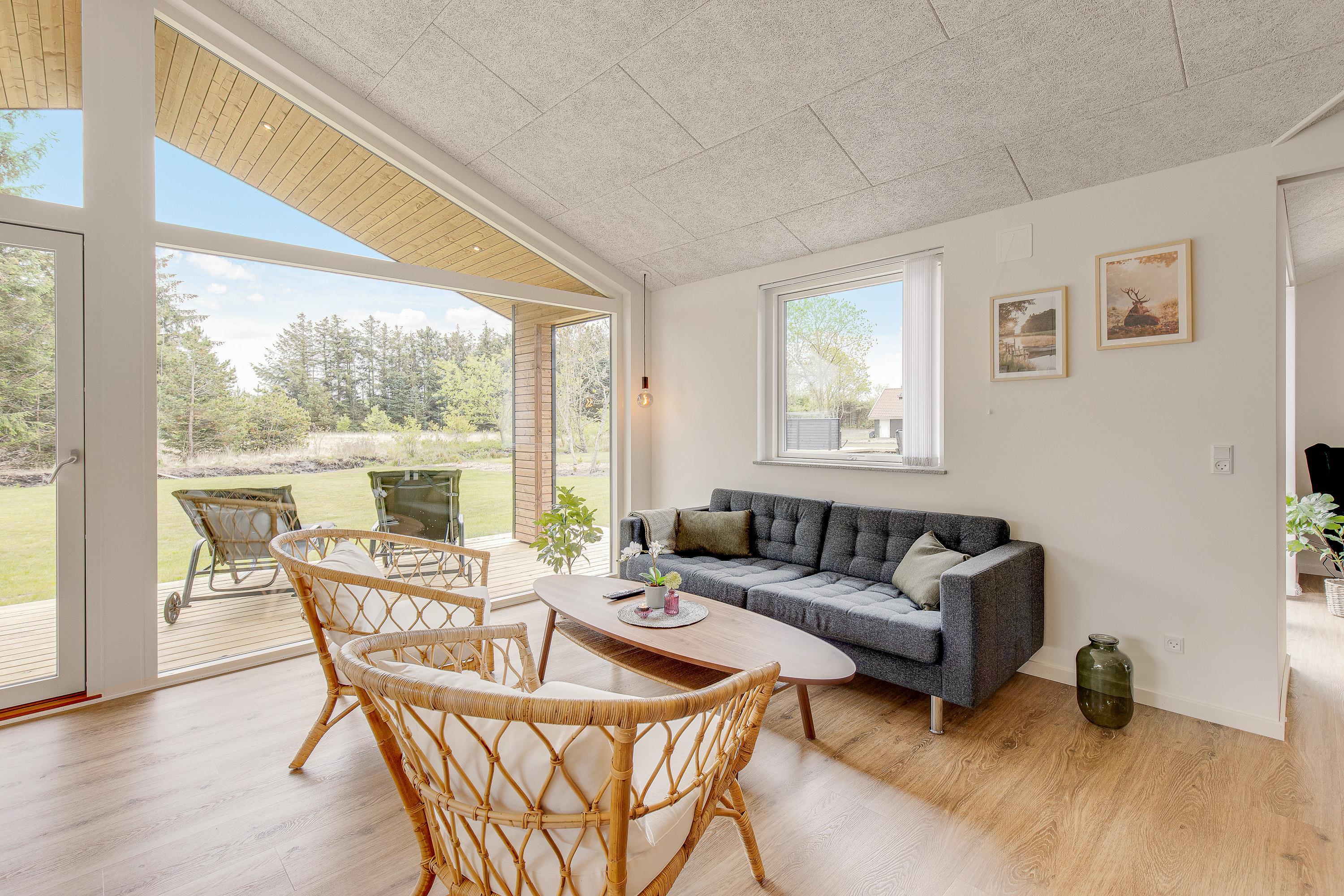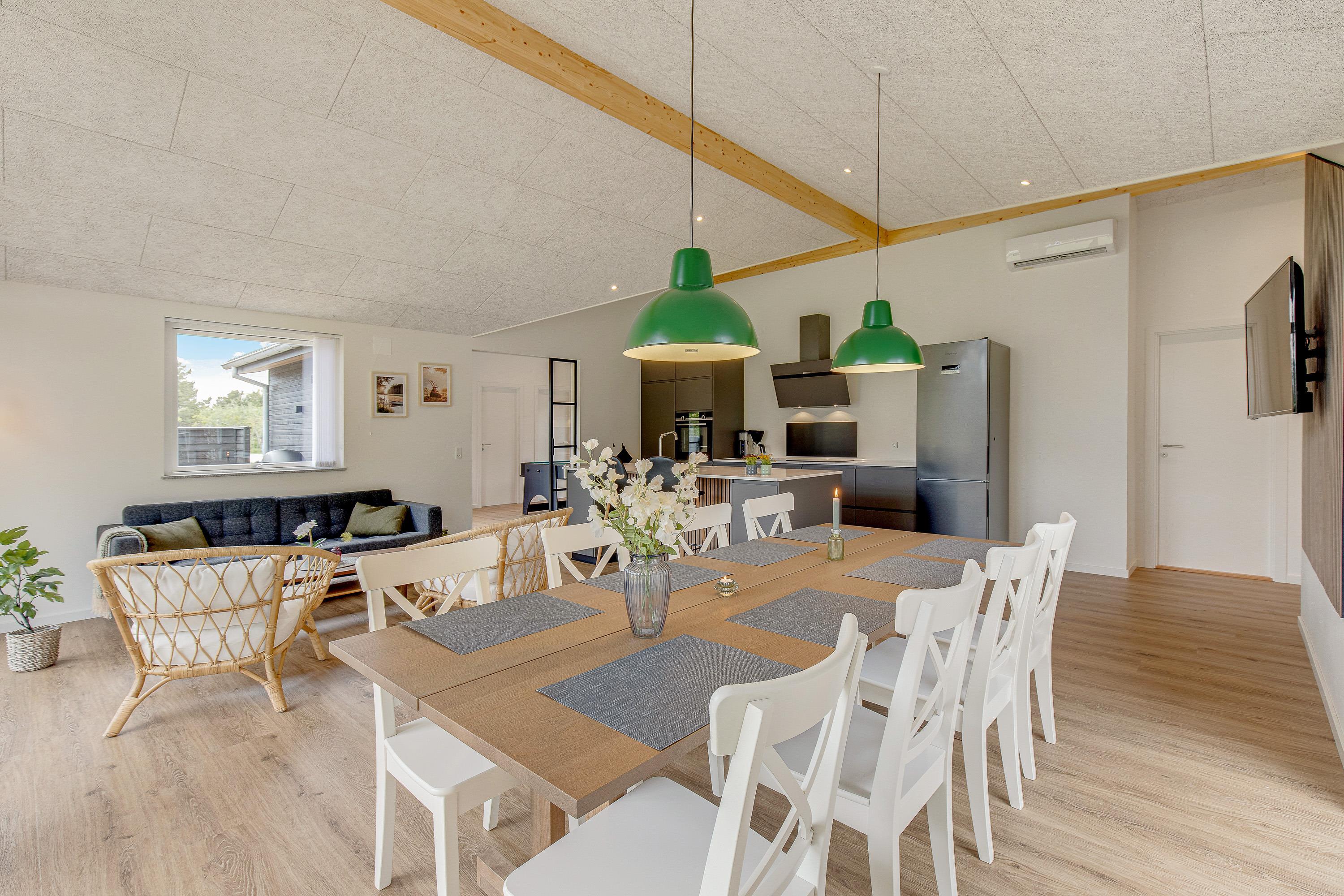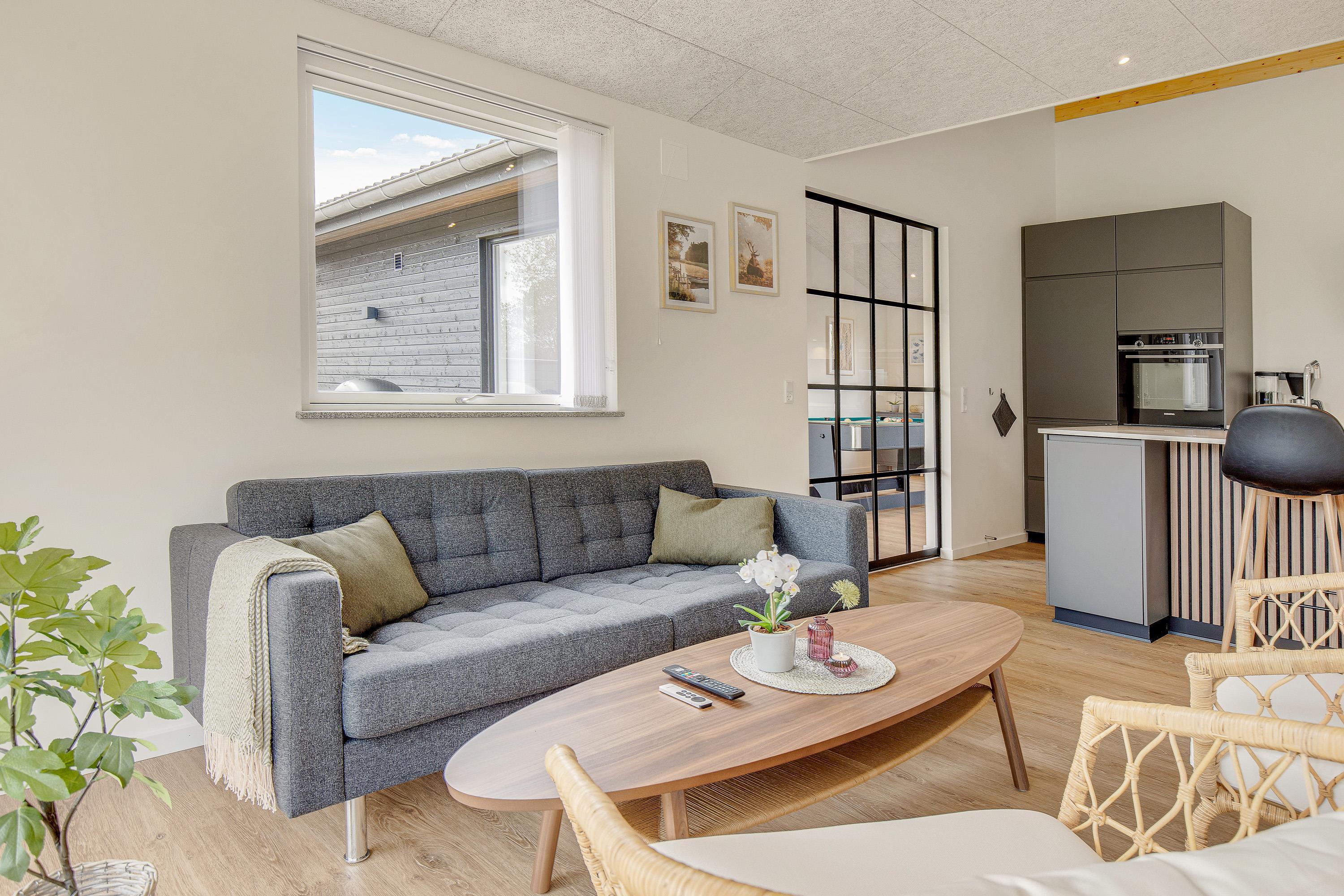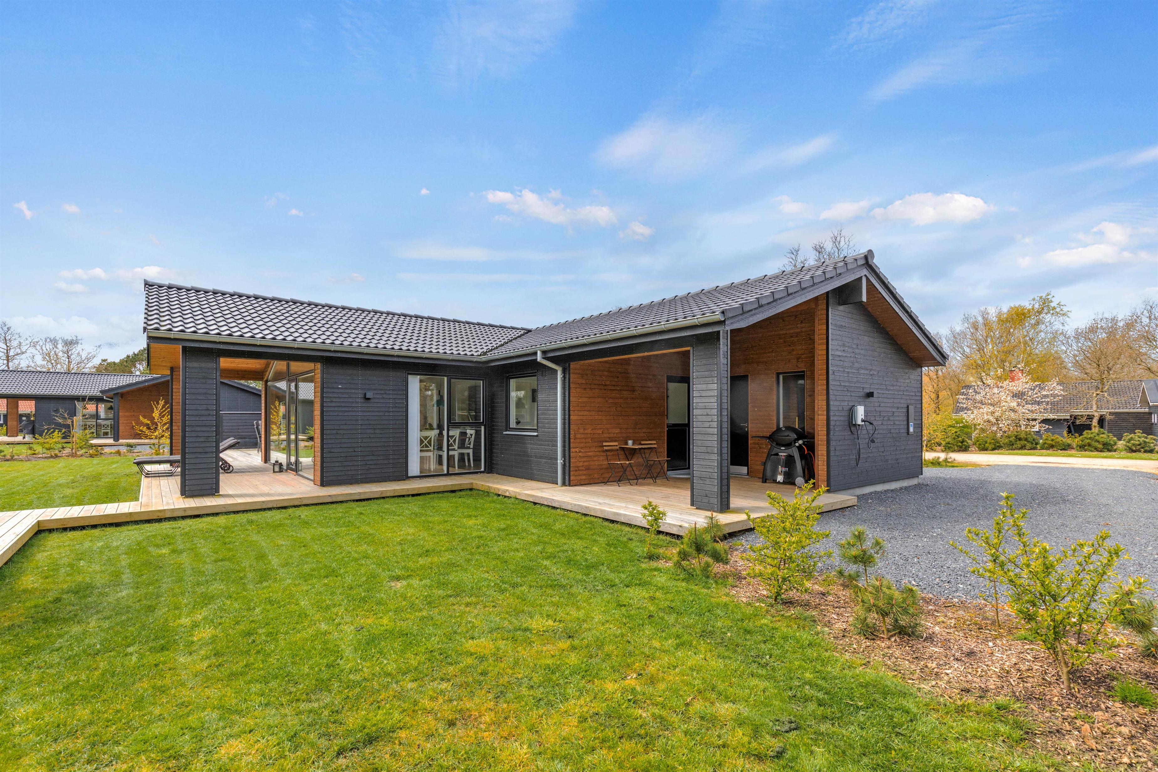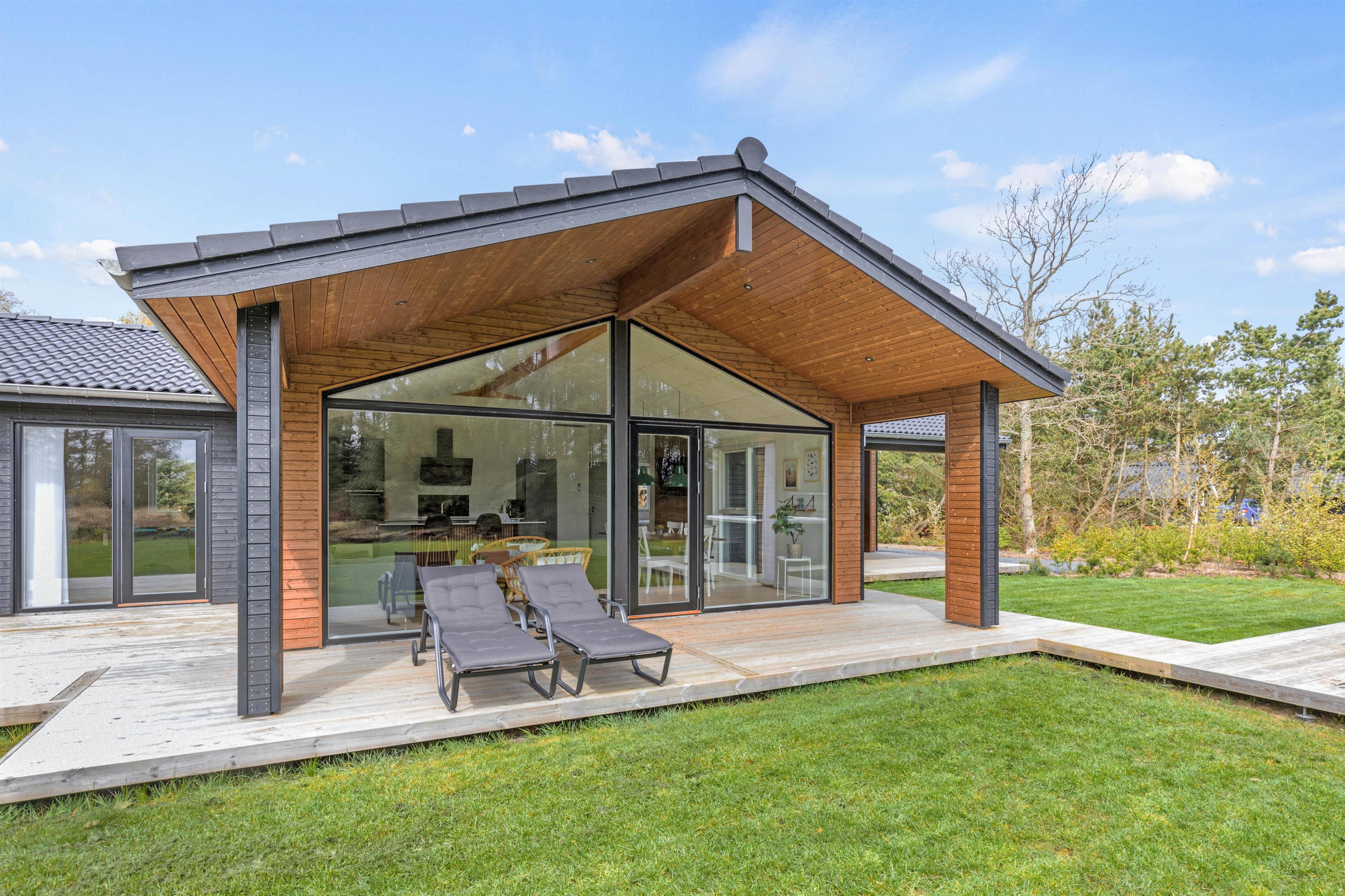 Sommerhuset, der blev opført 2021, har en moderne og smagfuld indretning. På det i alt 127 m² store boligareal er der plads nok til, at op til 8 personer kan tilbringe en skøn sommerhusferie sammen. Jeres hund er også meget velkommen i dette feriehus. Dette moderne sommerhus opvarmes af en varmepumpe - energibesparende og miljøvenligt. Der er masser af fantastiske legetøj til dine børn, så de kommer bestemt ikke til at kede sig her.