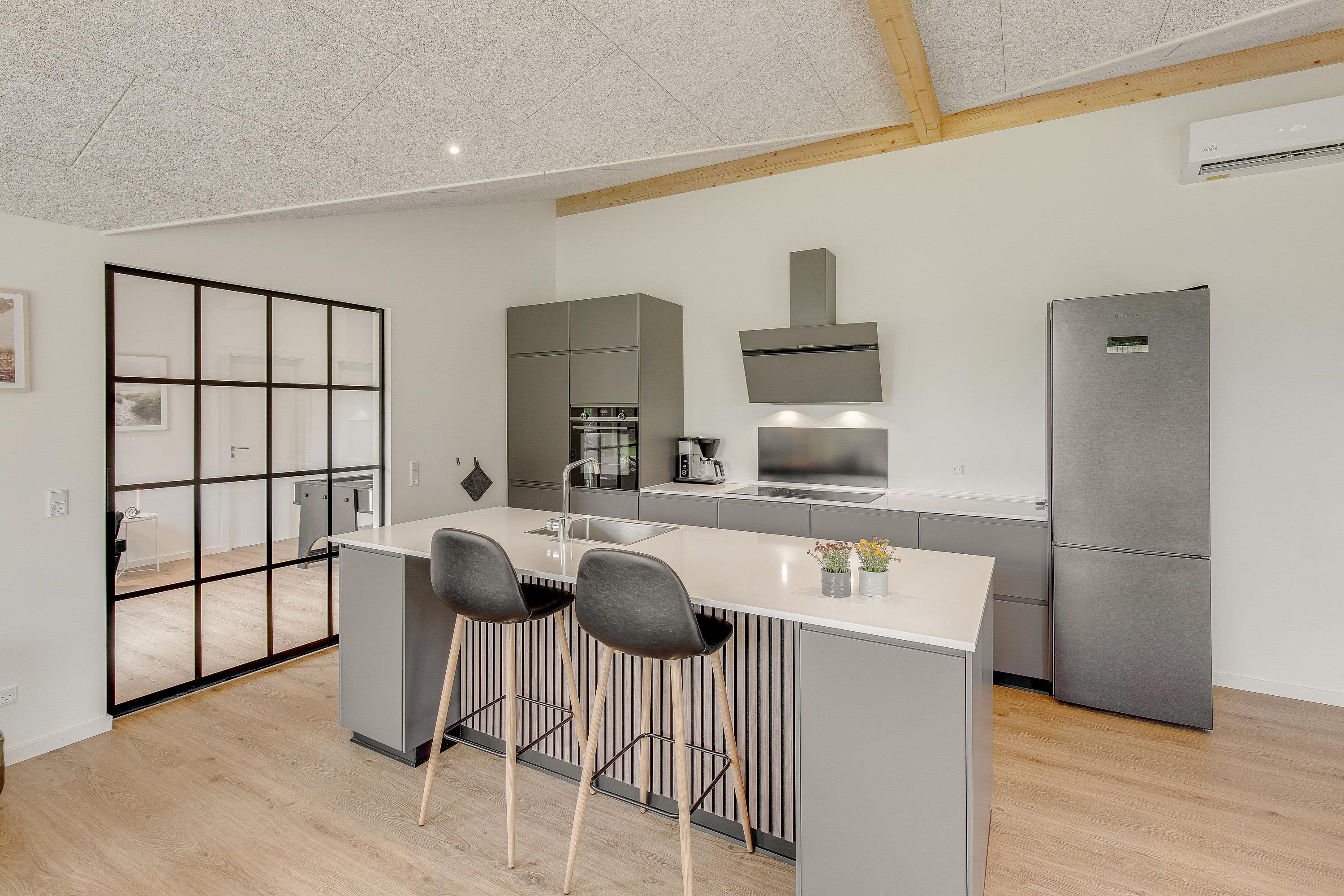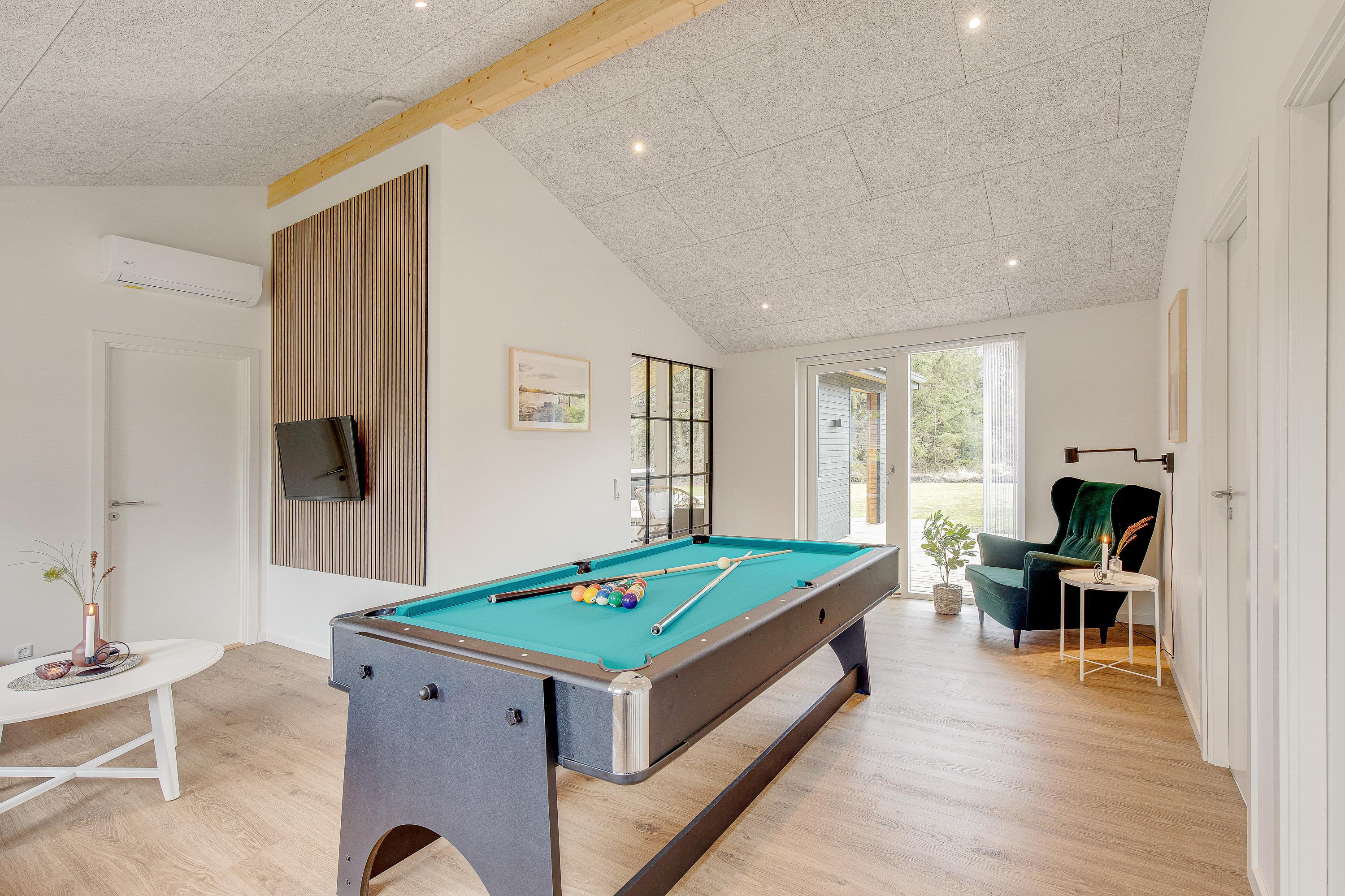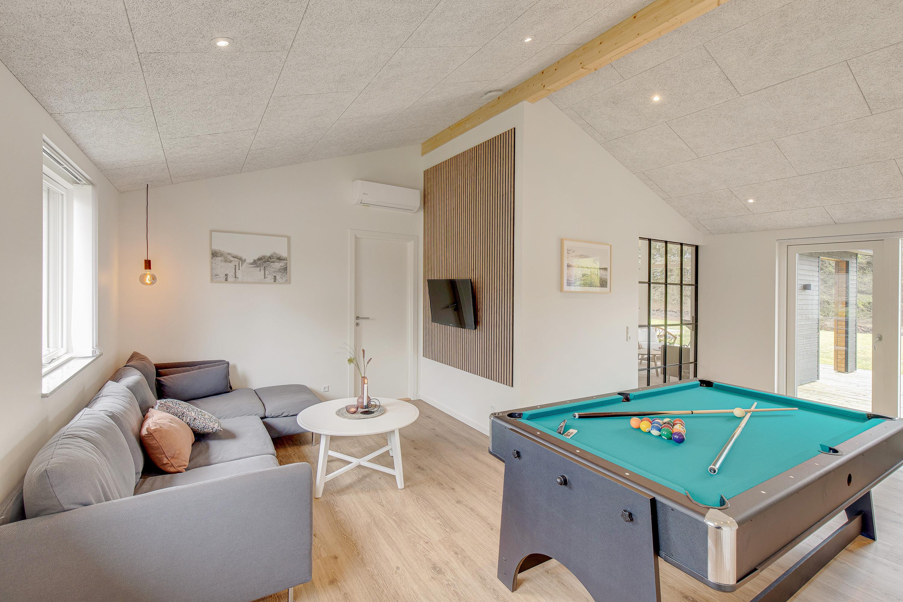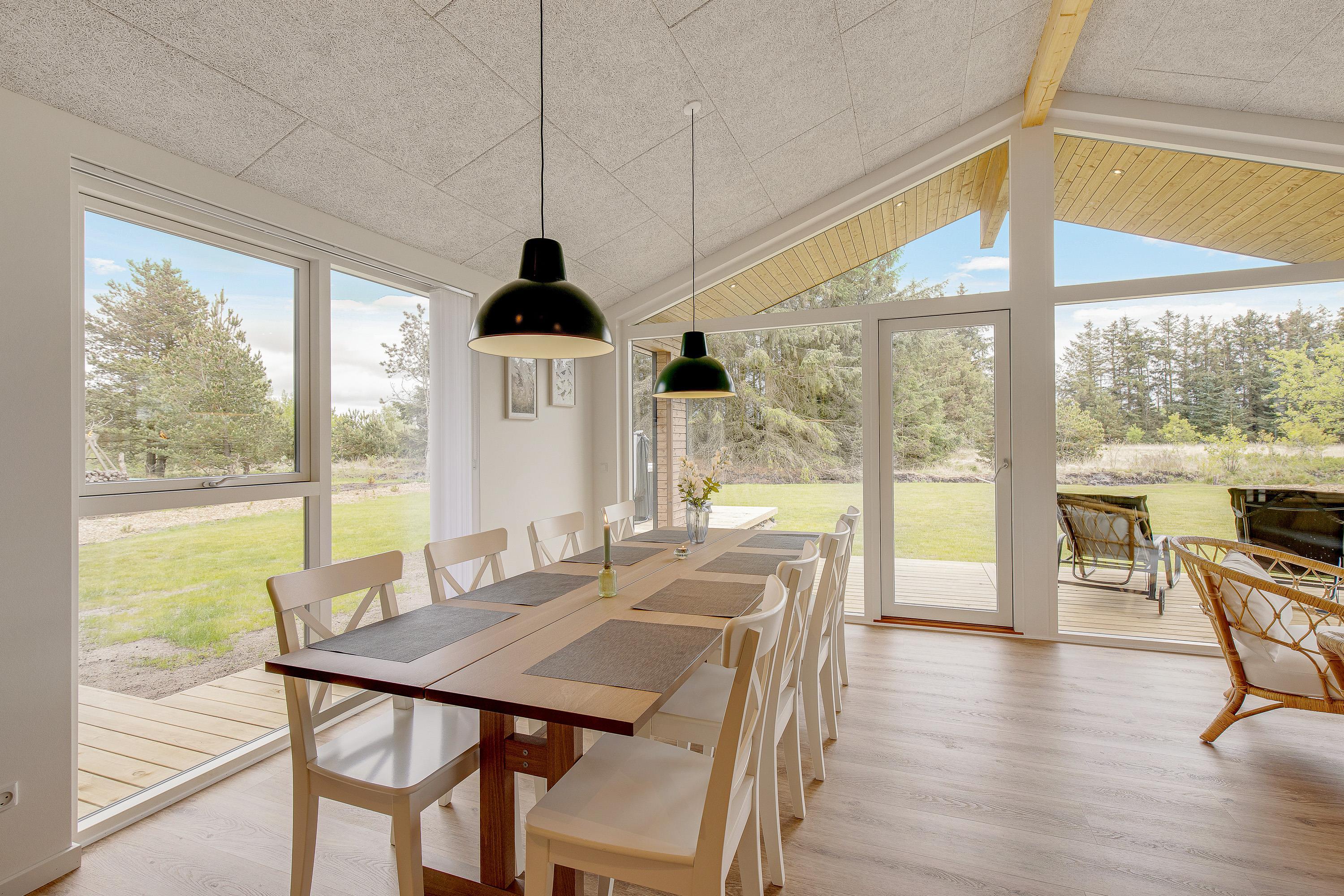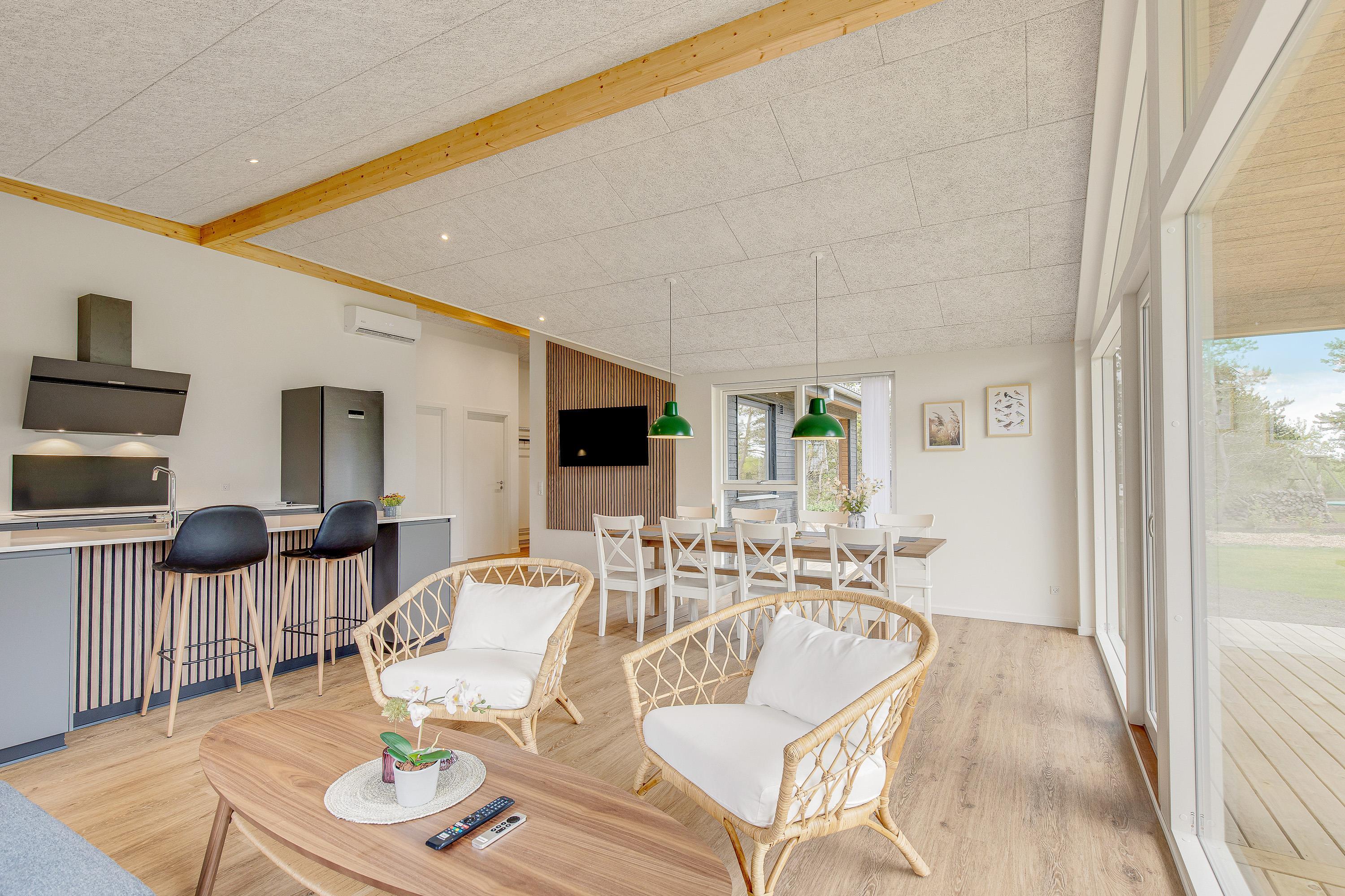 Sommerhuset, der blev opført 2021, har en moderne og smagfuld indretning. På det i alt 127 m² store boligareal er der plads nok til, at op til 8 personer kan tilbringe en skøn sommerhusferie sammen. Jeres hund er også meget velkommen i dette feriehus. Dette moderne sommerhus opvarmes af en varmepumpe - energibesparende og miljøvenligt. Der er masser af fantastiske legetøj til dine børn, så de kommer bestemt ikke til at kede sig her.