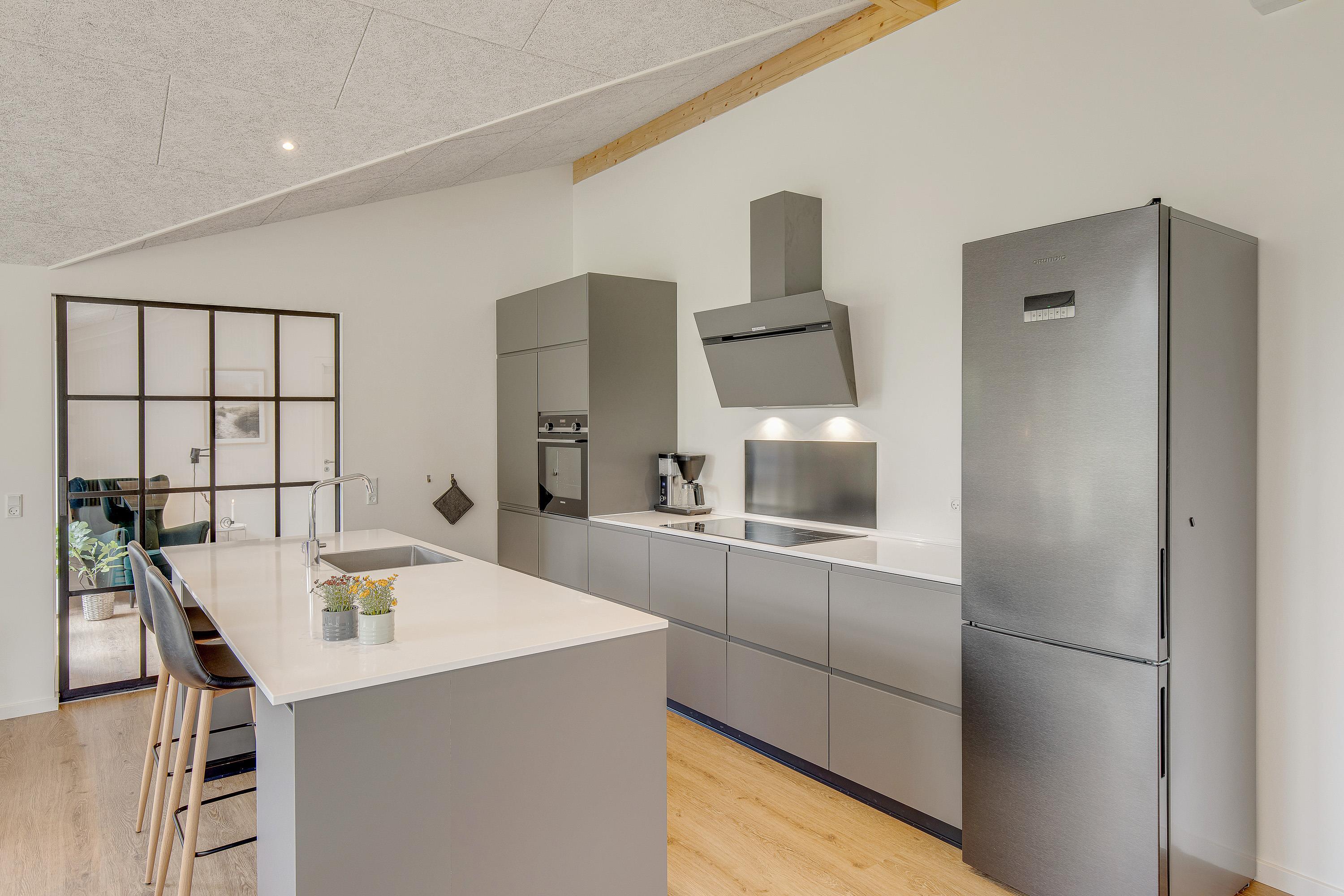Udover det praktiske udstyr som vaskemaskine, tørretumbler og opvaskemaskine, kan I se frem til jeres egen lille wellness-oase i udendørsområdet. Både en udespa og en udendørs sauna står til jeres rådighed for at sikre ren afslapning og uforglemmelige øjeblikke med en beroligende massage fra dysserne, behagelig varme og en fantastisk følelse i kroppen. Forkæl jer selv med en lille pause fra hverdagen og nyd den friske luft fra den danske vesterhavskyst på samme tid.