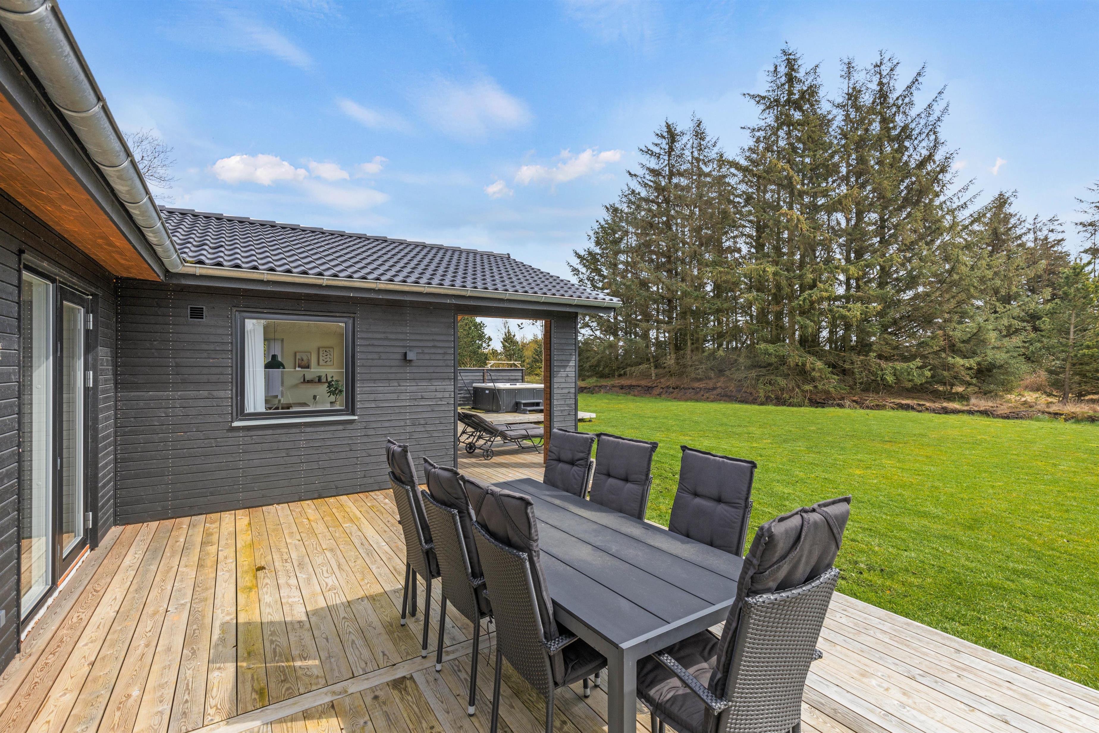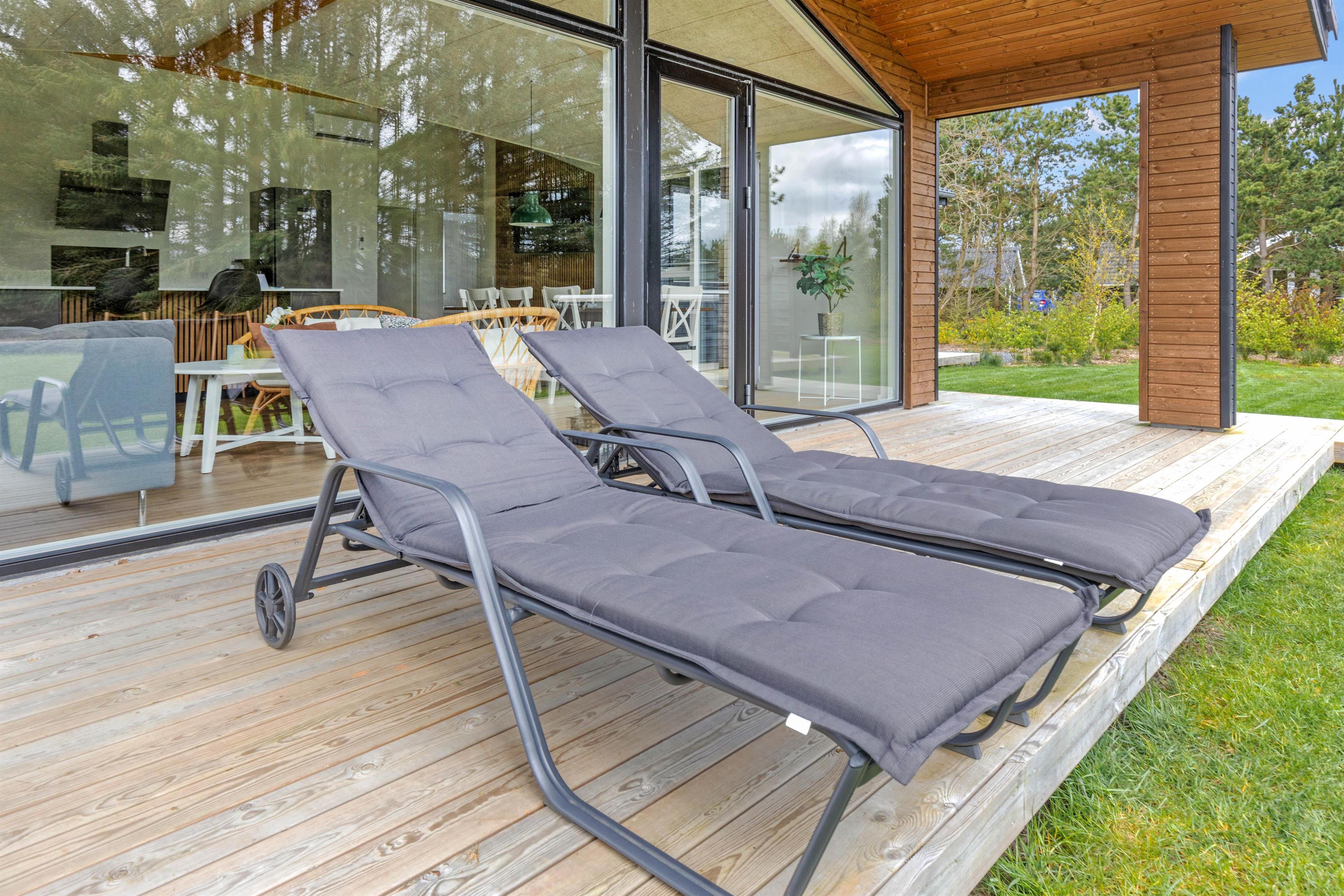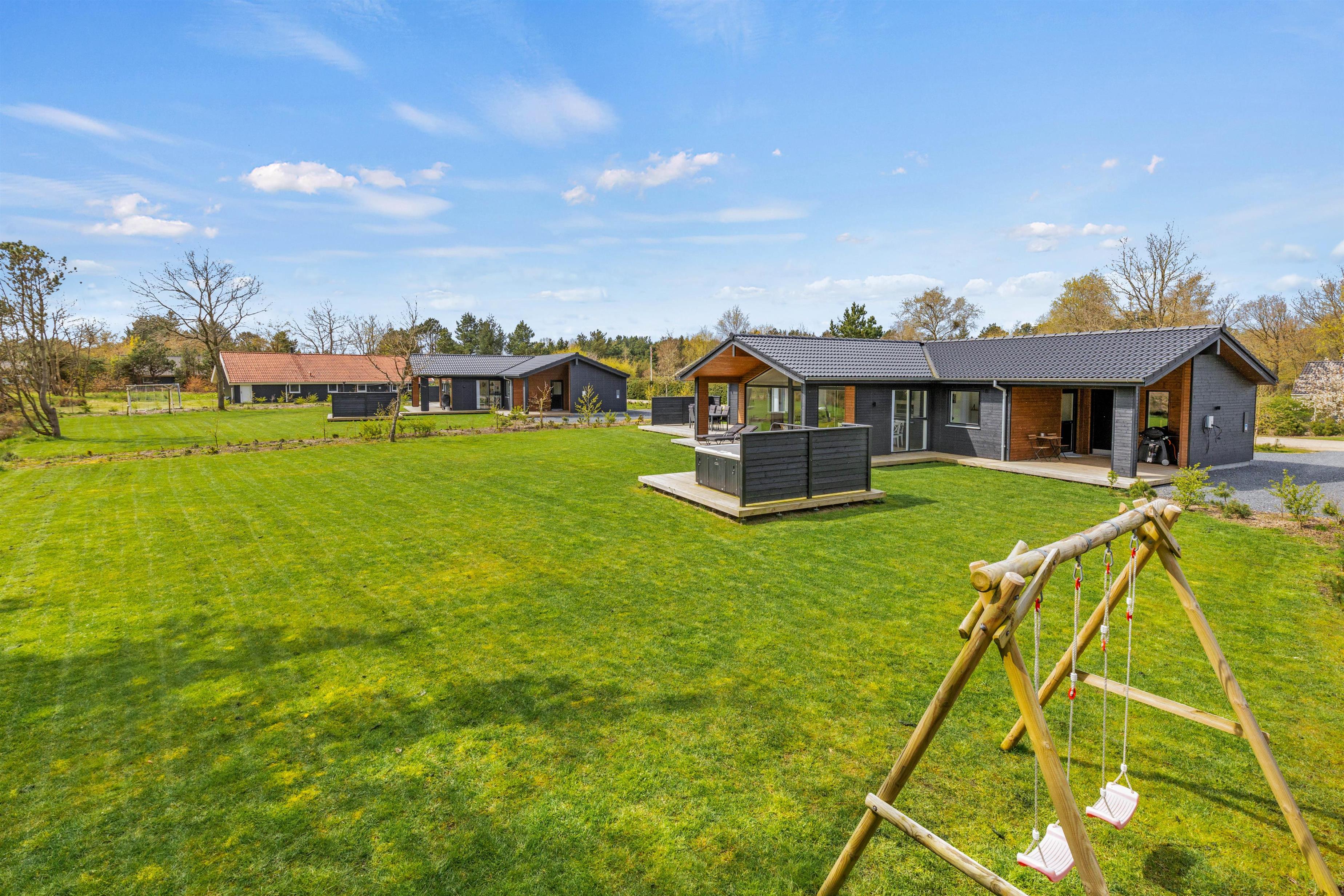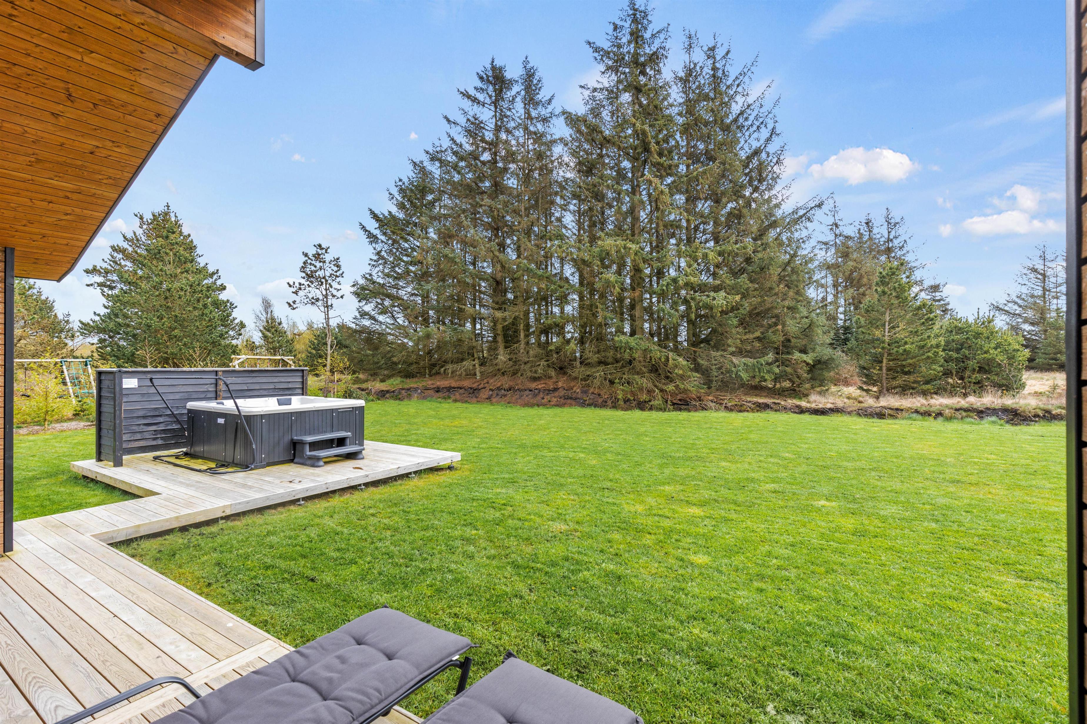 Ud over wellnessområdet er der også andre gode muligheder i dette sommerhus. Eksempelvis den delvist overdækkede terrasse, som er udstyret med havemøbler, liggestole og grill. Både børnene og hunden kan få brændt noget krudt af, og der er en gynge til børnene, som de helt sikkert vil få glæde af.