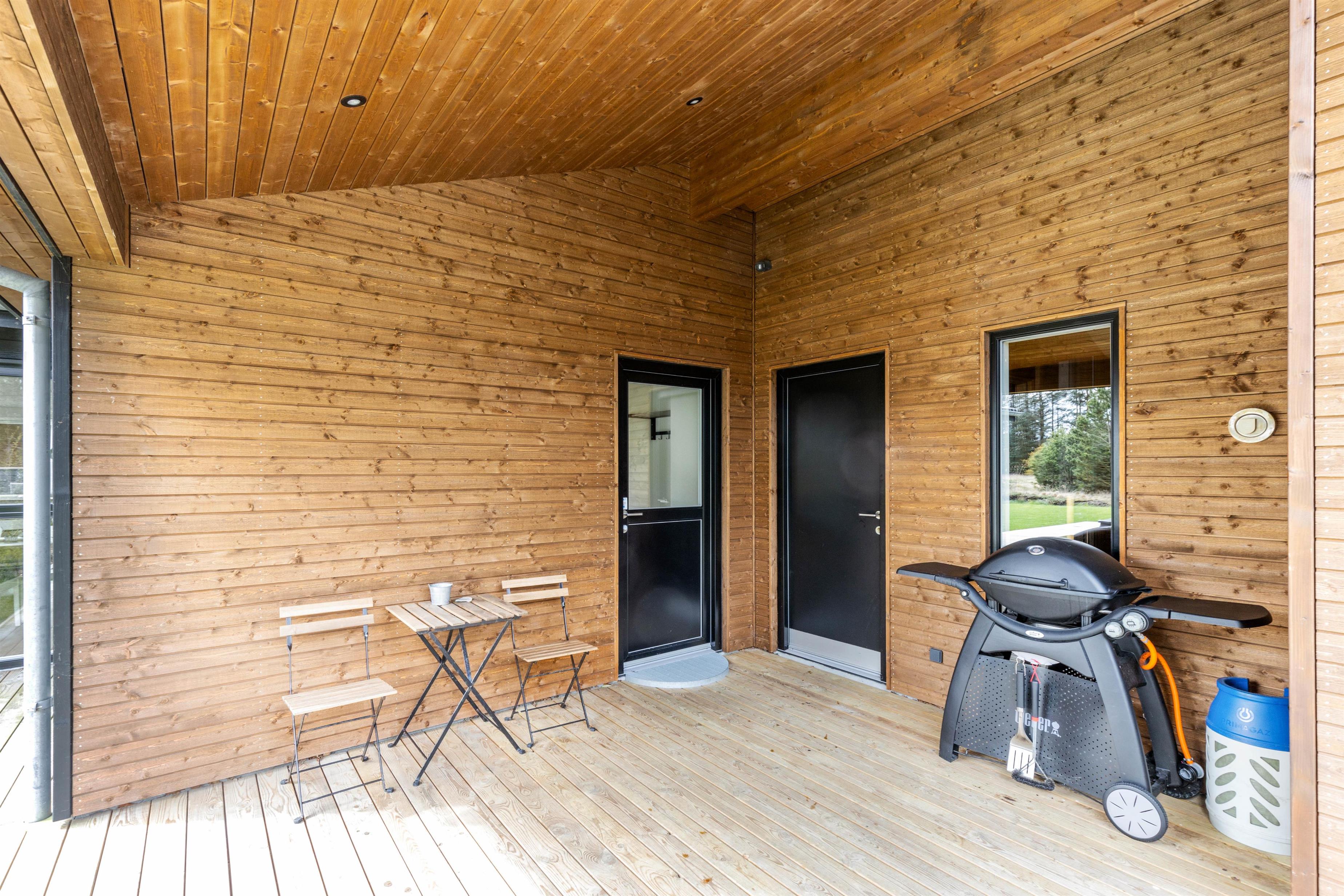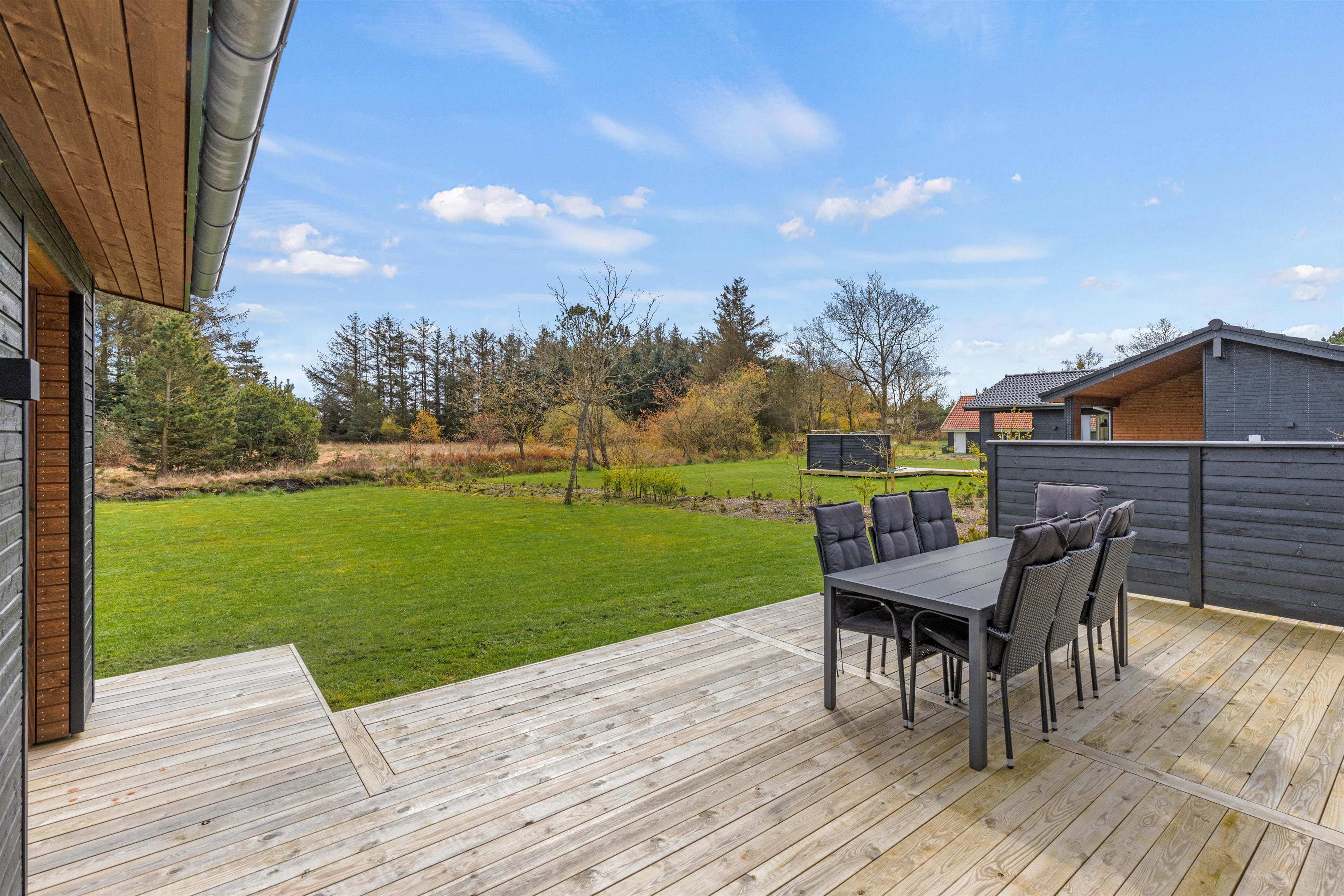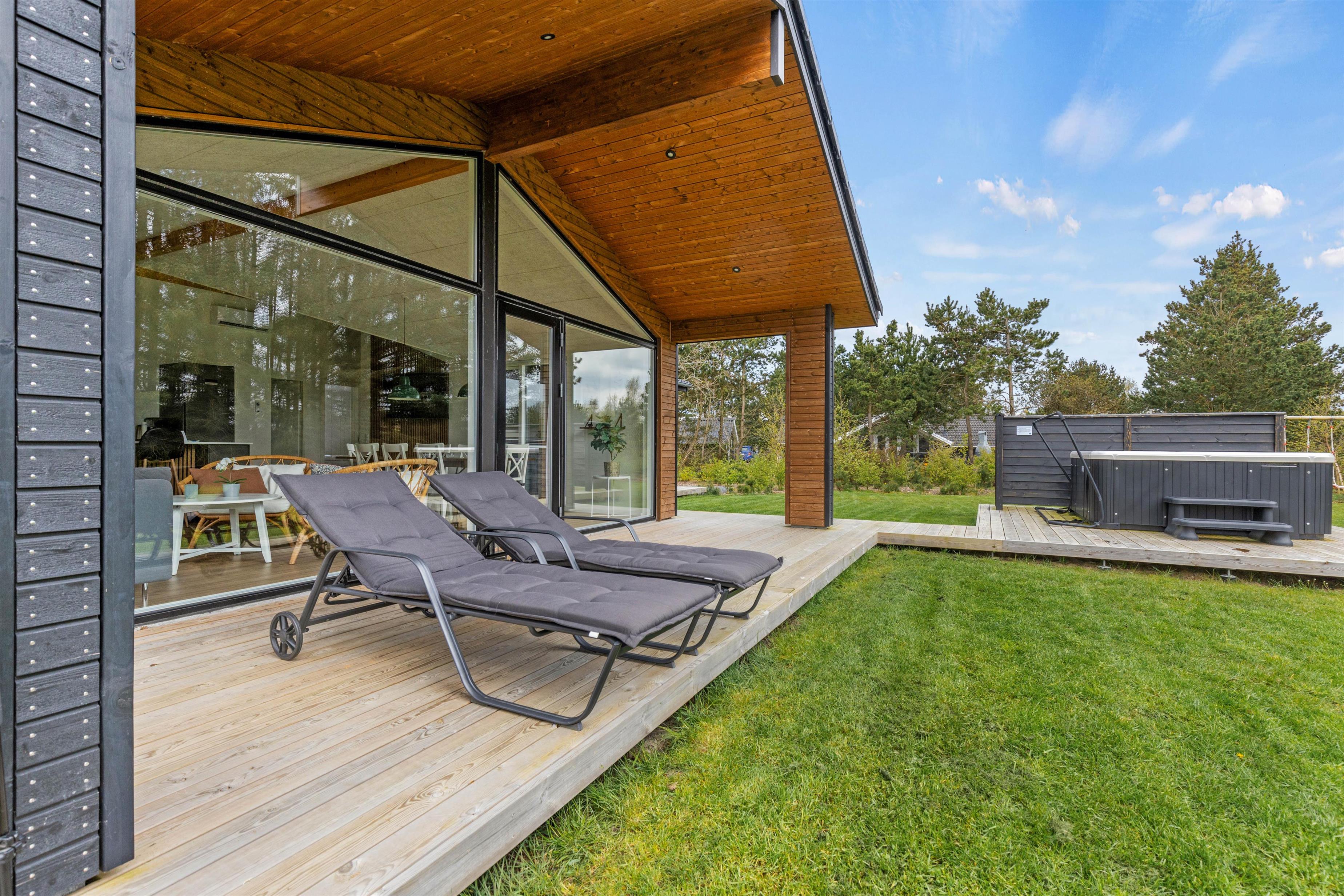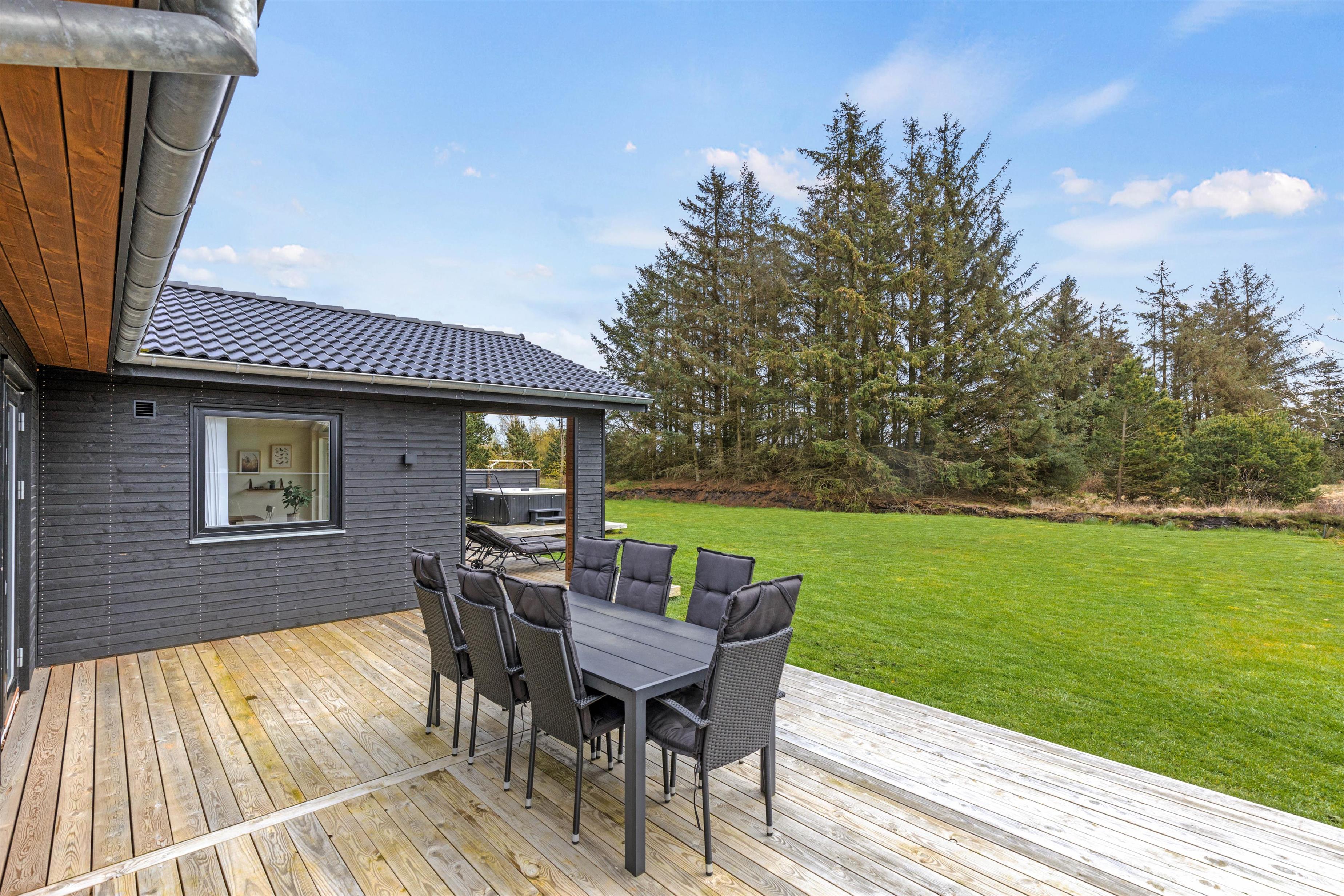 Ud over wellnessområdet er der også andre gode muligheder i dette sommerhus. Eksempelvis den delvist overdækkede terrasse, som er udstyret med havemøbler, liggestole og grill. Både børnene og hunden kan få brændt noget krudt af, og der er en gynge til børnene, som de helt sikkert vil få glæde af.