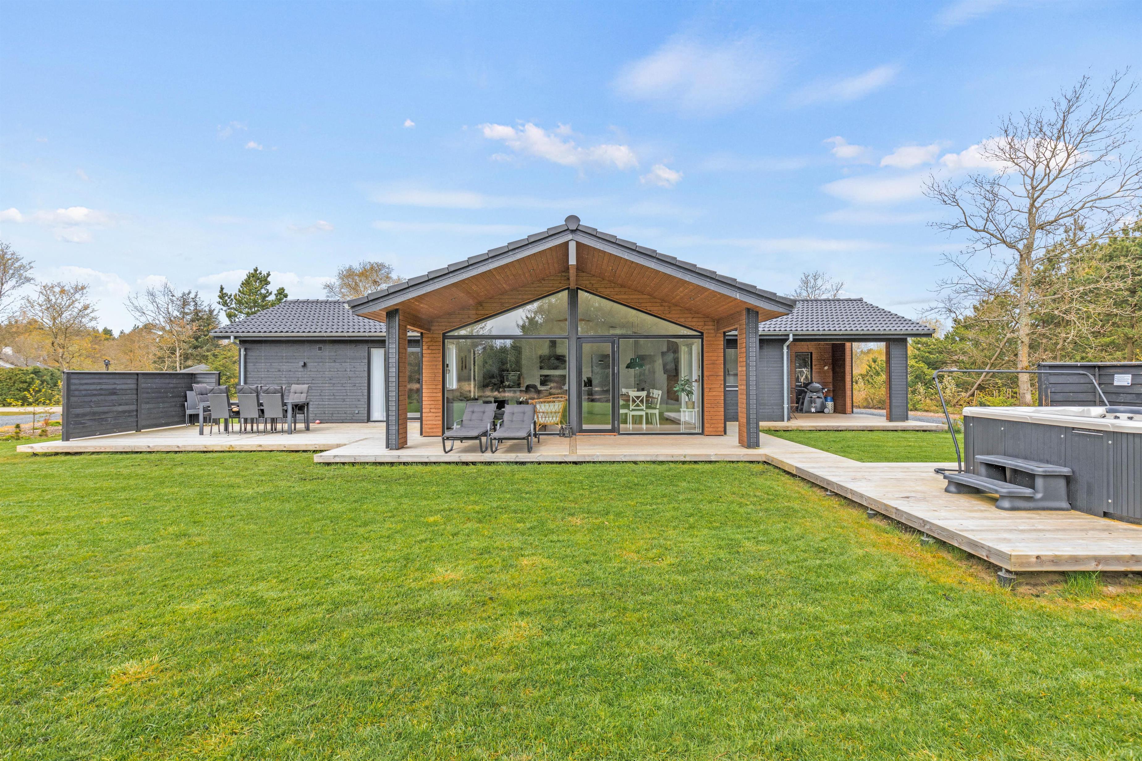 Dette luksuriøse sommerhus, som er bygget i 2021, er beliggende på Vestervang 22 i Houstrup. Feriehuset ligger lige i udkanten af ??det rolige sommerhusområde, med plads til op til 8 personer og 2 hund. Højdepunktet i dette sommerhus er bestemt ikke kun den rolige beliggenhed midt i naturen, men også de fantastiske wellness-faciliteter med egen udespa og udendørs sauna. Derudover har I en lademulighed til elbilen på adressen.