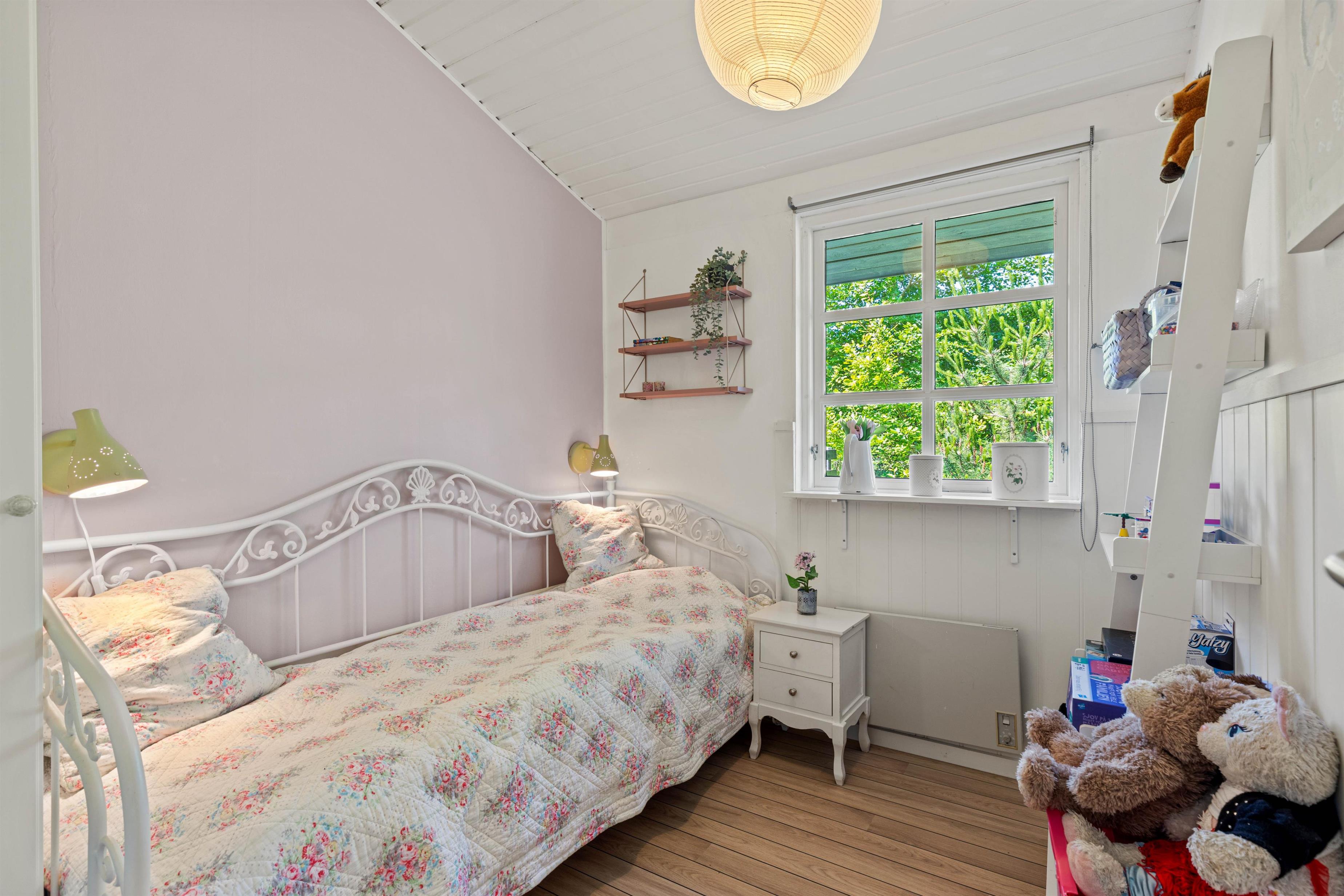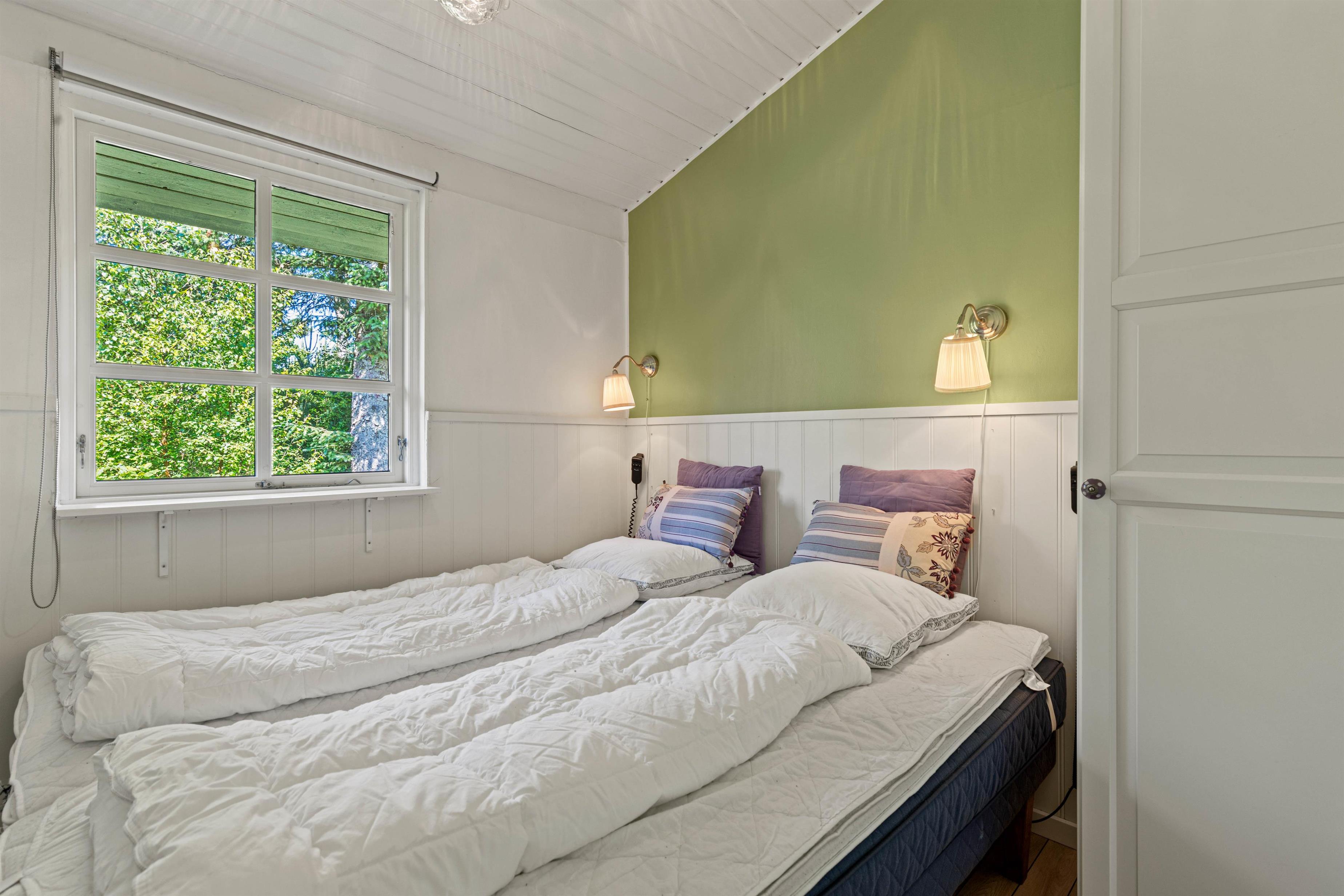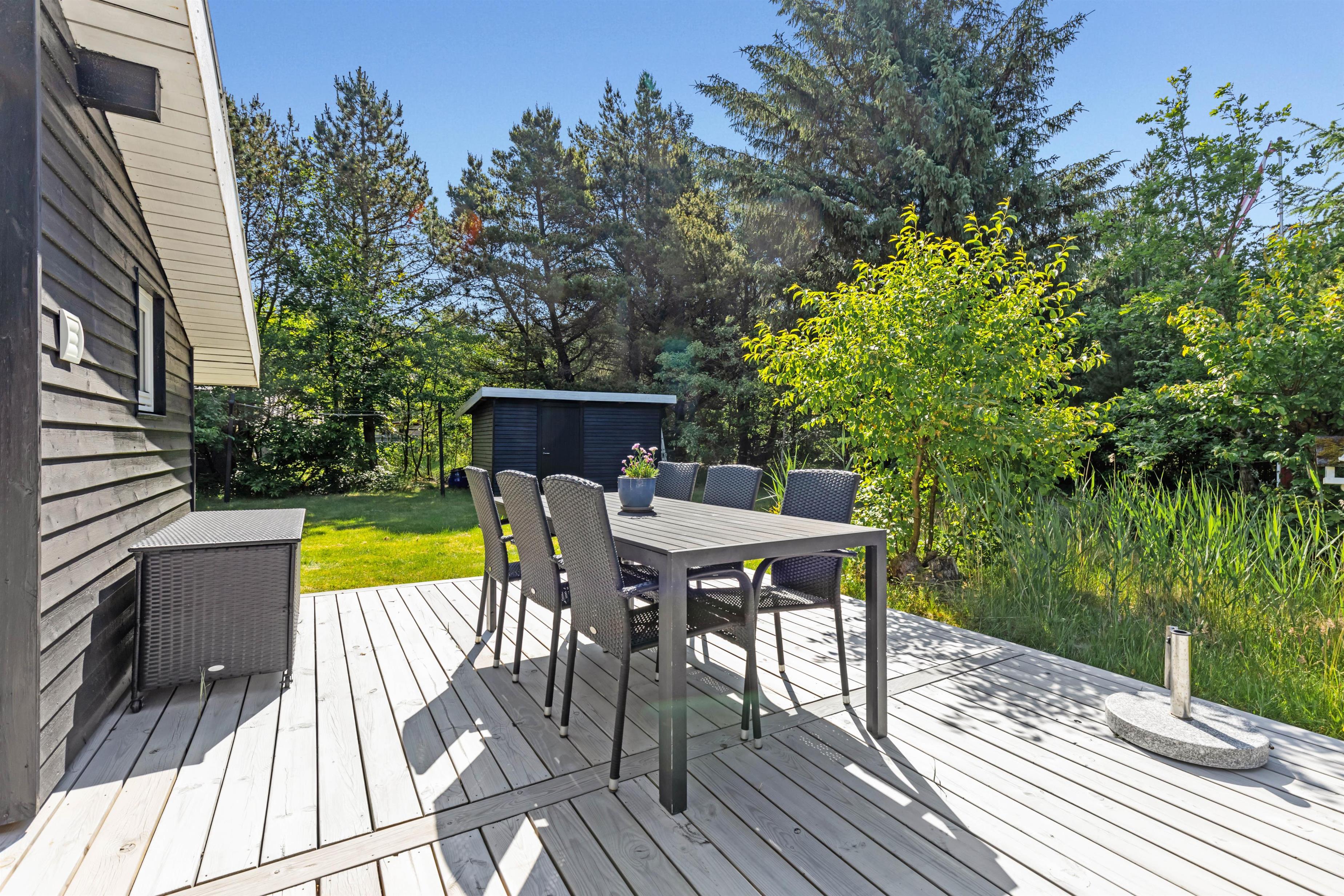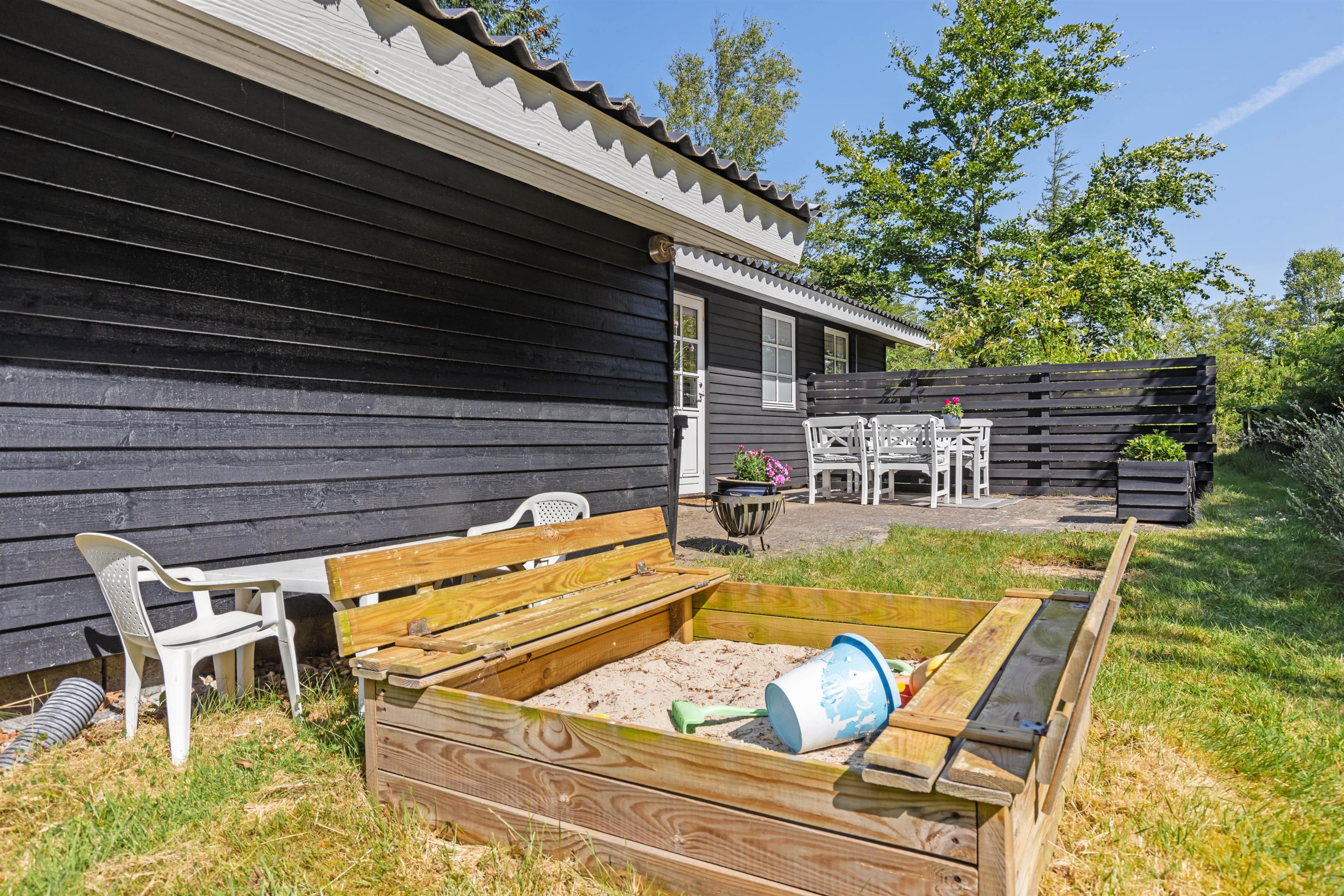 Sommerhuset er omgivet af skov, hvilket giver en fredelig og ugeneret atmosfære med rig mulighed for afslapning og hygge. Skoven er også det perfekte udflugtsmål for de små gæster, der kan udforske det spændende skovområde og dyrelivet.