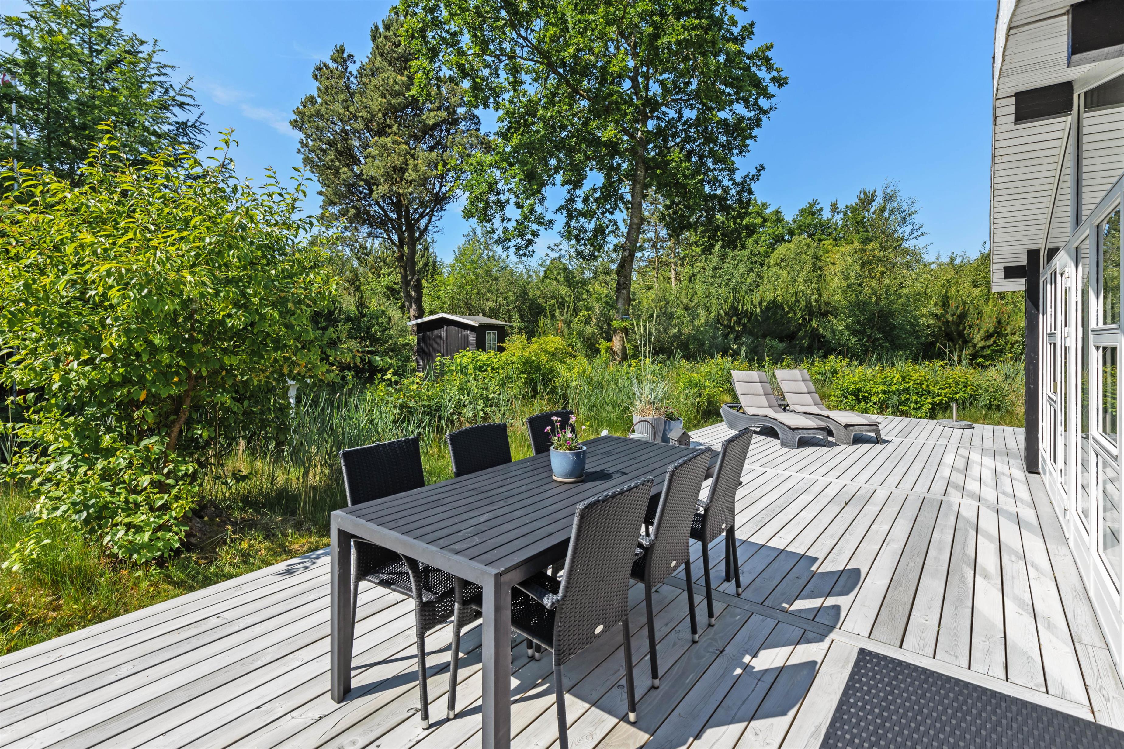 Foran huset finder I hele to terrasser, hvor der er god plads til at nyde den friskbryggede morgenkaffe eller holde en lækker grillaften sammen med hele familien. I kan også nyde de varme solskinsdage i fulde drag fra liggestolene.