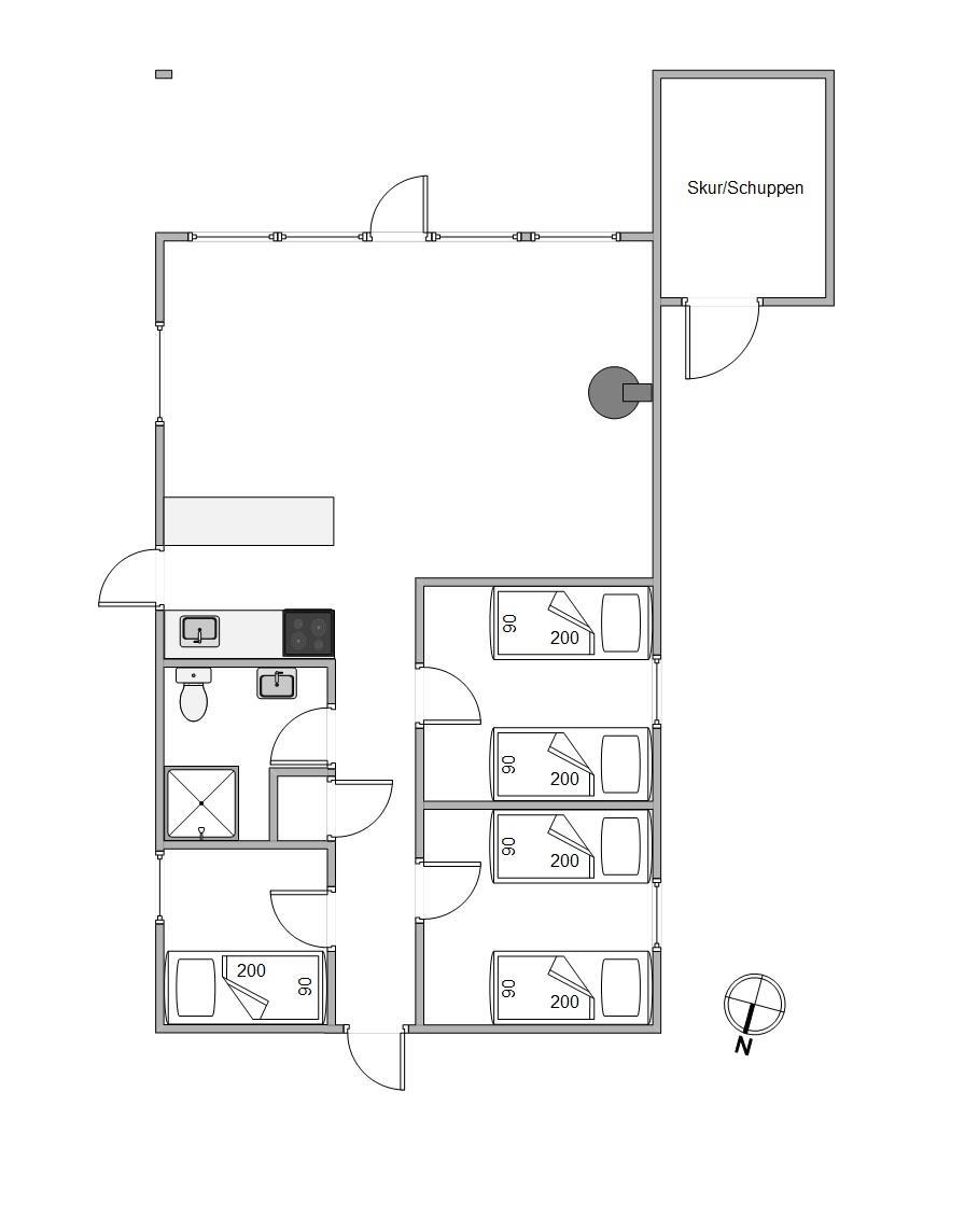 Sommerhuset på Jeppesvej 82 ligger tilbagetrukket fra vejen og omgivet af træer, så I kan nyde jeres ferie uforstyrret. I huset er der 3 soverum, hvoraf 2 er med hver 2 enkeltsenge og et med 1 enkeltseng samt et flot badeværelse med bruseniche. Det veludstyrede køkken med opvaskemaskine er integreret med spiseplads og stue, så I nemt kan kreere lækre måltider eller bage en kage sammen med ungerne, alt imens resten af familien kan læne sig tilbage i sofaen og se en god film foran brændeovnen. Nyd den sagte knitren i baggrunden, mens varmen breder sig.