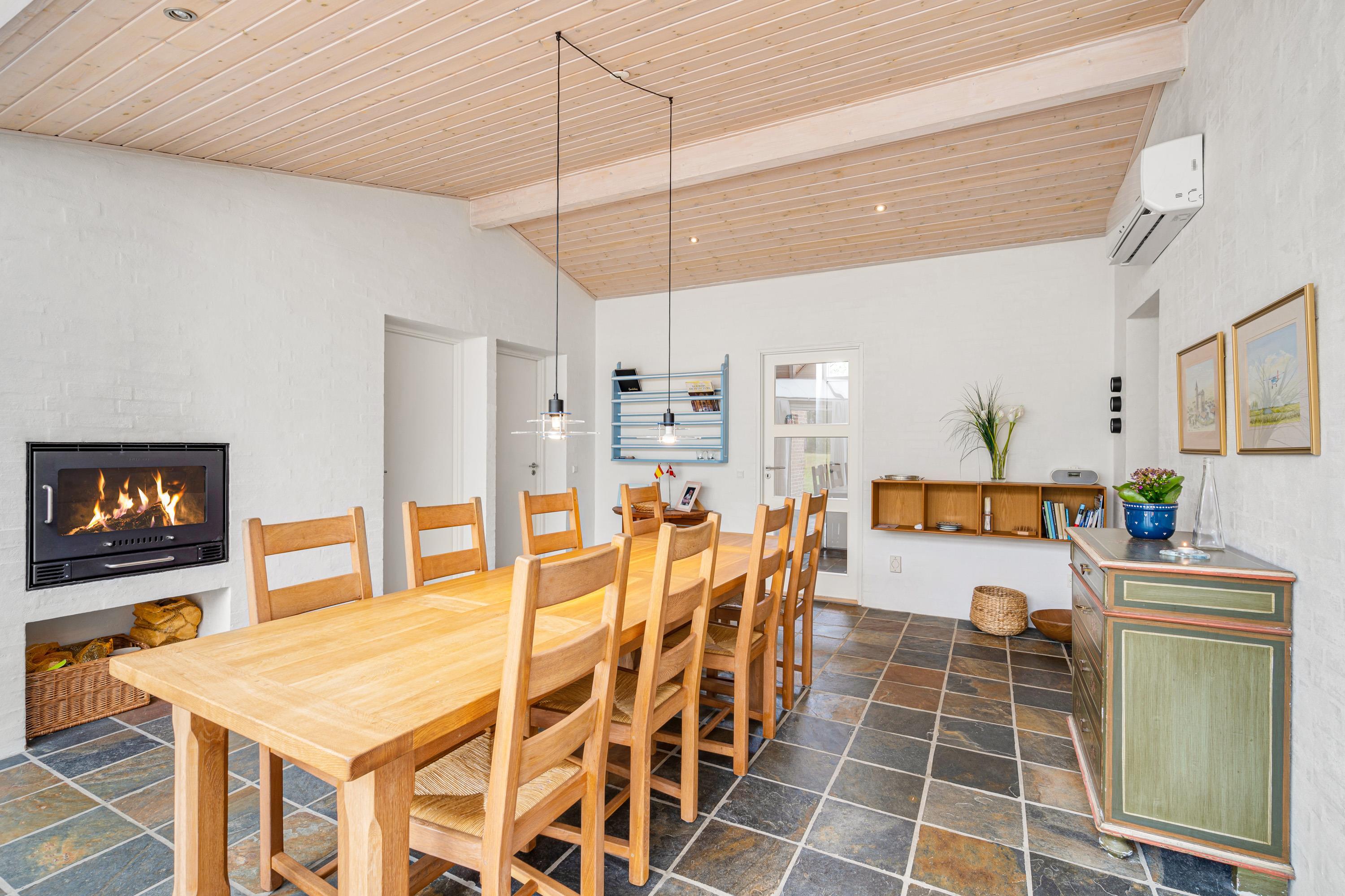 Hyggeligt indrettet med brændeovn og spabad