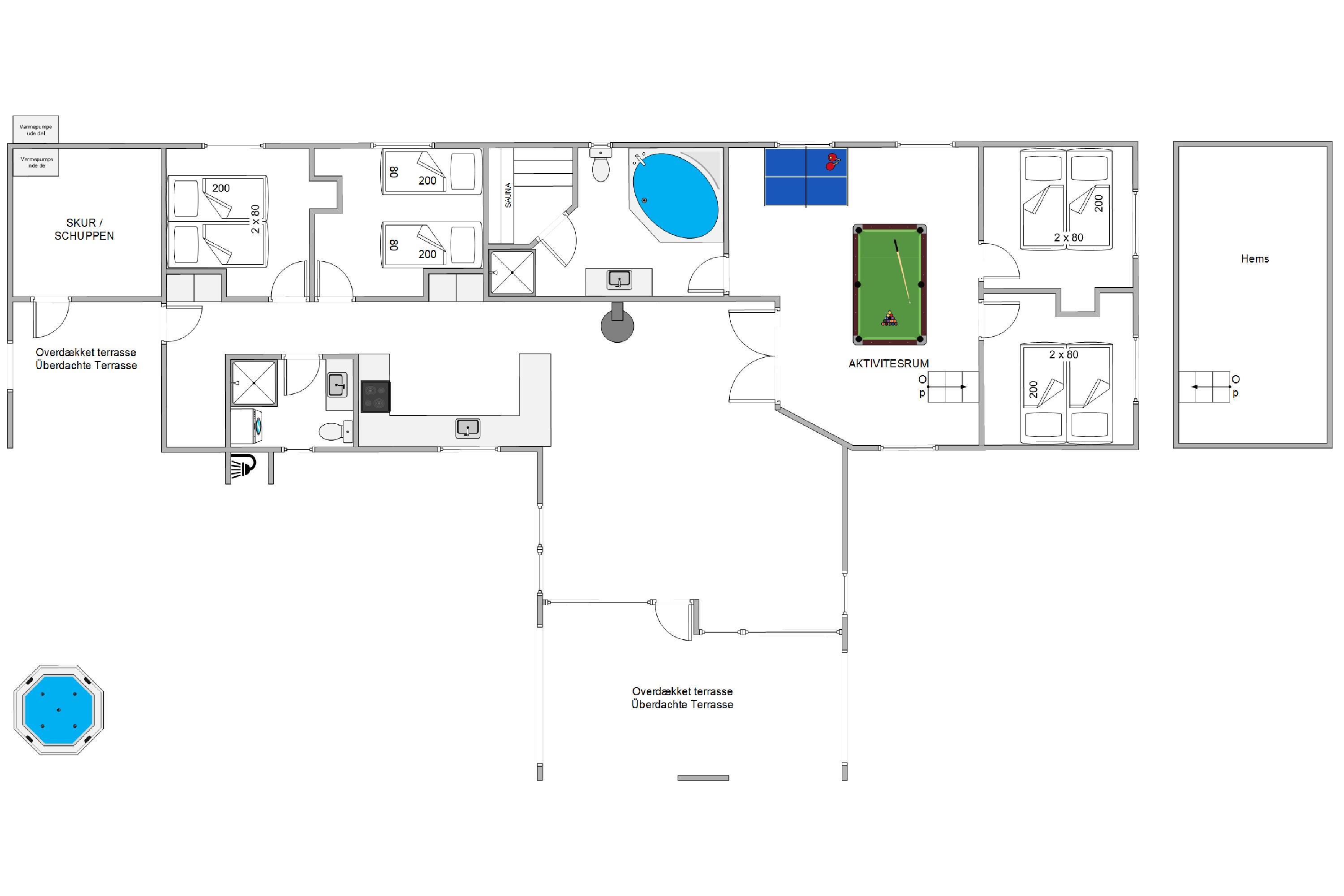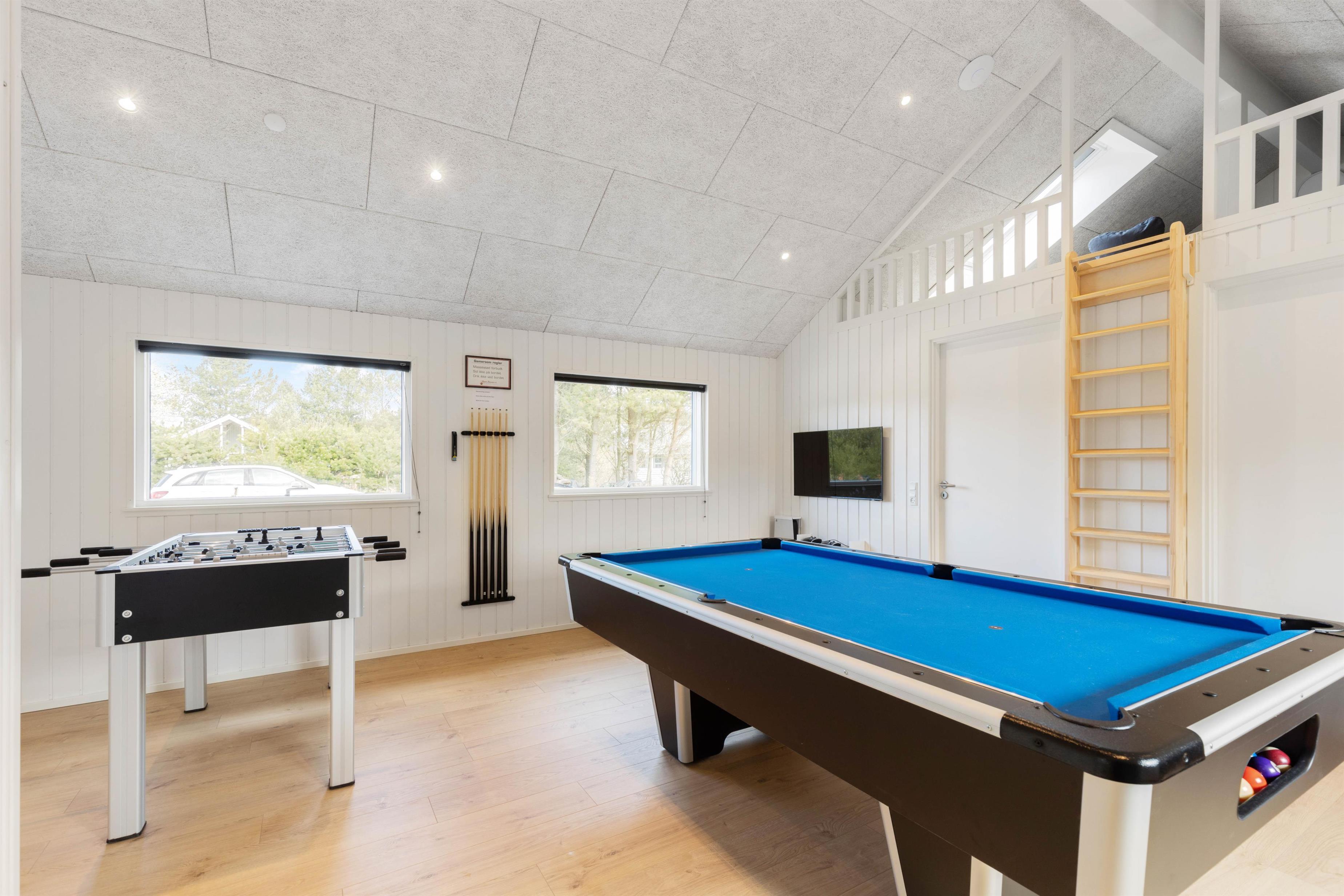 Sommerhusets aktivitetsrum vil uden tvivl danne rammen om mange underholdende stunder for hele familien. I aktivitetsrummet har I både mulighed for at spille billard, bordtennis og bordfodbold, så der er altså noget for enhver. Og hvorfor ikke afholde en hyggelig og sjov spilaften med lækre snacks og drikkevarer?