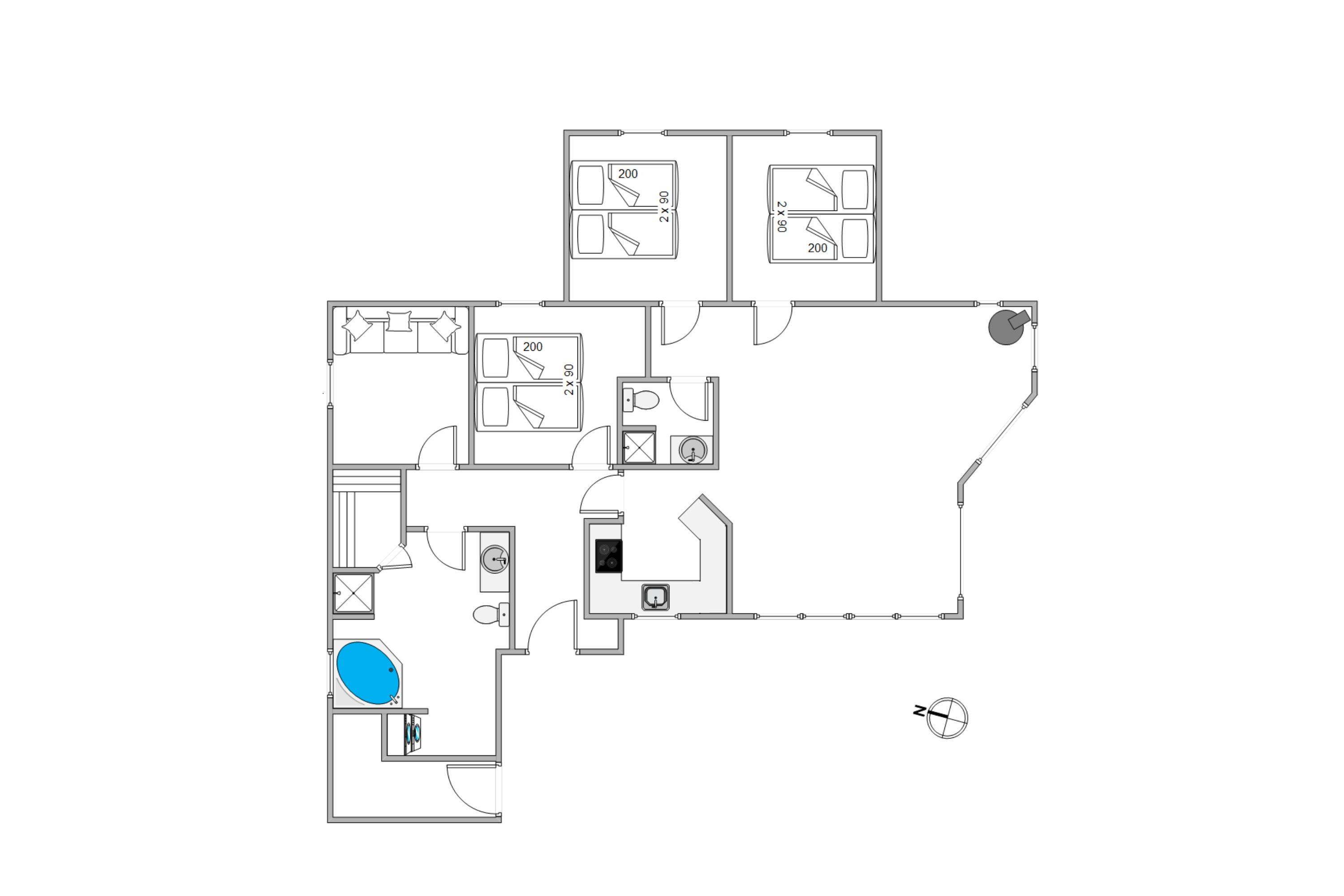 Huset er udstyret med to badeværelser, så I aldrig behøver stå i lange toiletkøer om morgenen. På det største finder I endda et spabad og en sauna, som helt sikkert vil blive et hit blandt alle feriegæsterne efter en lang dag med masser af frisk luft.