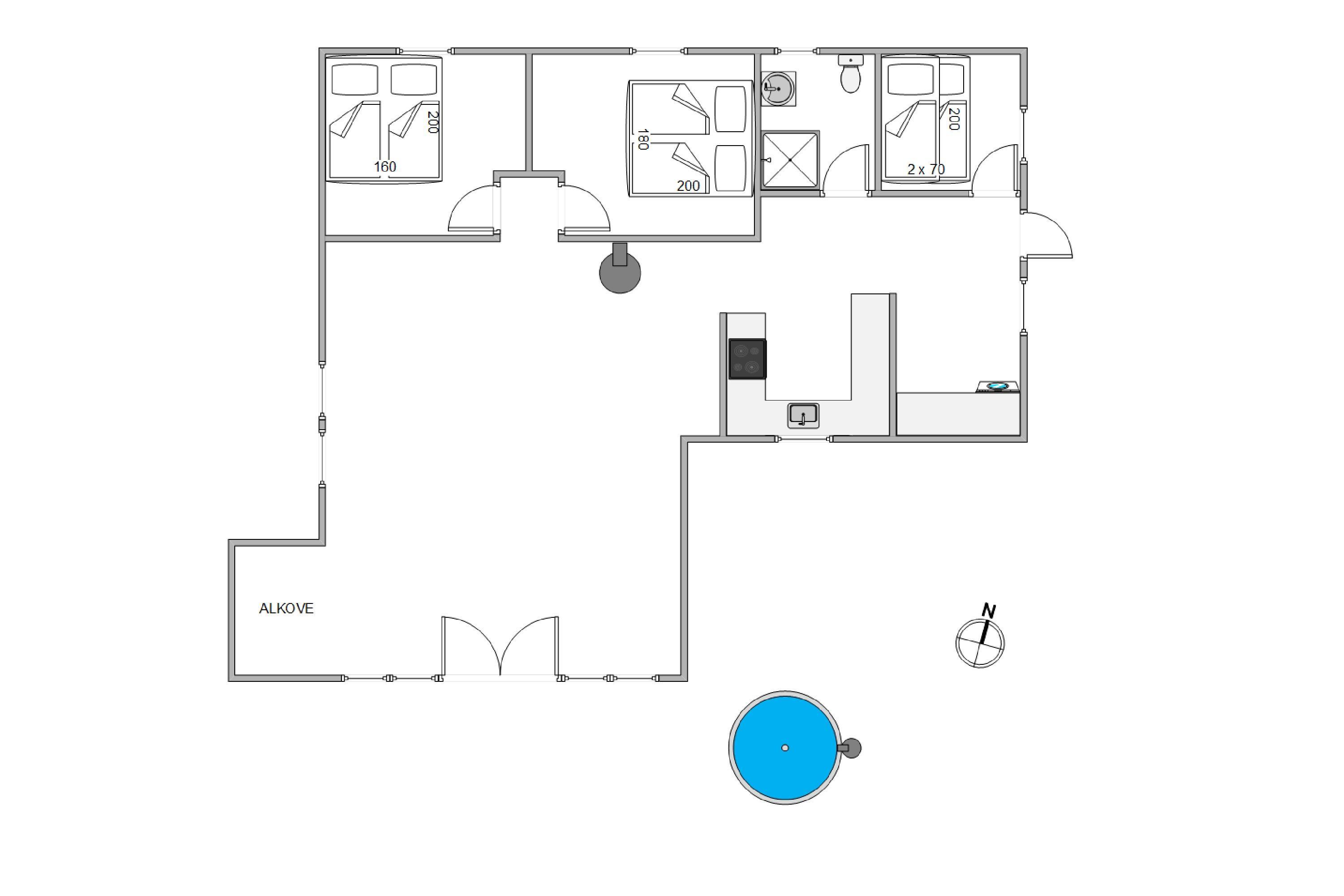 Det fine ikke-ryger hus til 6 personer mangler bestemt ikke charme, og især stuen med integreret køkken og spiseafdeling vil blive centrum for masser af hyggelige feriestunder - med lækre, hjemmelavede måltider, spændende brætspilsturneringer og sene aftener på sofaen foran den knitrende brændeovn.