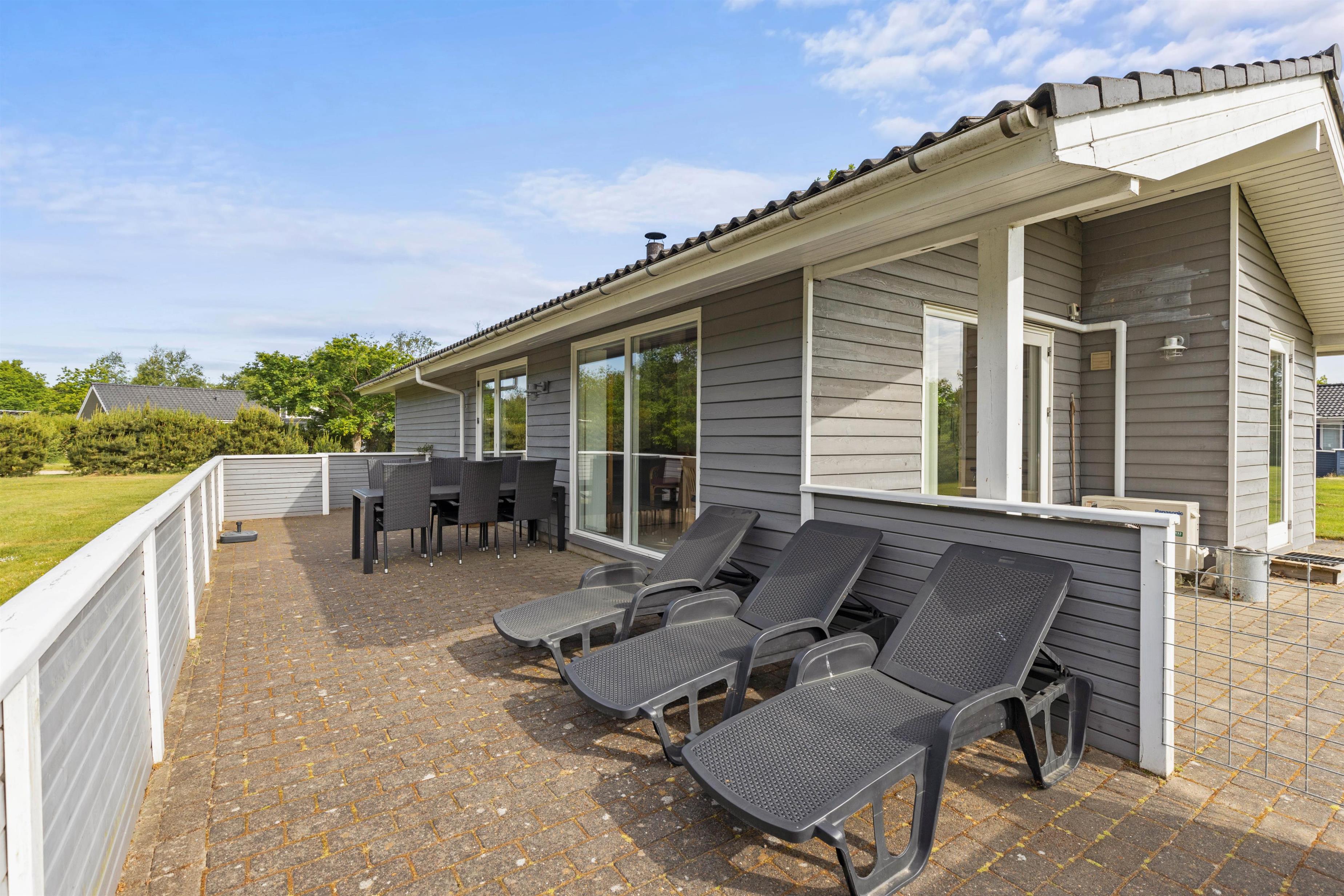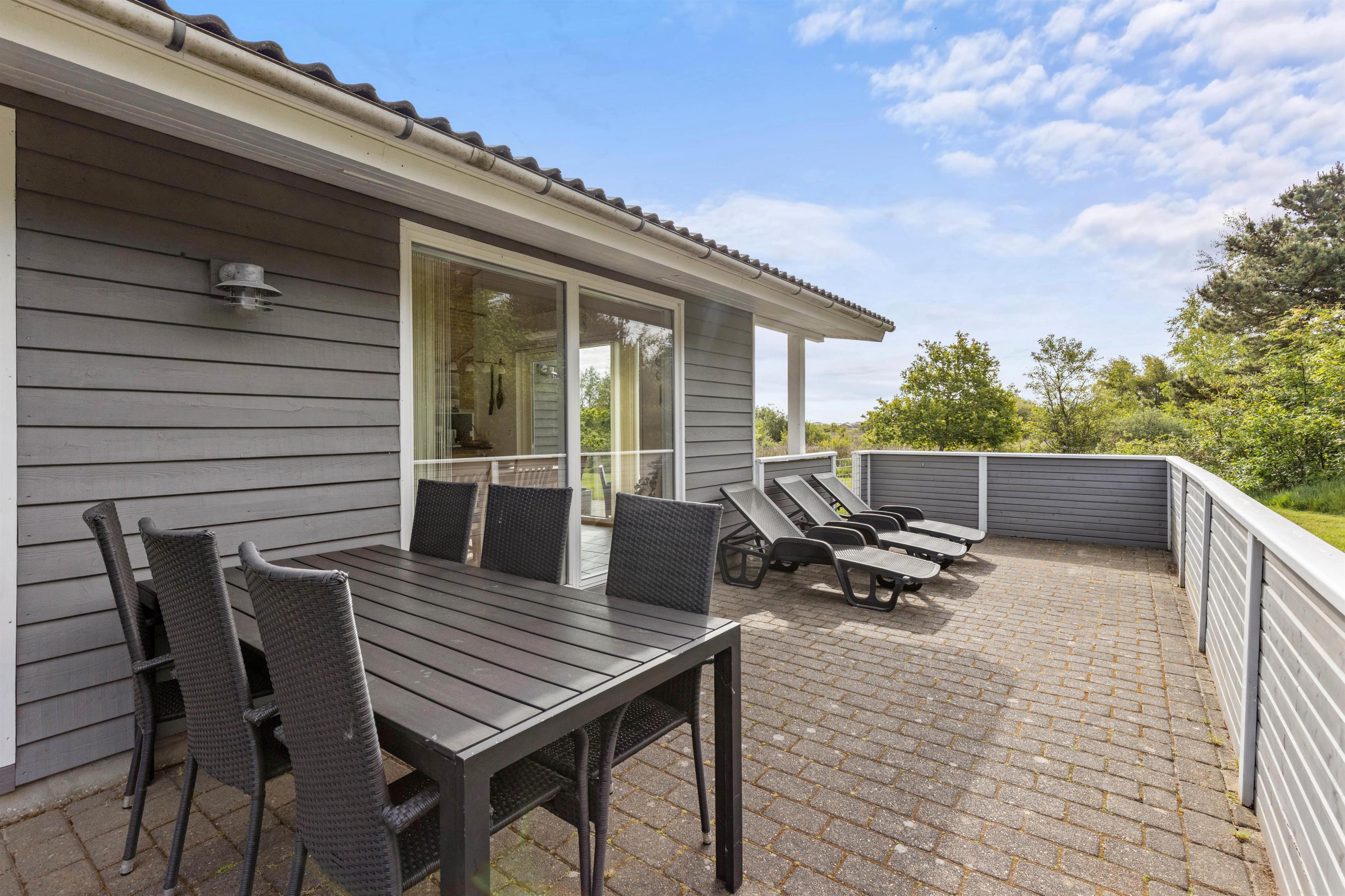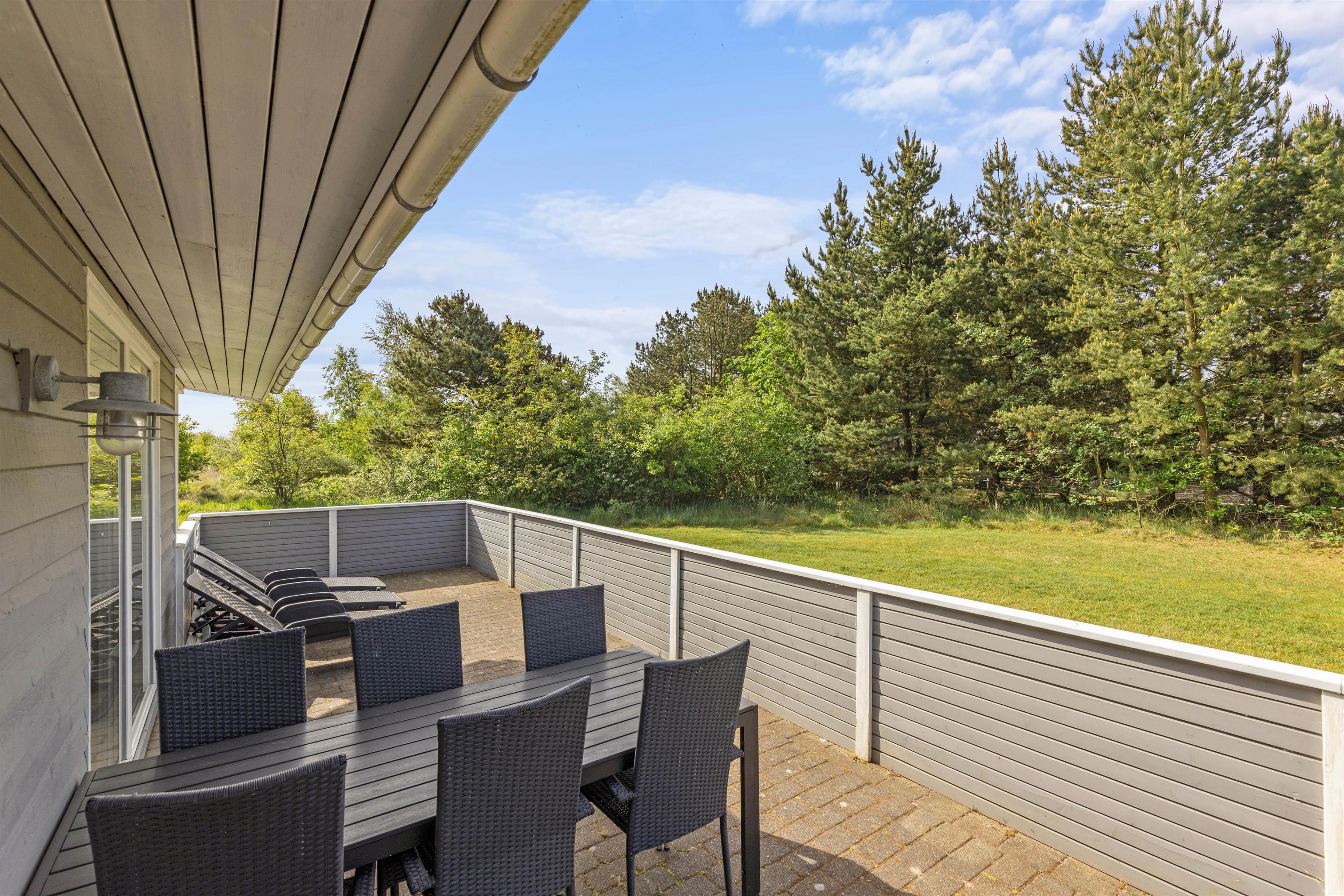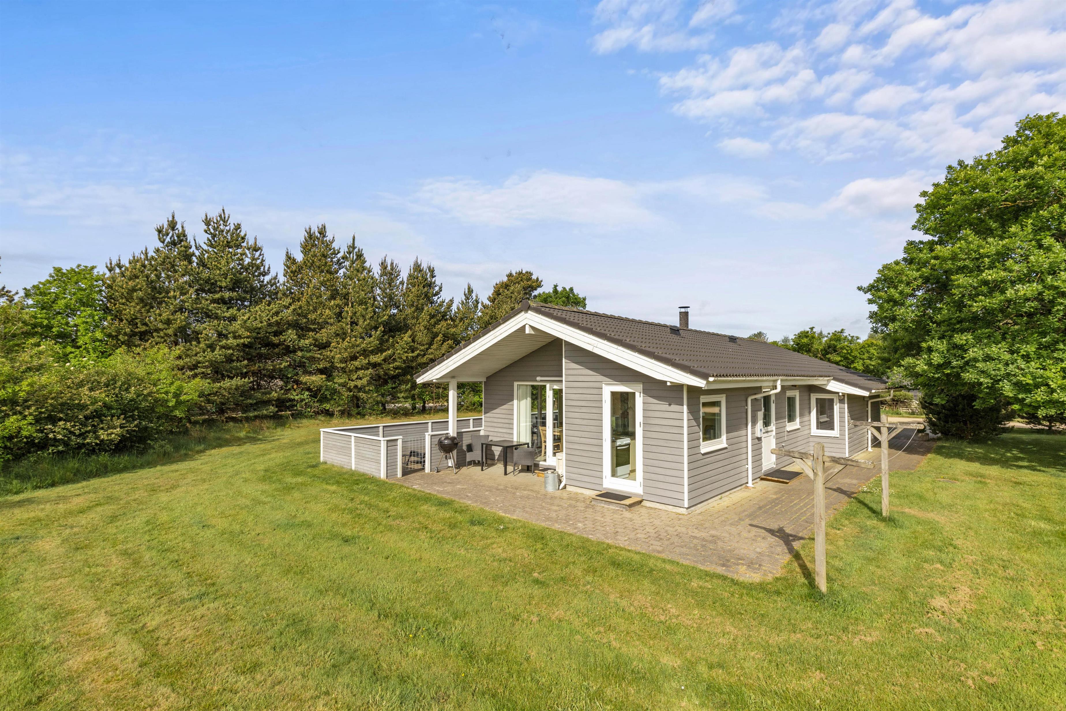Terrassen er lukket og således særlig praktisk for småbørnsforældrene eller hundeejeren. Der står havemøbler og liggestole til rådighed, så I kan nyde det gode vejr og fuglenes fløjten i sommermånederne. Fra grunden er der udsigt til den lyngklædte hede. Med husets grill kan I holde en hyggelig grillaften i aftensolens skær og planlægge morgendagens udflugter.