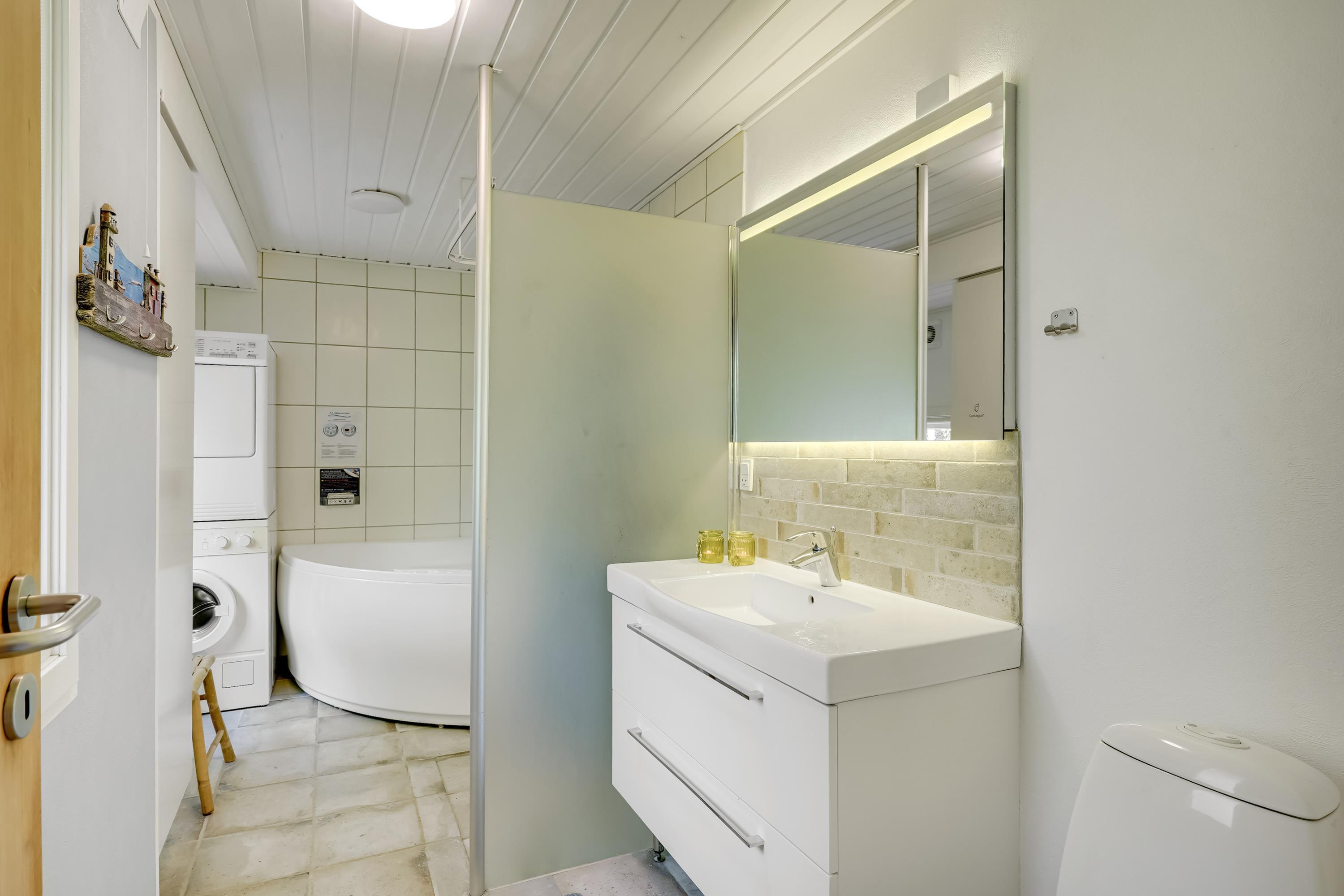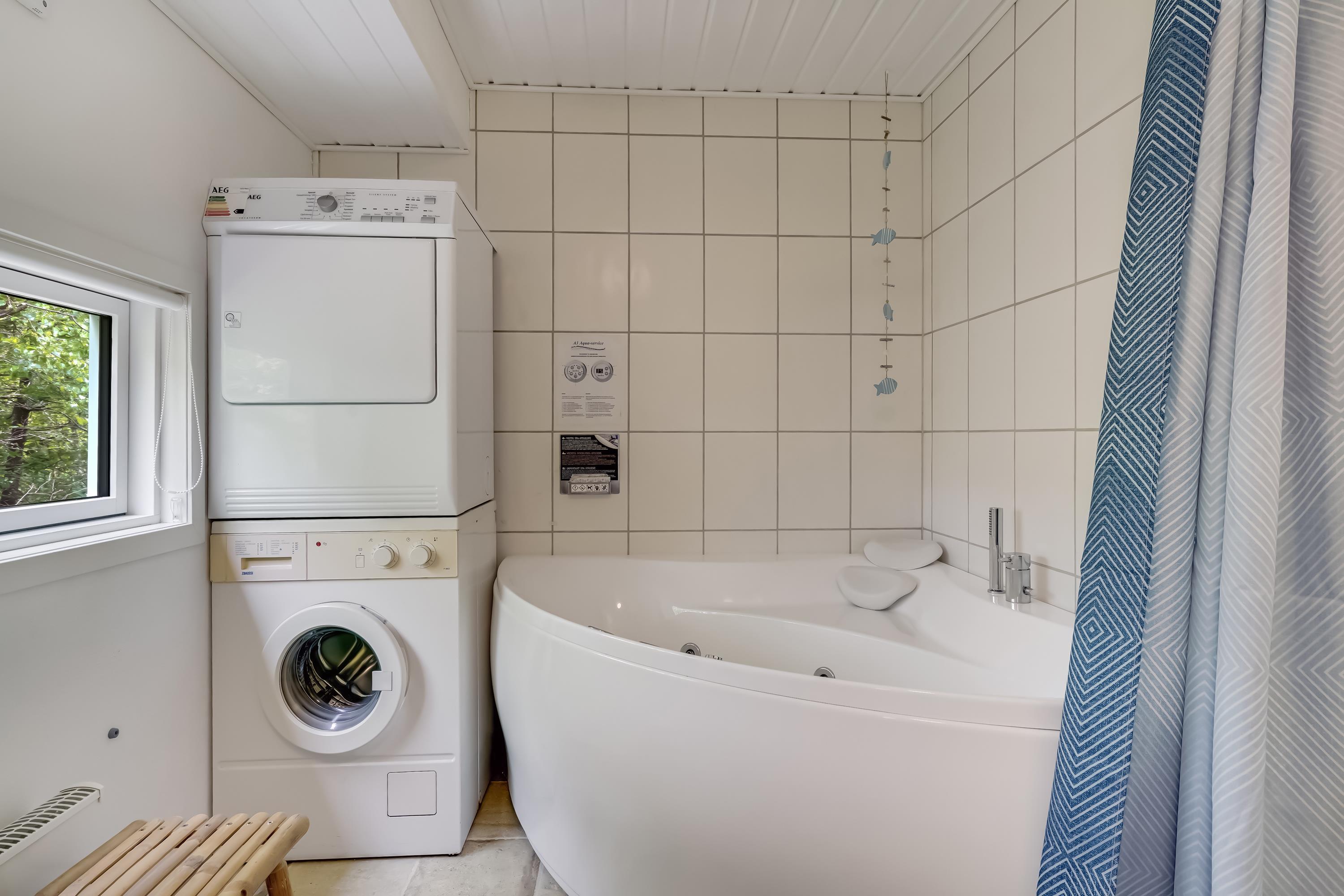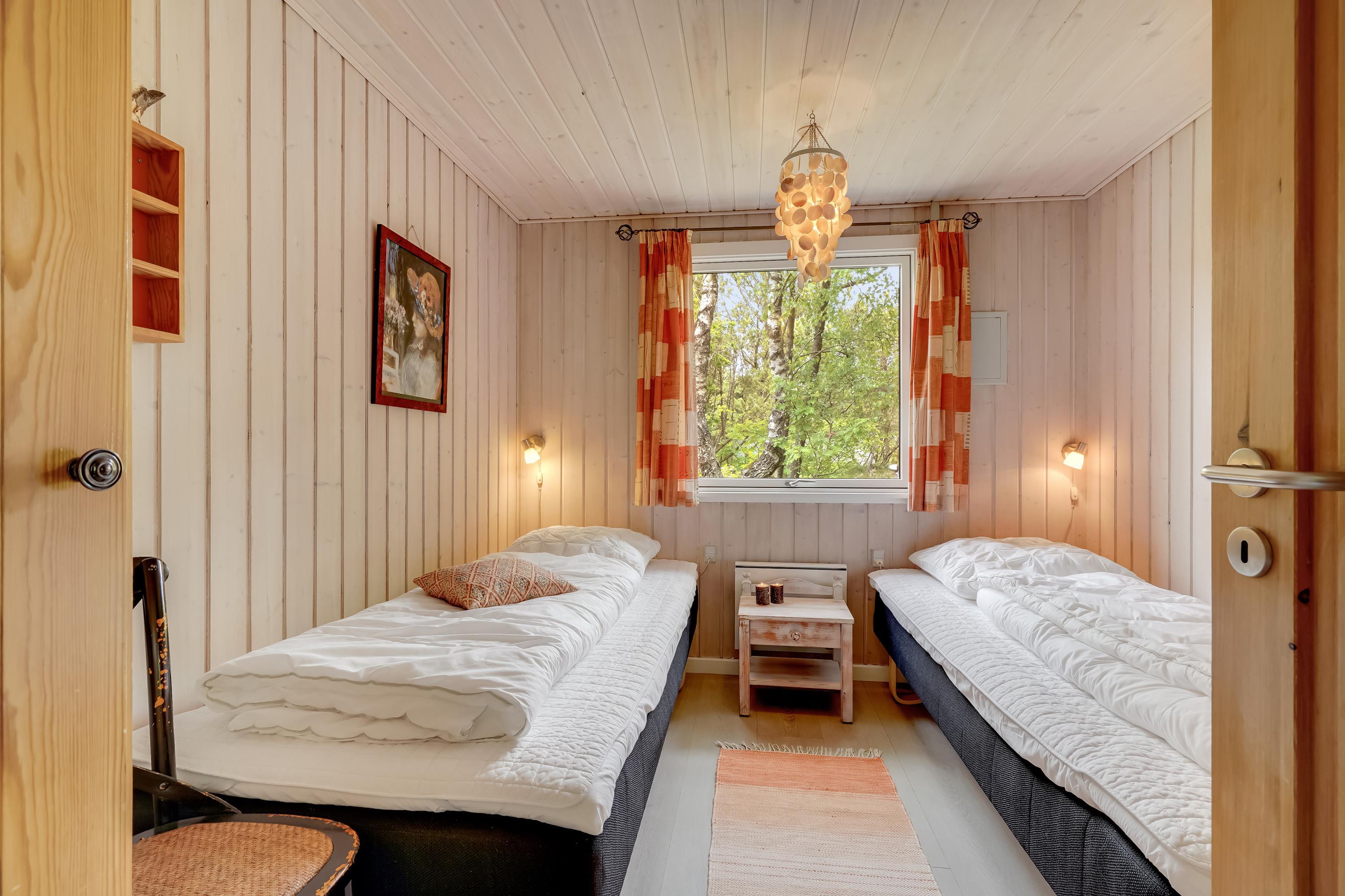 Dette charmerende feriehus kan komfortabelt rumme 6 personer fordelt på 3 hyggelige soverum – heriblandt et soveværelse med dobbeltseng (1.80) og to med enkeltsenge (90cm), hvoraf det ene kan laves om til dobbeltseng efter dine ønsker. Nyere badeværelse med spa giver perfekte rammer for afslapning og velvære efter en dag fyldt med eventyr i det fri. Faciliteterne vaskemaskine og tørretumbler kan du også gør brug af her.