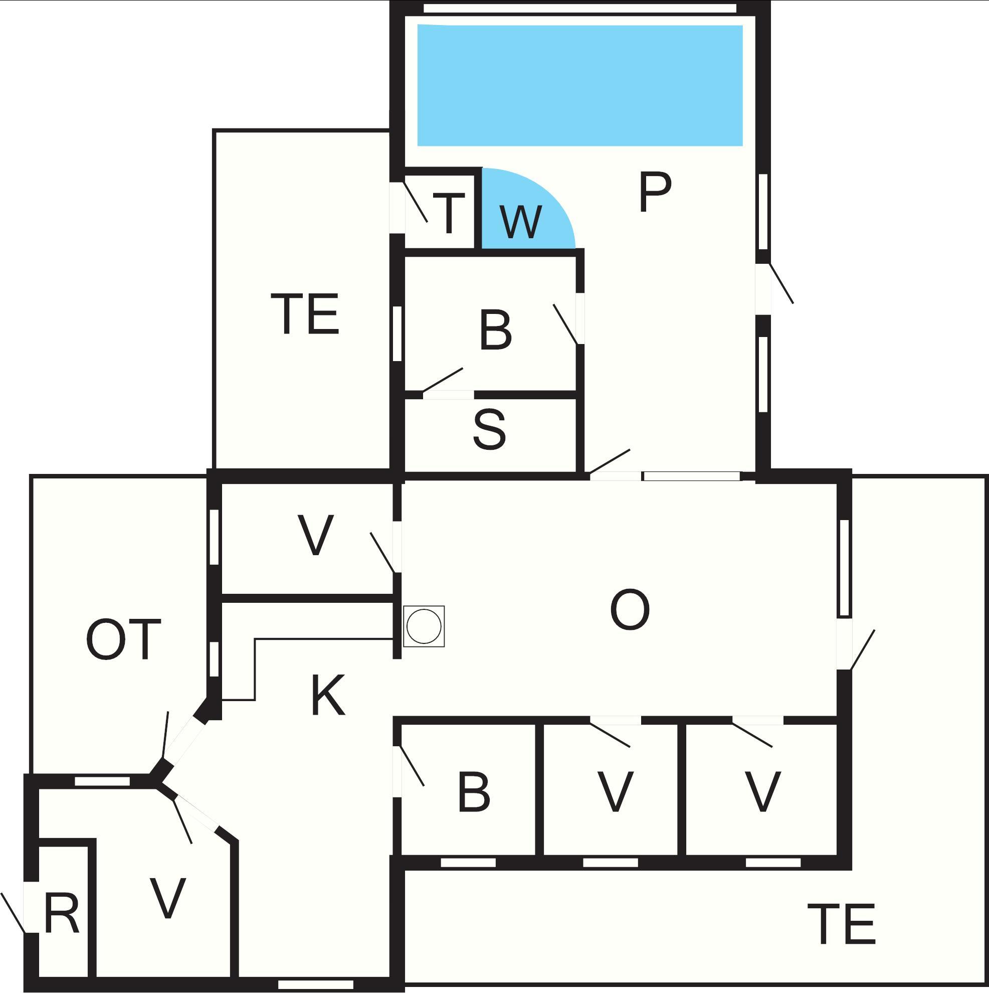 Huset er meget velindrettet og i den store poolafdeling er der spabad, sauna og en fin hyggekrog. Køkkenet ligger i forbindelse med stuen, hvor der er gulvvarme og udgang til terrassen.