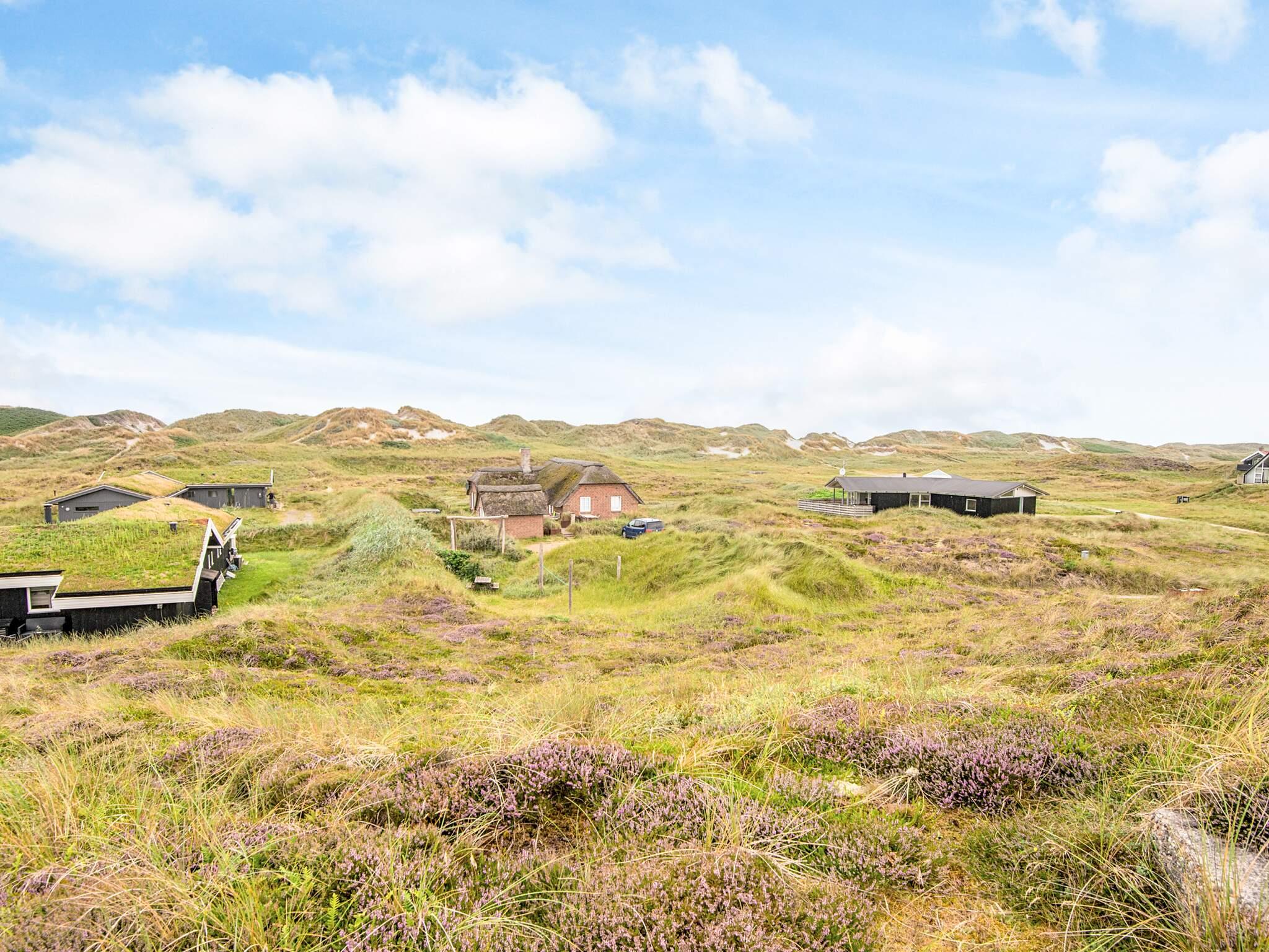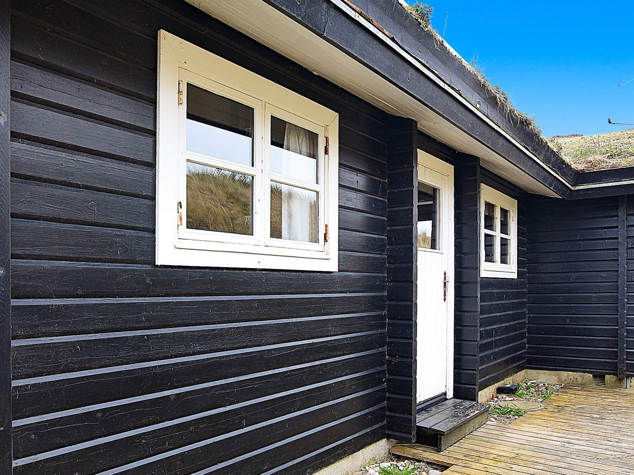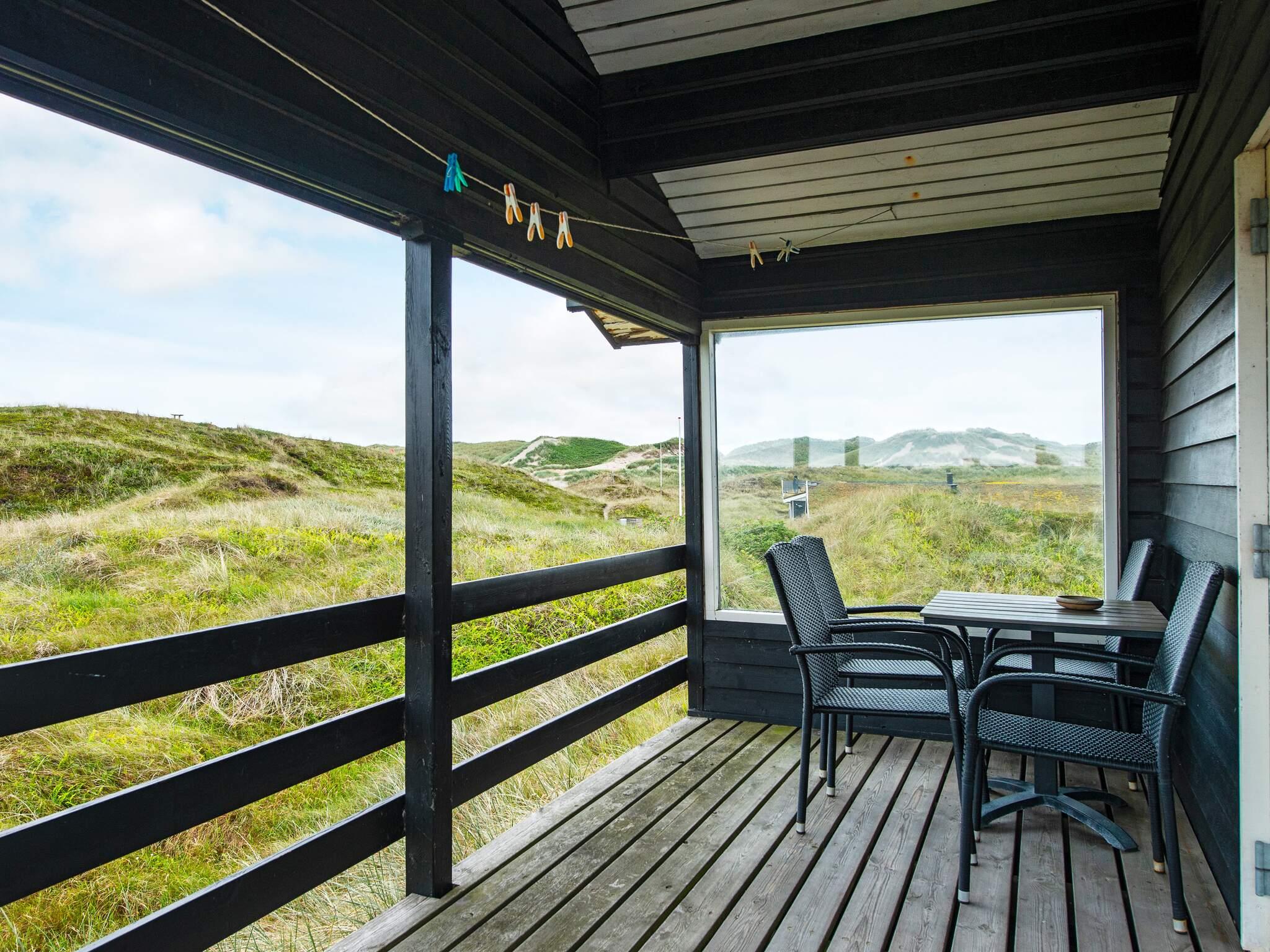 Tæt på Vesterhavet ligger dette højtbeliggende sommerhus på kuperet grund, hvorfra I kan nyde en fantastisk udsigt over området og klitterne. Udsigten kan nydes fra såvel husets vestvendte som sydvendte terrasse. Huset er bygget som bjælkehytte og har en rustik og enkel indretning med trævægge, lofter og kokostæpper. Åben stue/køkken, tre soverum, hvoraf et har dobbeltseng, og to har enkeltsenge med en køjeseng over. Køjesengen måler 60 i bredden. Dette er et ideelt hus for naturelskere, der ønsker at trave lange ture i en betagende flot natur, i klitterne og ved stranden og bagefter slappe af foran brændeovnens knitrende flammer. Huset er ikke egnet til handicappede eller gangbesværede.